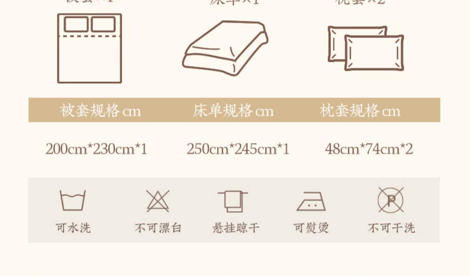| Ширина кровати: | Пододеяльник, простыня, наволочка, 200×230см, 250×245см, 48×74см |