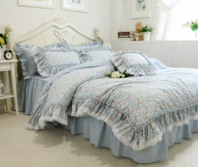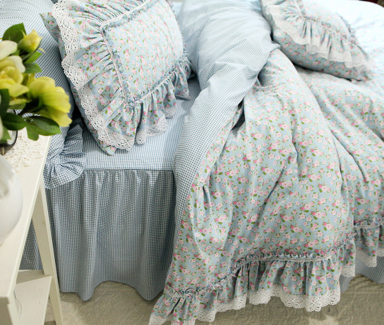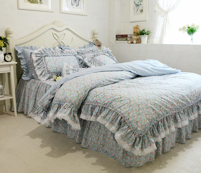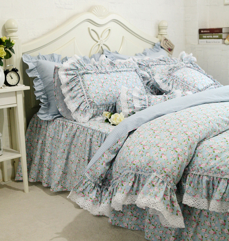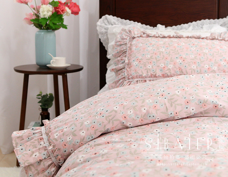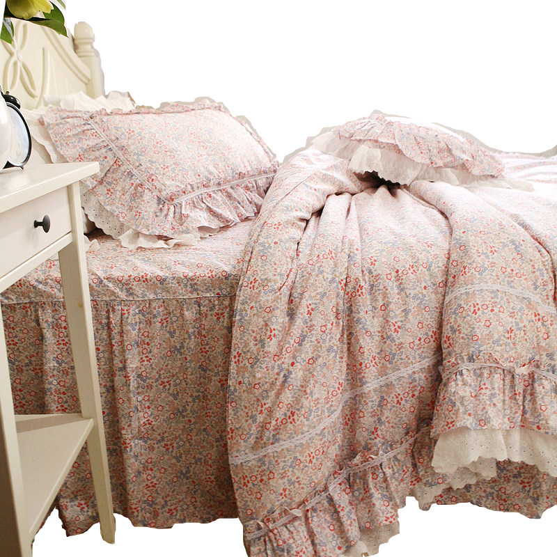 Брендовый свежий хлопковый пододеяльник, покрывало, комплект, в корейском стиле, цветочный принт, кружевное платье, 4 предмета