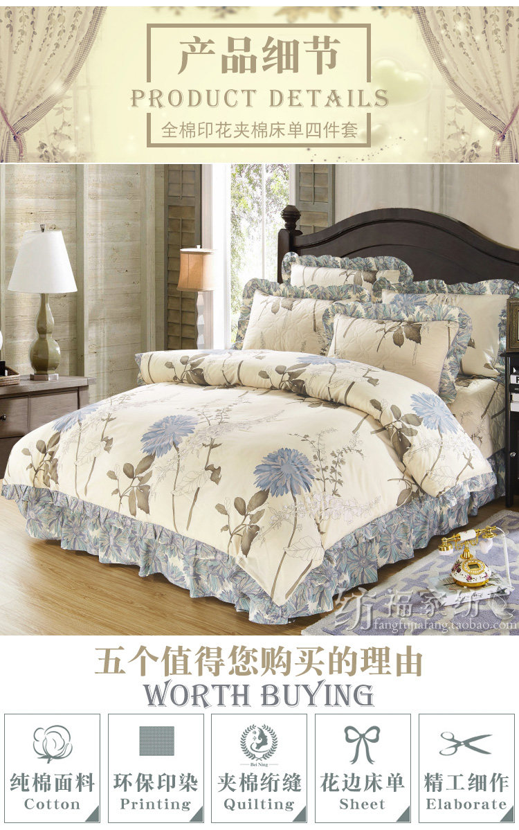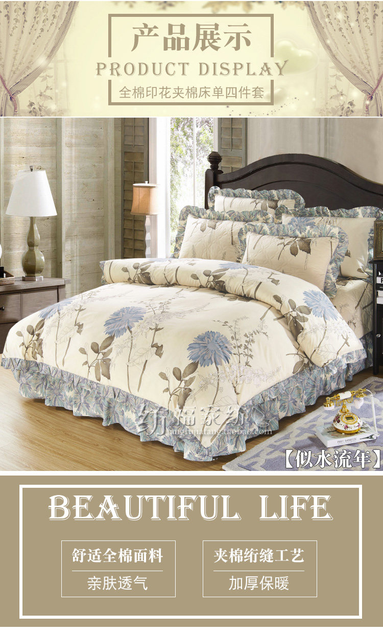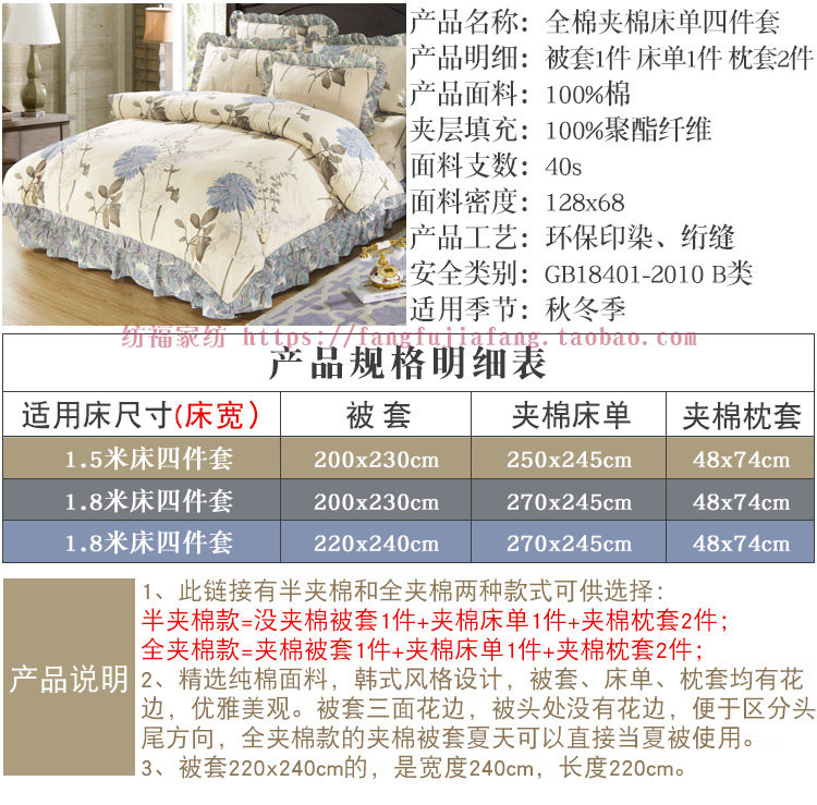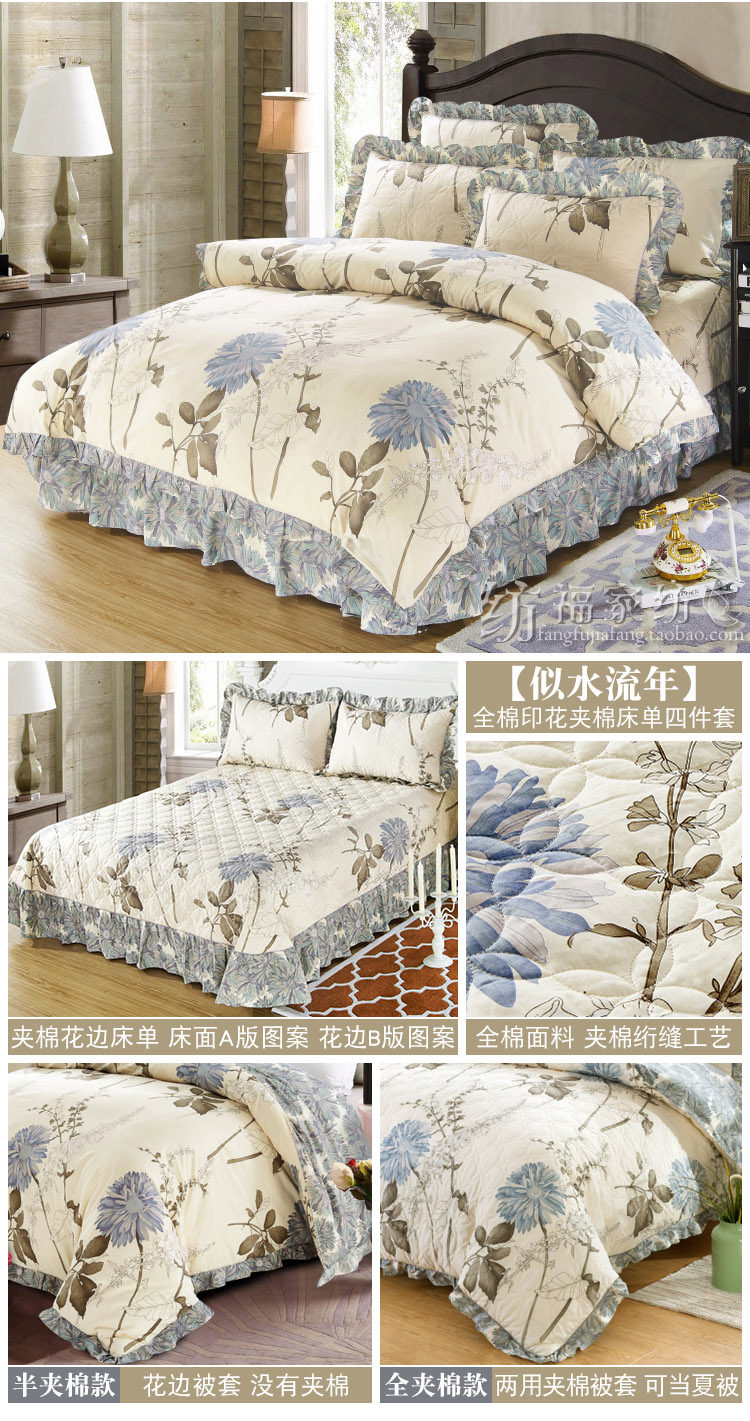 Стеганая простыня, хлопковый комплект, 4 предмета, увеличенная толщина, 4 шт, 1.8м, постельные принадлежности