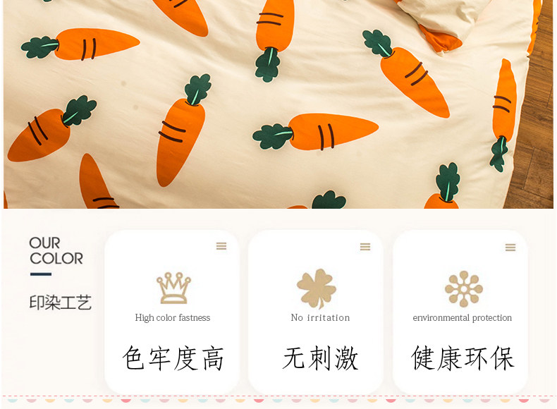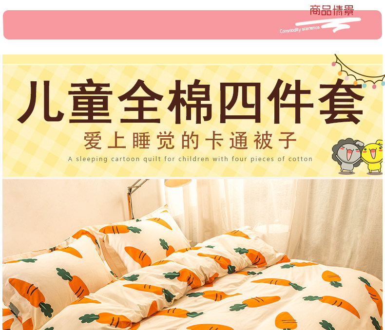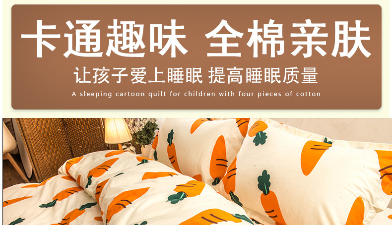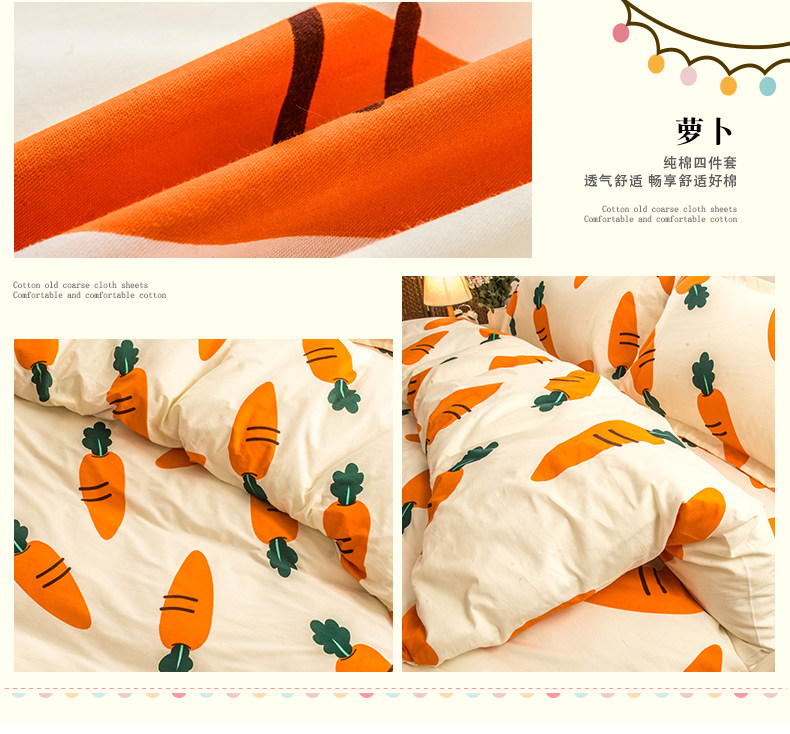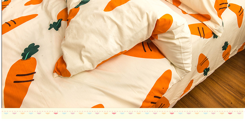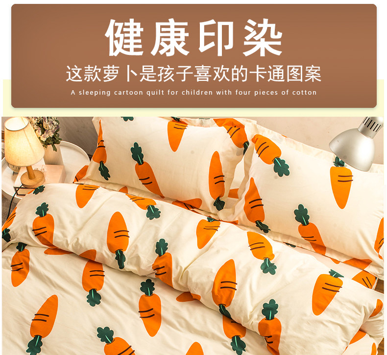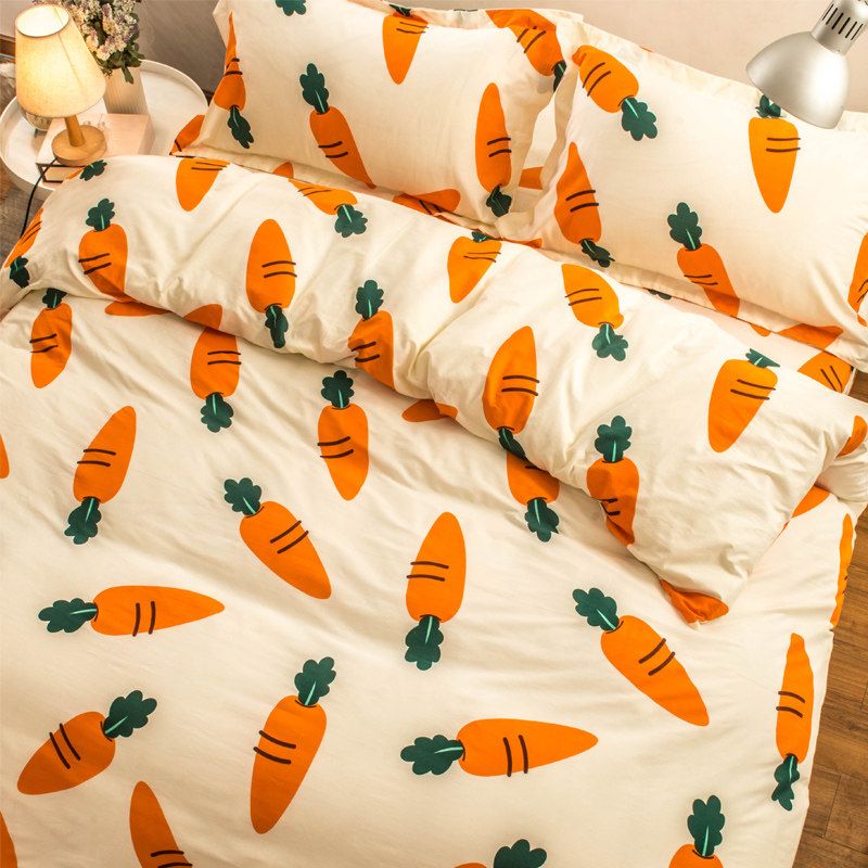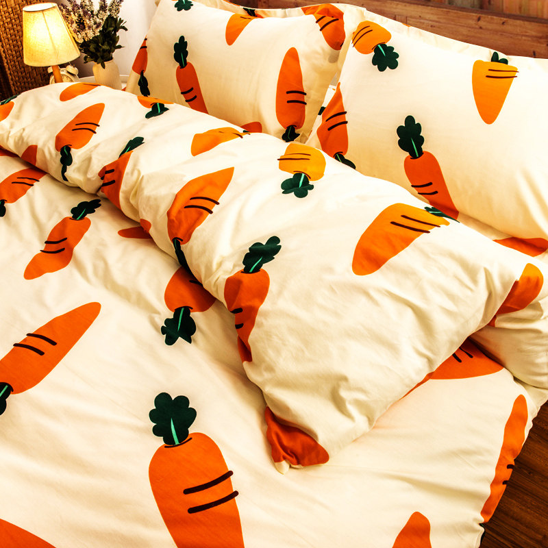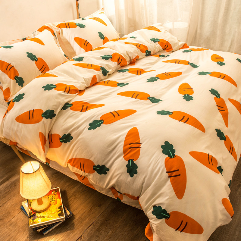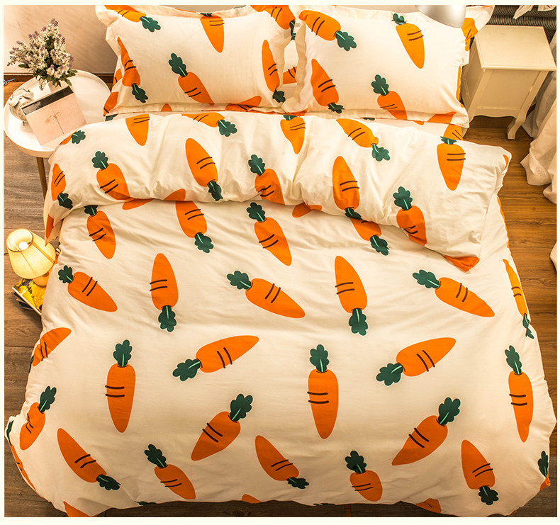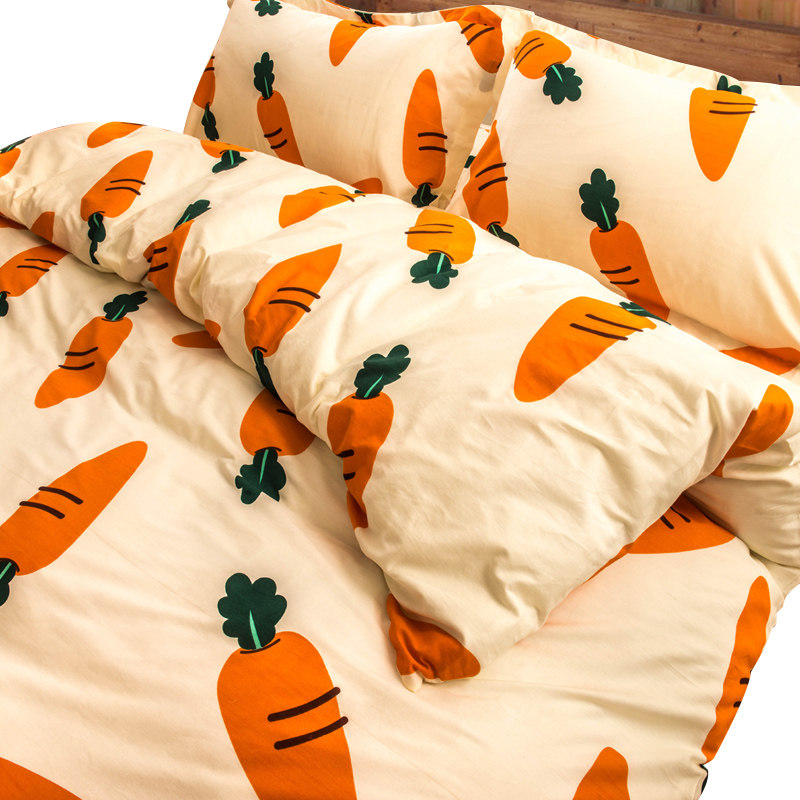 Хлопковый комплект, мультяшный морковный пододеяльник, свежая простыня, покрывало, 4 предмета, 3 предмета