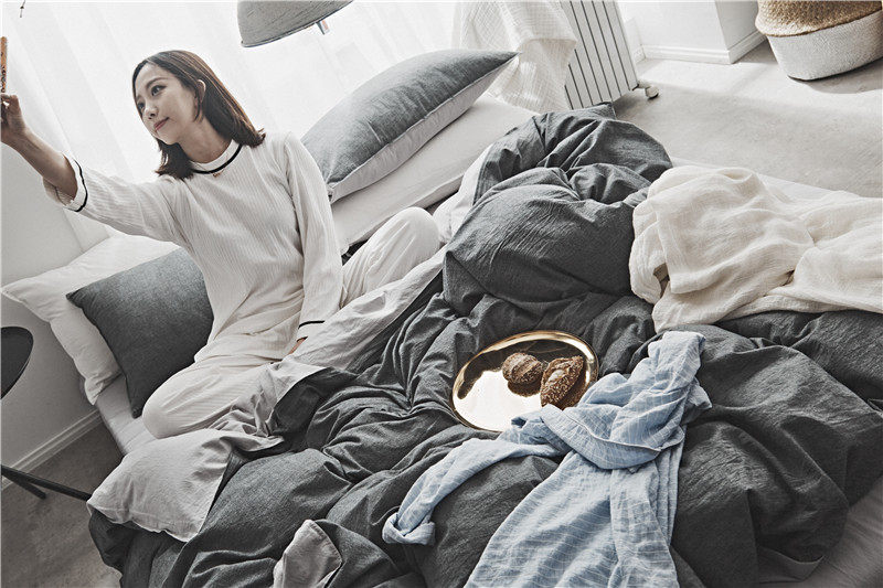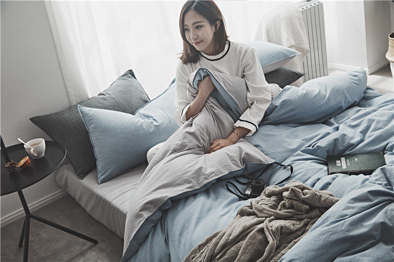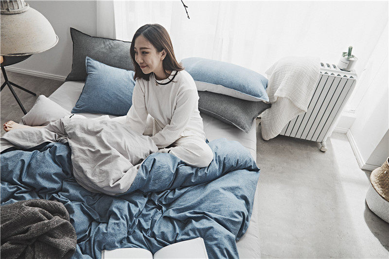 Хлопковый японский комплект, покрывало, пододеяльник, простыня, 4 предмета, простой и элегантный дизайн