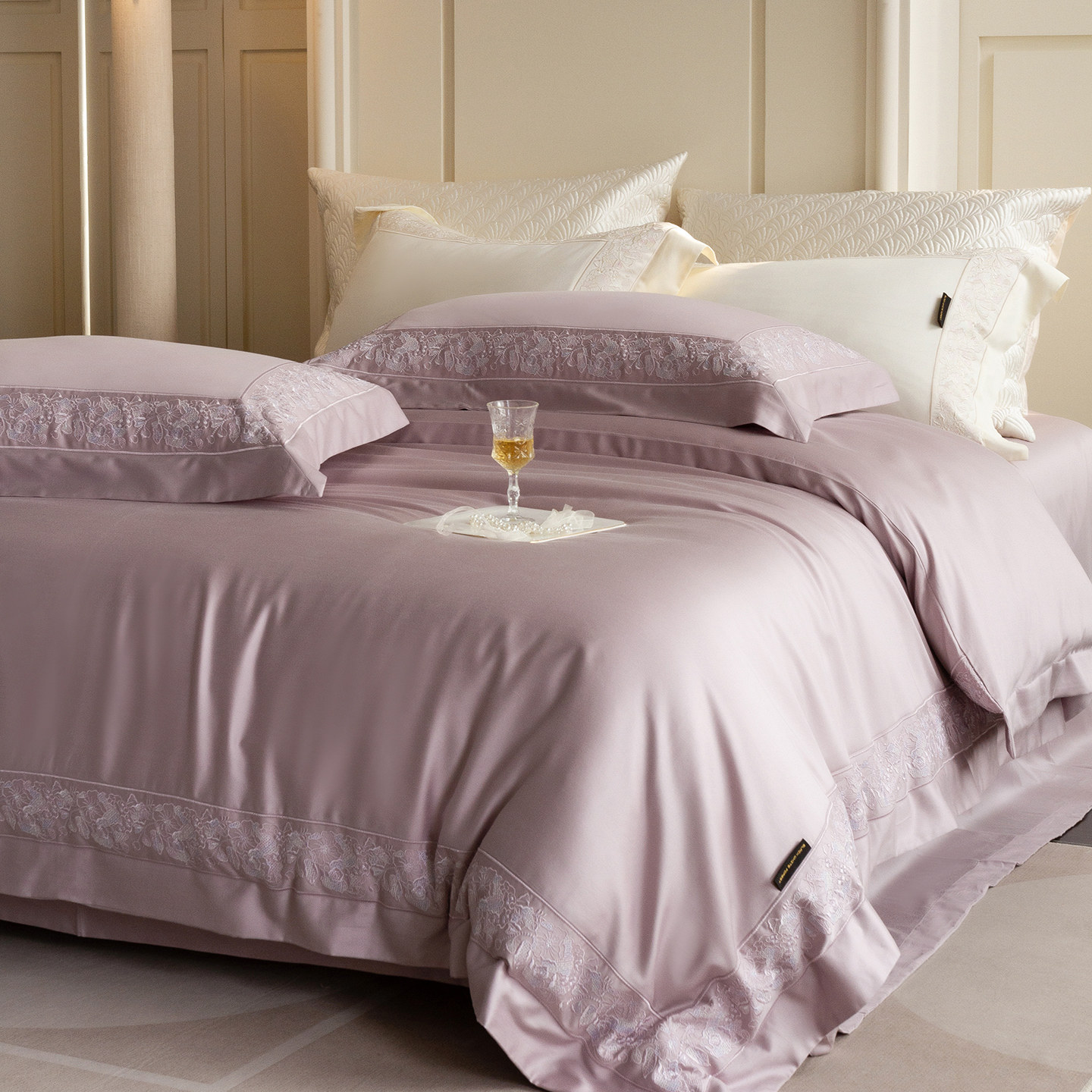 Элитный комплект, простыня, демисезонный мягкий пододеяльник, удерживающее тепло покрывало, 4 предмета, с вышивкой