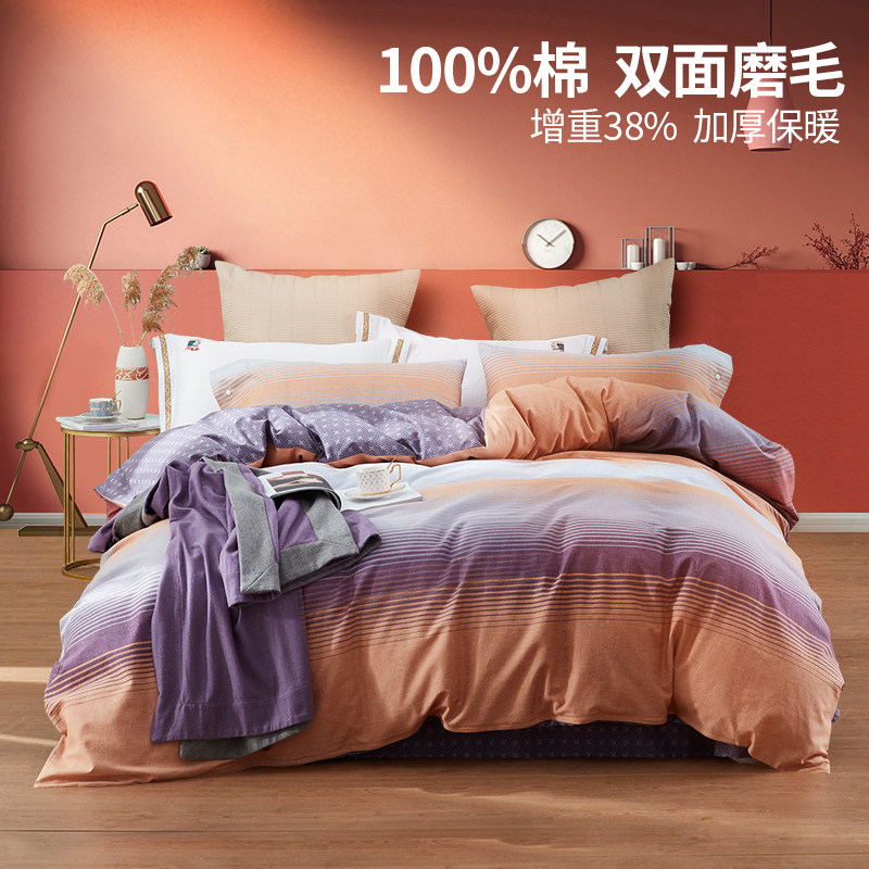 Хлопковый демисезонный комплект, хлопковая простыня, пододеяльник, покрывало, 4 предмета, 248x