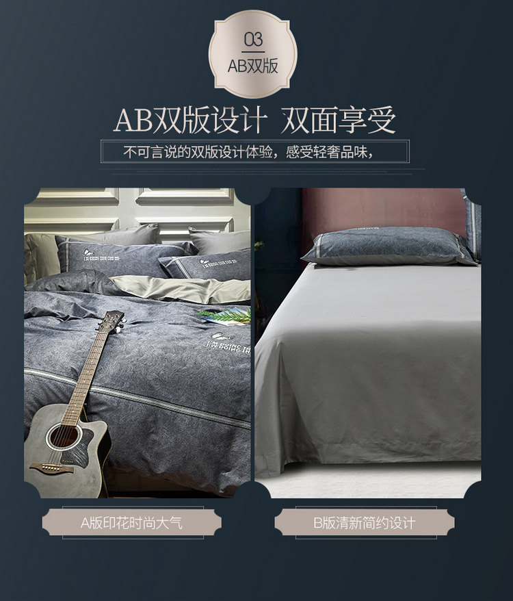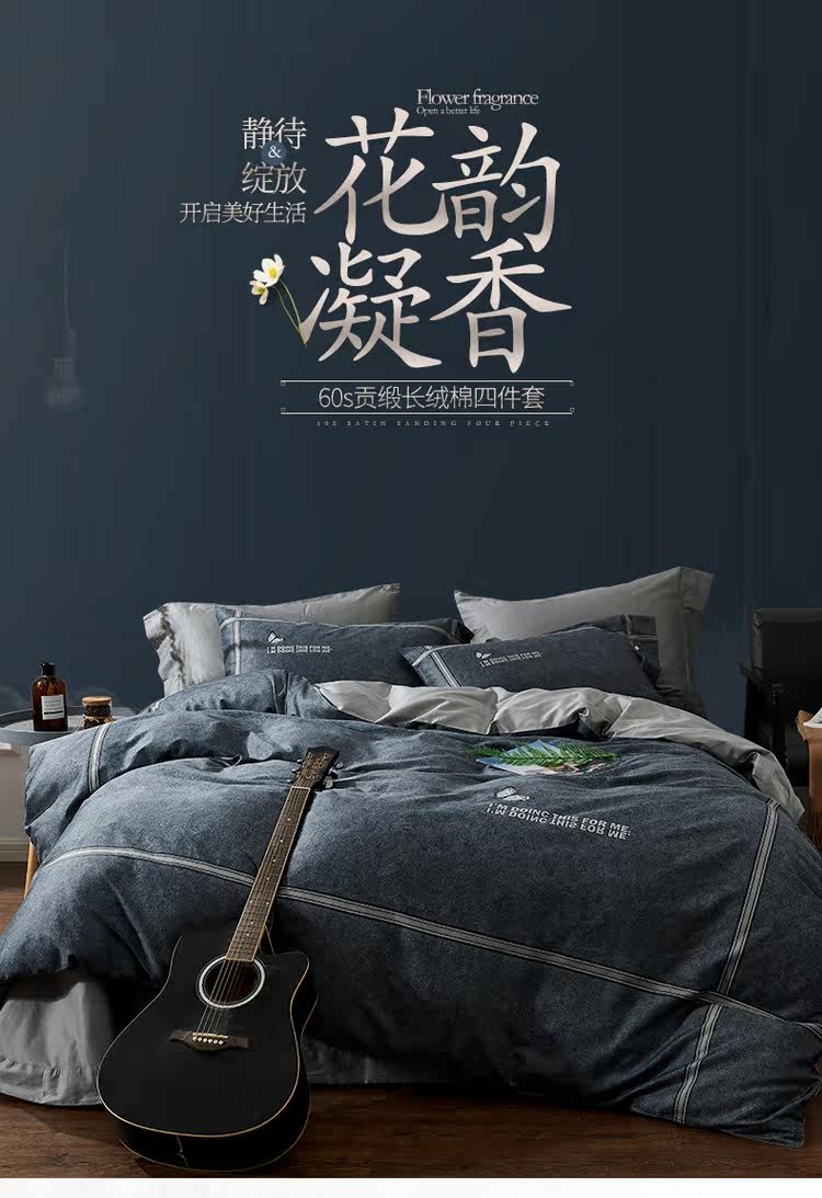Темный комплект, пододеяльник, хлопковая простыня, покрывало, 4 предмета, простой и элегантный дизайн