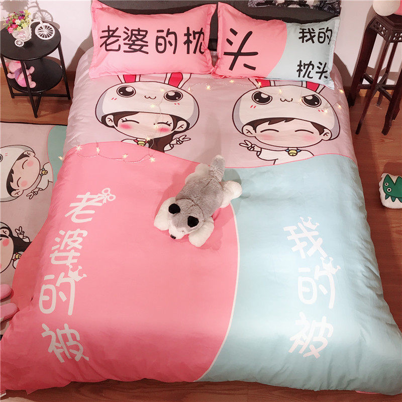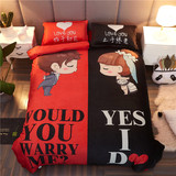 Комплект, простыня, креативный пододеяльник, покрывало, популярно в интернете, 4 предмета, для влюбленных