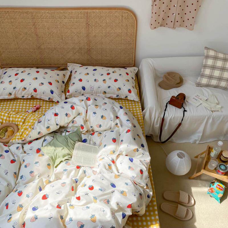 Свежая хлопковая клубника, комплект, простыня, брендовый пододеяльник, 4 предмета, популярно в интернете, 3 предмета