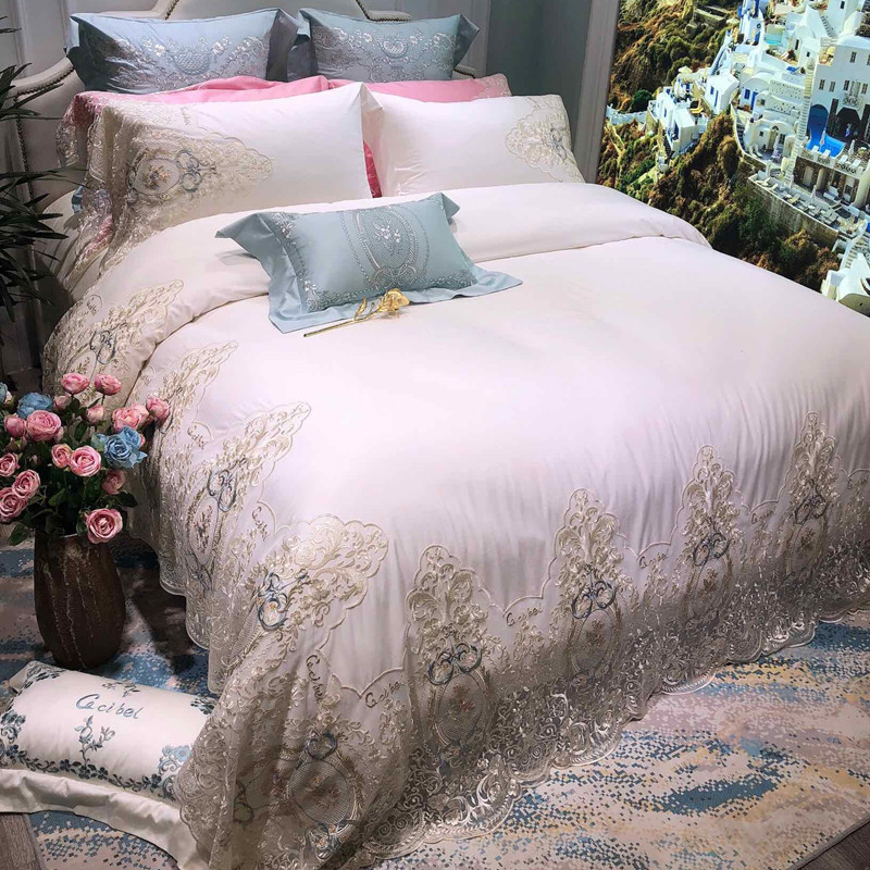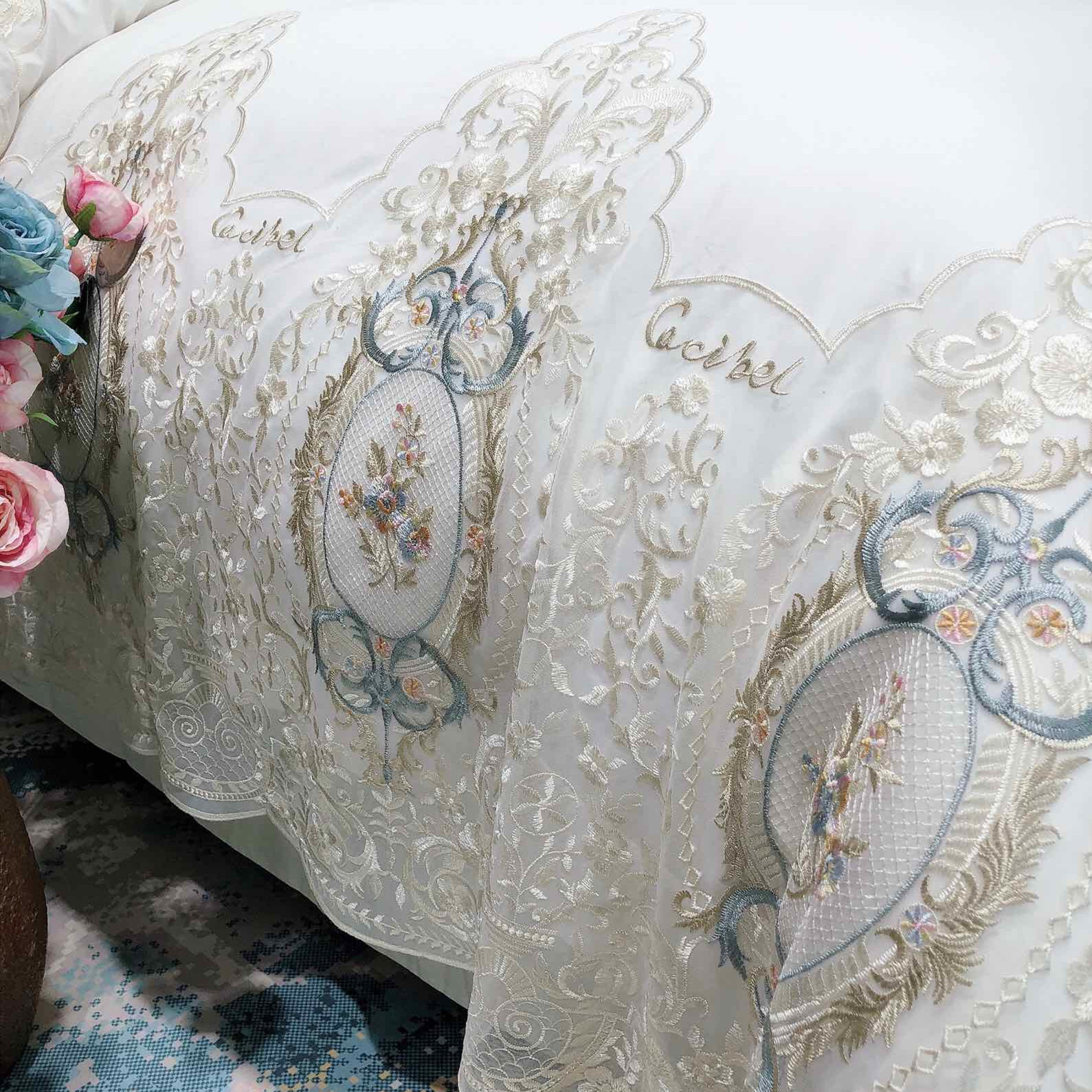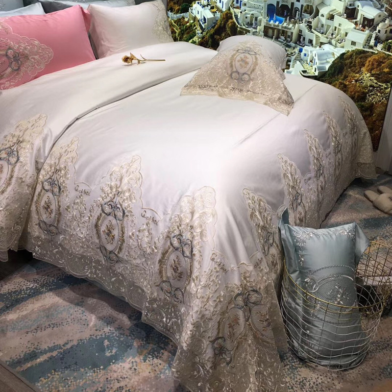 Комплект, покрывало, французский стиль, 100 шт, 4 предмета, с вышивкой, легкий роскошный стиль