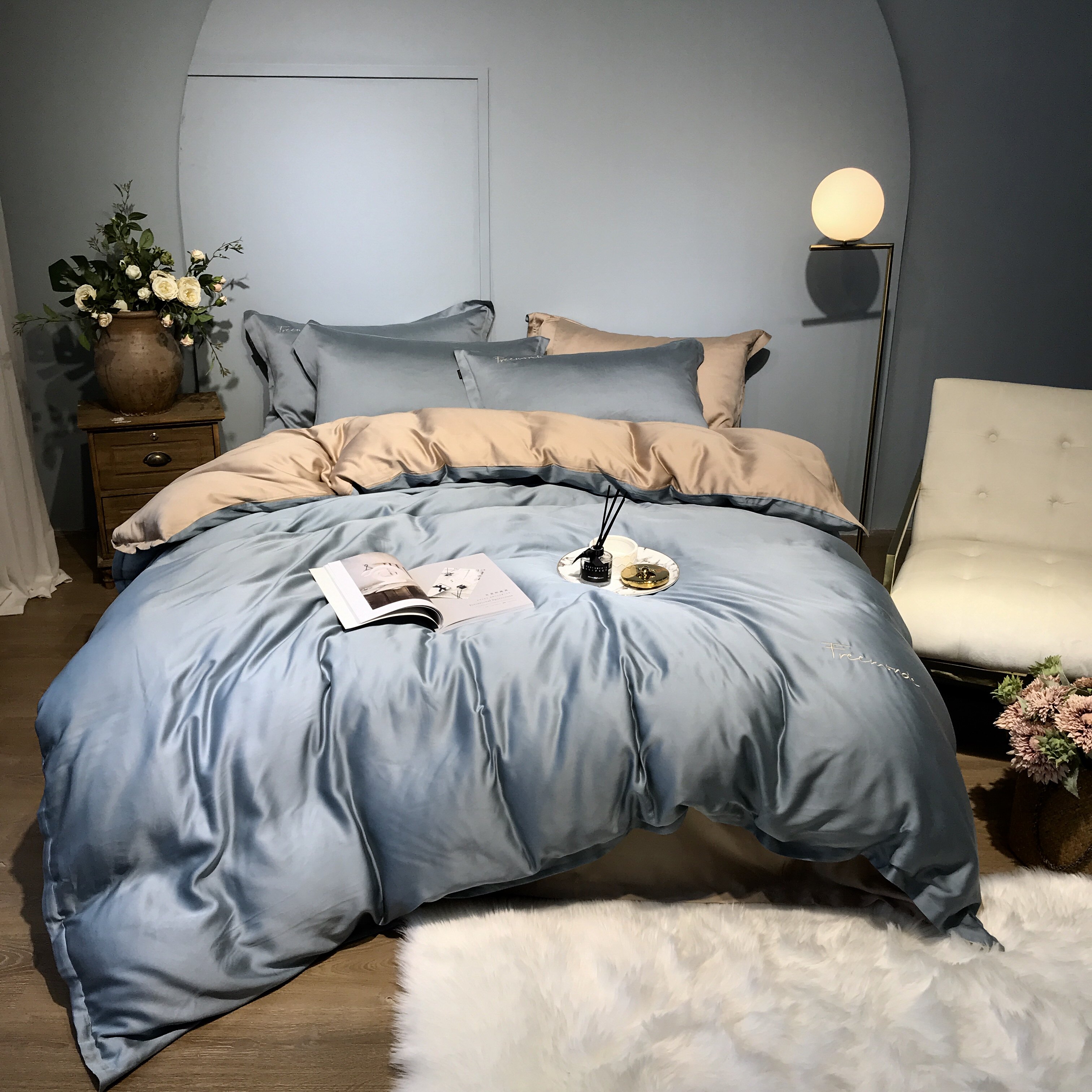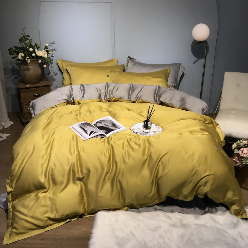 Летний двусторонний шелковистый комплект, пододеяльник, простыня, кровать, покрывало, простой и элегантный дизайн, 4 предмета