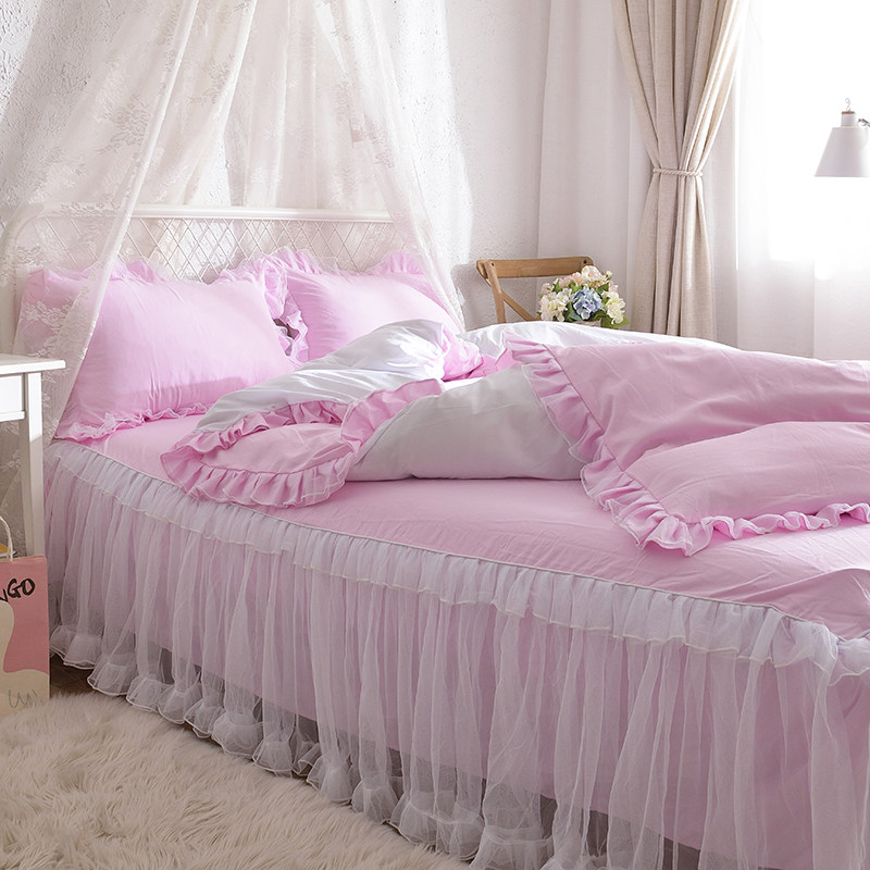 Корейская девочка-сердце в стиле принцессы белый марлевый кружевной кружевной сплошной кровать юбка с четырьмя частями 1,5 м/1,8 м.