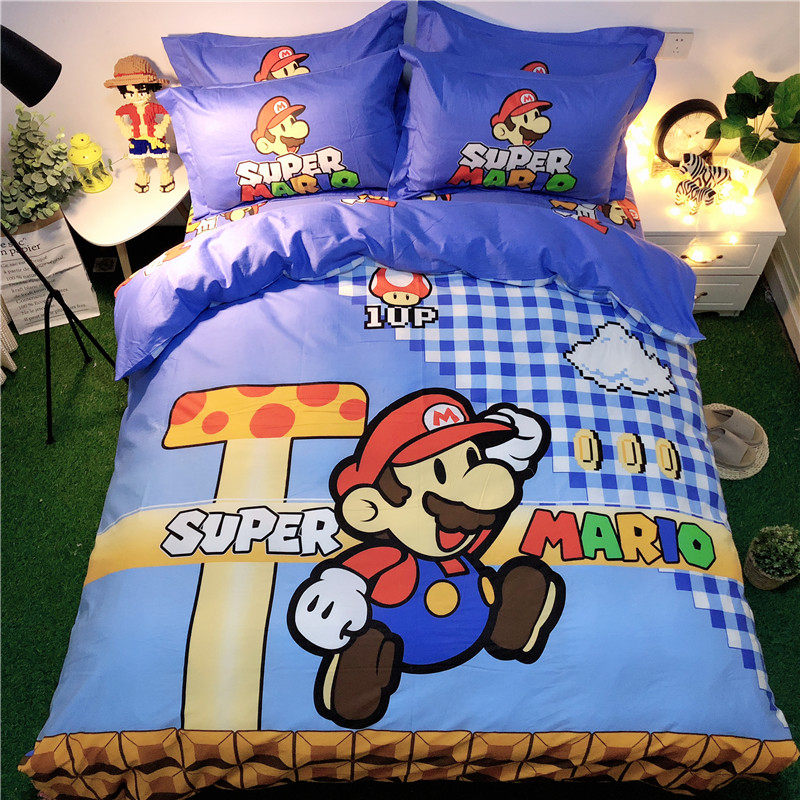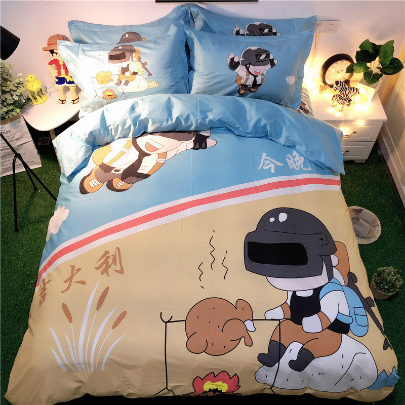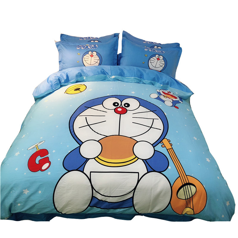 Хлопковый мультяшный комплект, простыня, милый пододеяльник, покрывало для мальчиков и девочек, 4 предмета