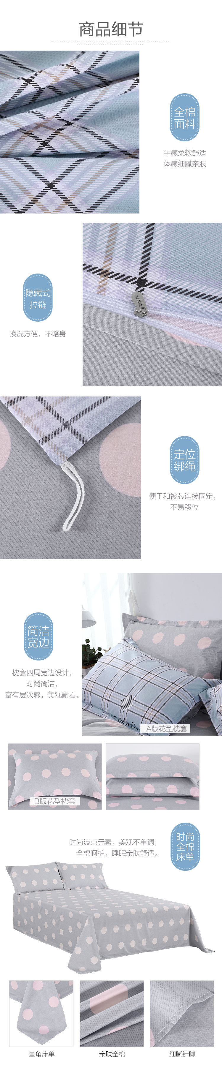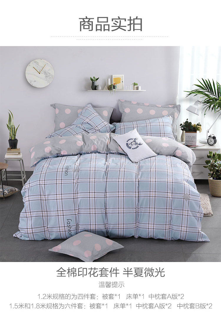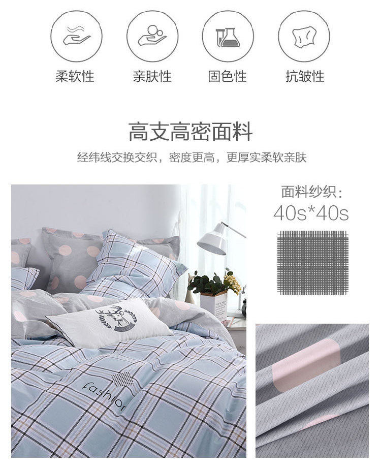 百丽丝 Хлопковый комплект, одеяло, пододеяльник, простыня, 4 предмета, простой и элегантный дизайн