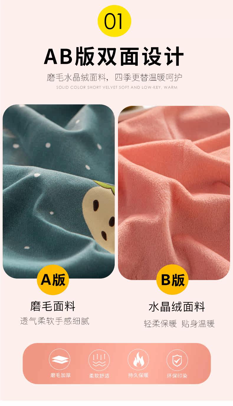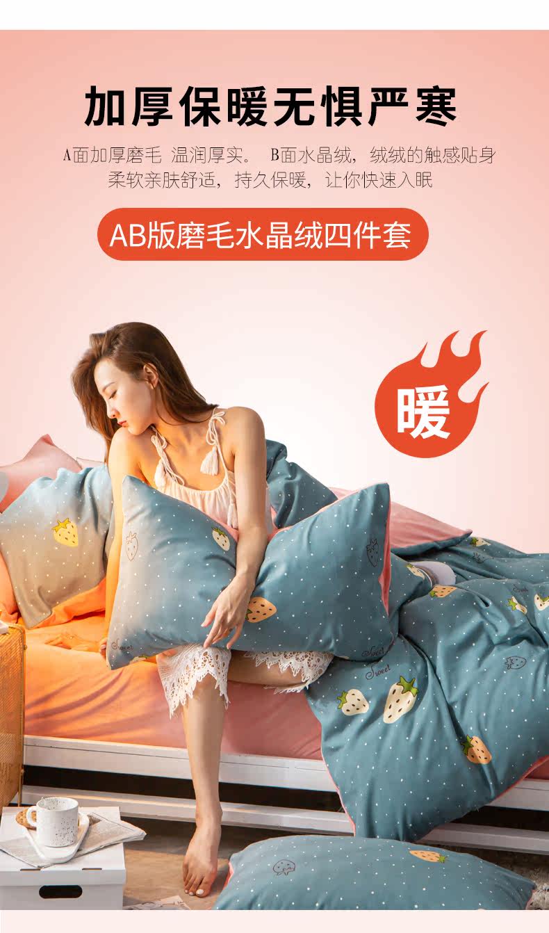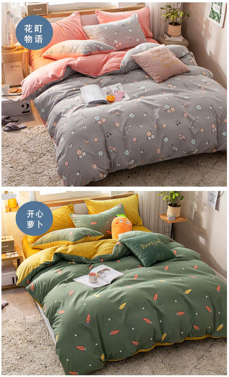 南极人 Демисезонный утепленный фланелевый коралловый комплект, пододеяльник, простыня, 4 предмета, 3 предмета