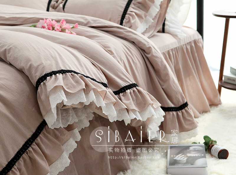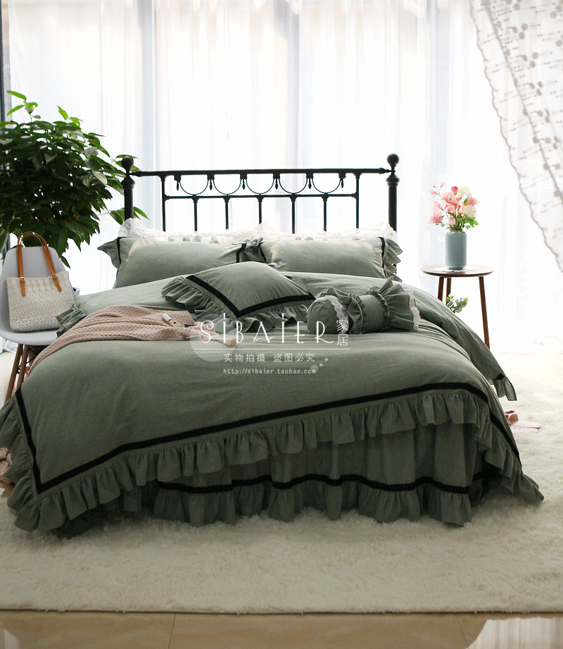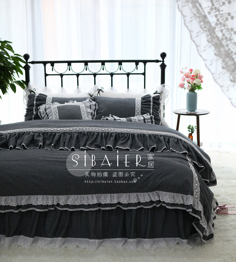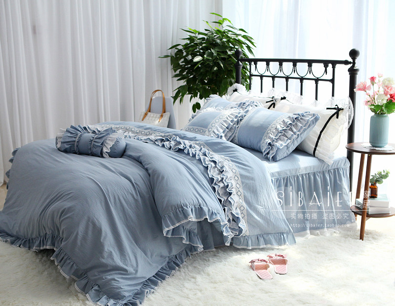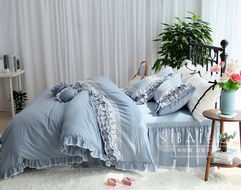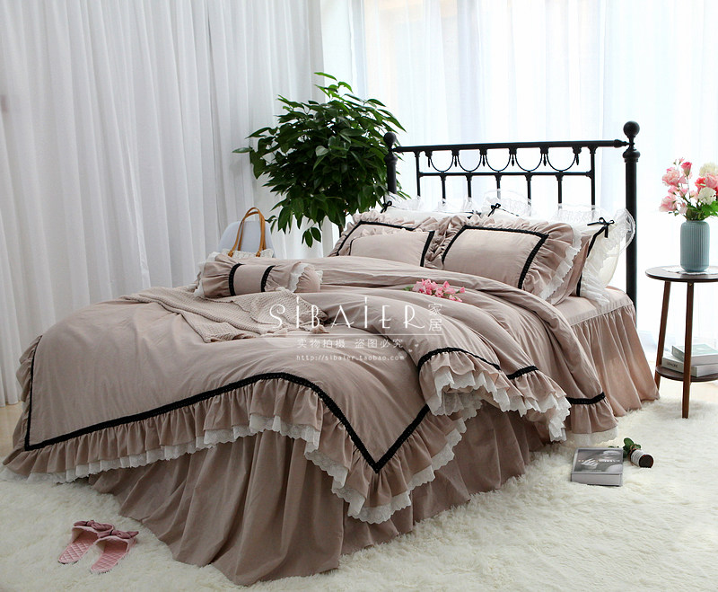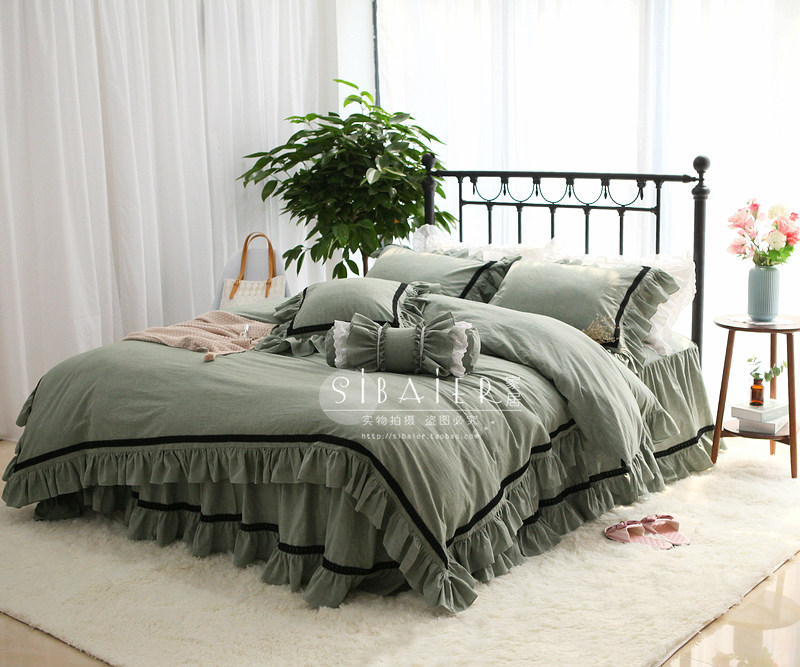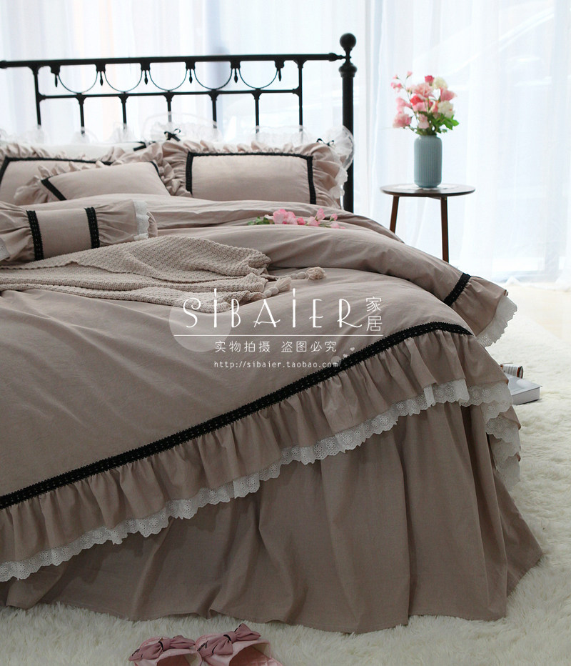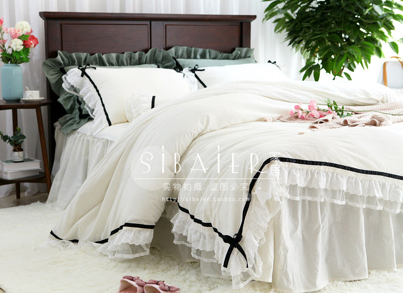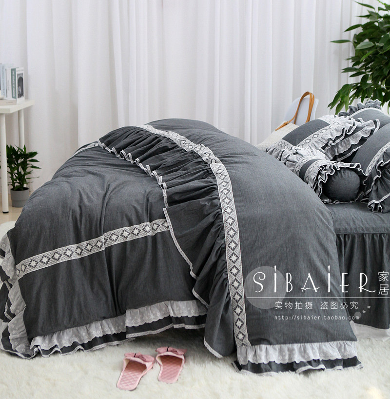 Хлопковое покрывало для принцессы, пододеяльник, комплект, в корейском стиле, простой и элегантный дизайн, кружевное платье, 4 предмета