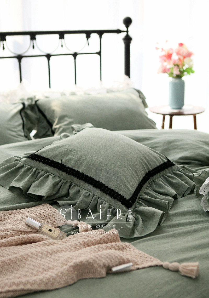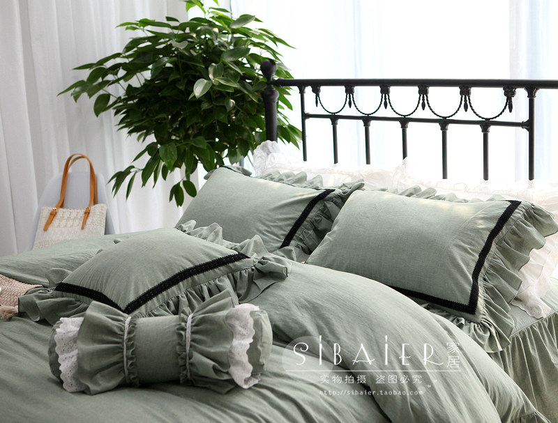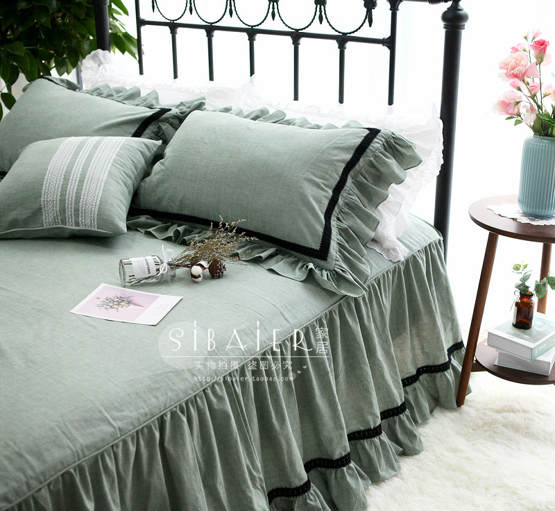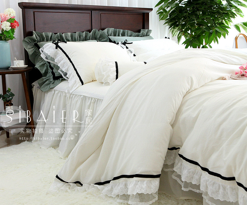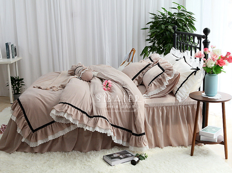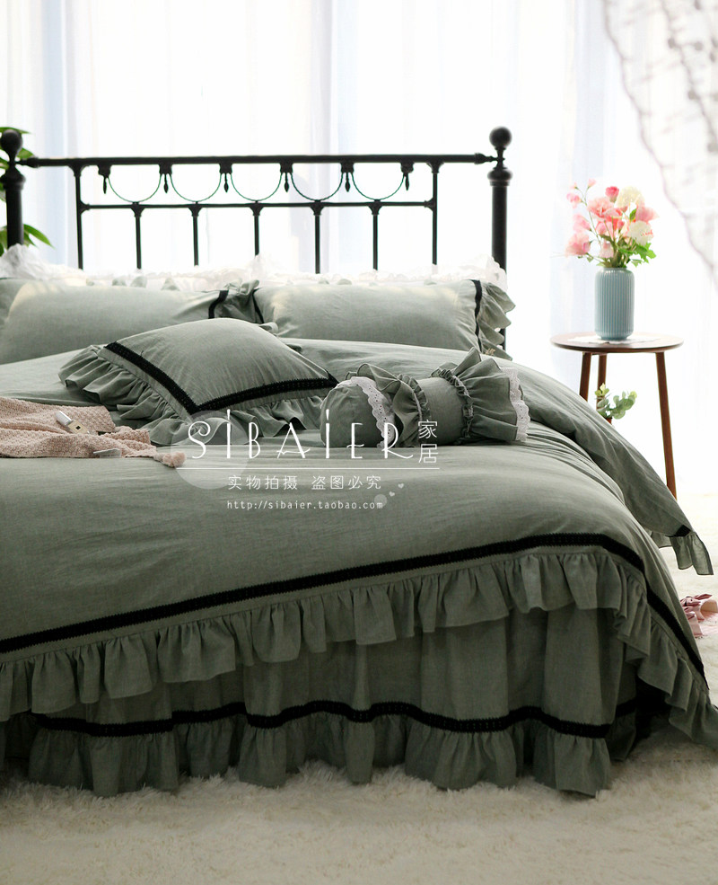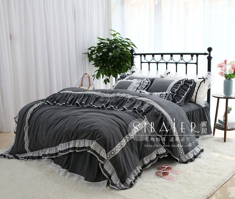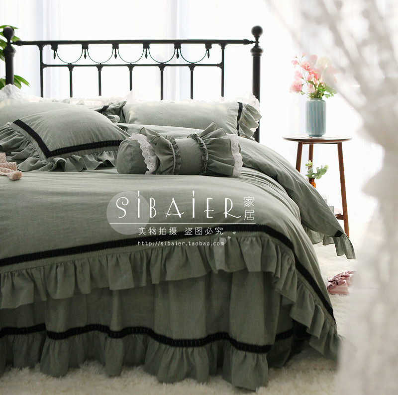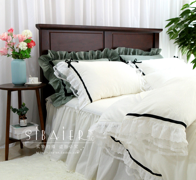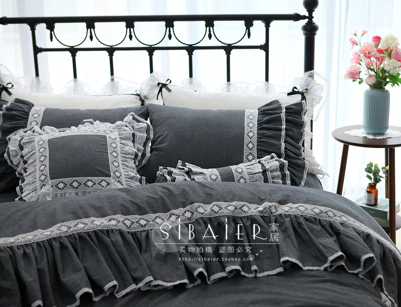 Хлопковое покрывало для принцессы, пододеяльник, комплект, в корейском стиле, простой и элегантный дизайн, кружевное платье, 4 предмета