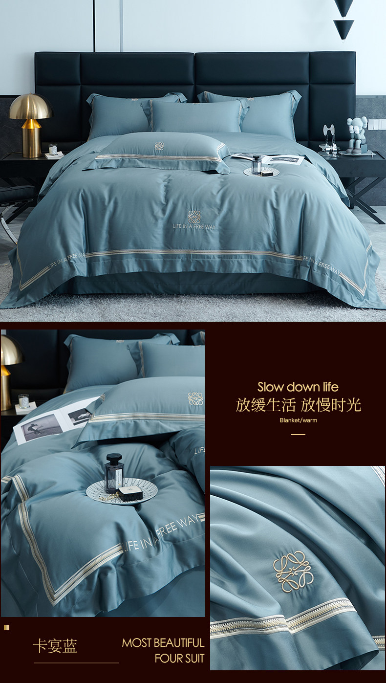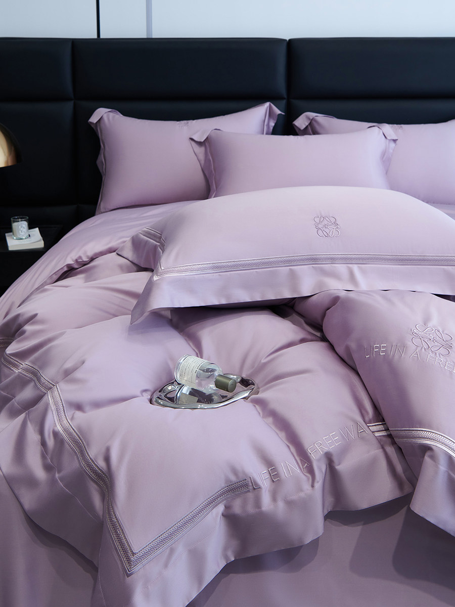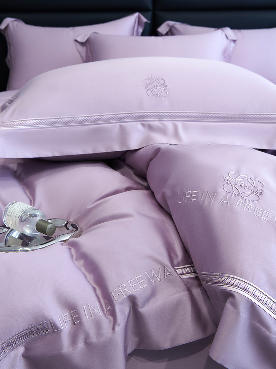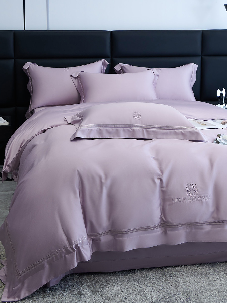 Летний комплект, шелковистая простыня, шелковый пододеяльник, покрывало, 100 шт, 4 предмета, с вышивкой, легкий роскошный стиль