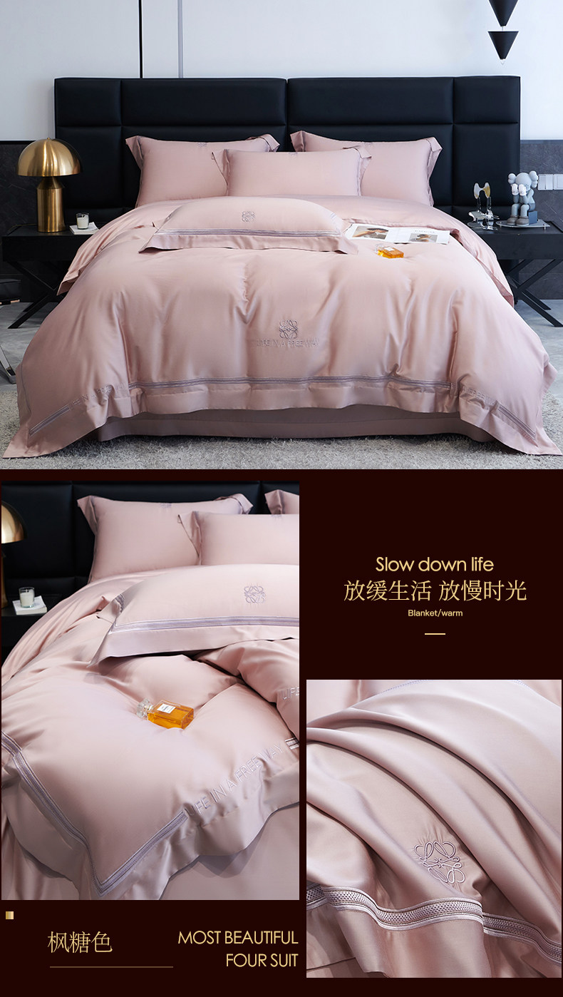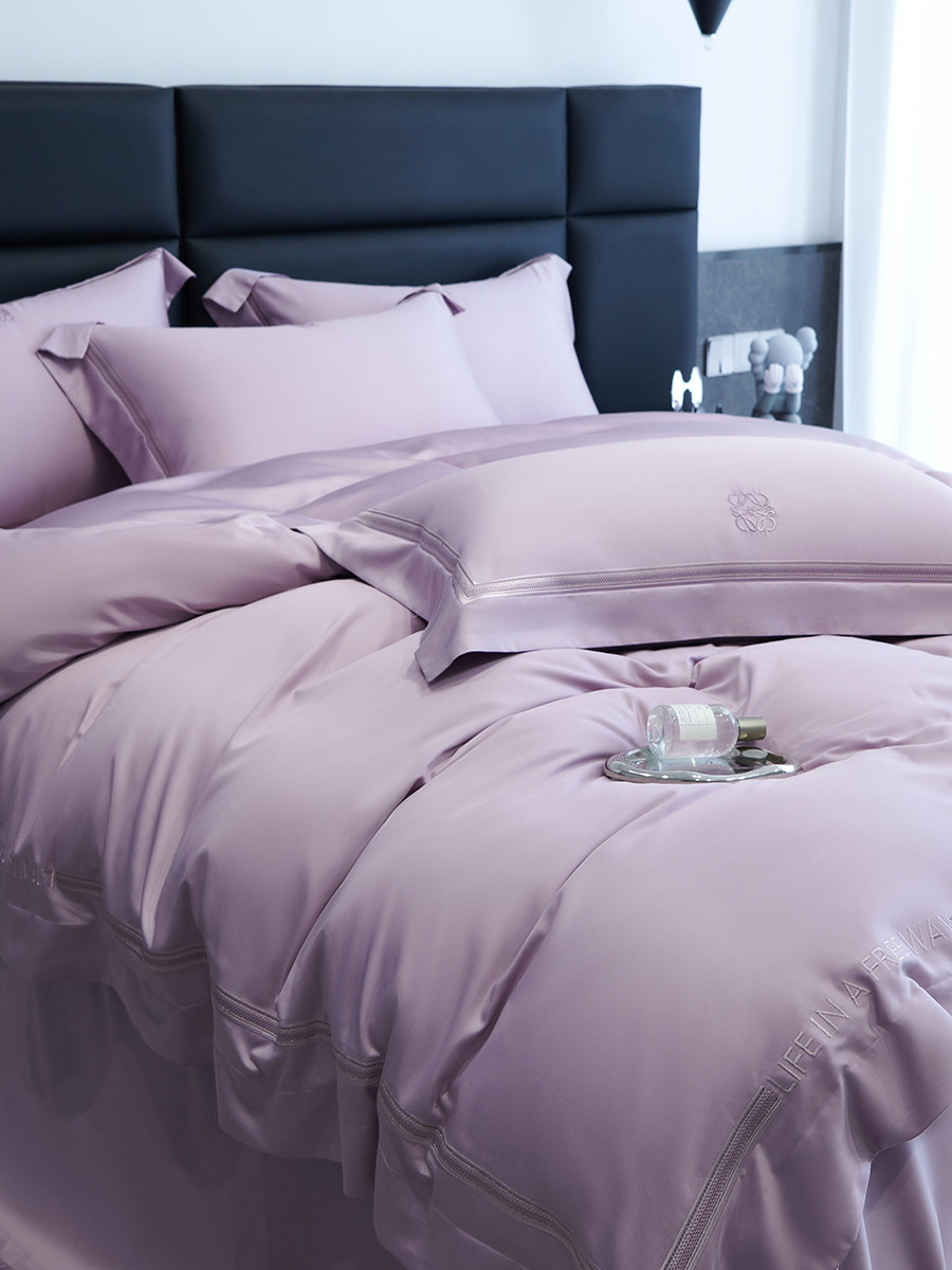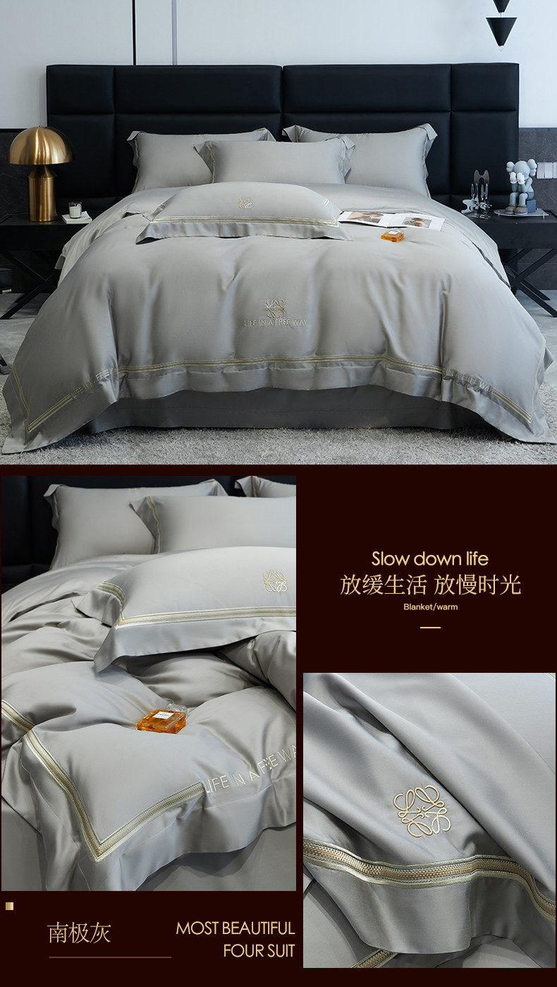 Летний комплект, шелковистая простыня, шелковый пододеяльник, покрывало, 100 шт, 4 предмета, с вышивкой, легкий роскошный стиль