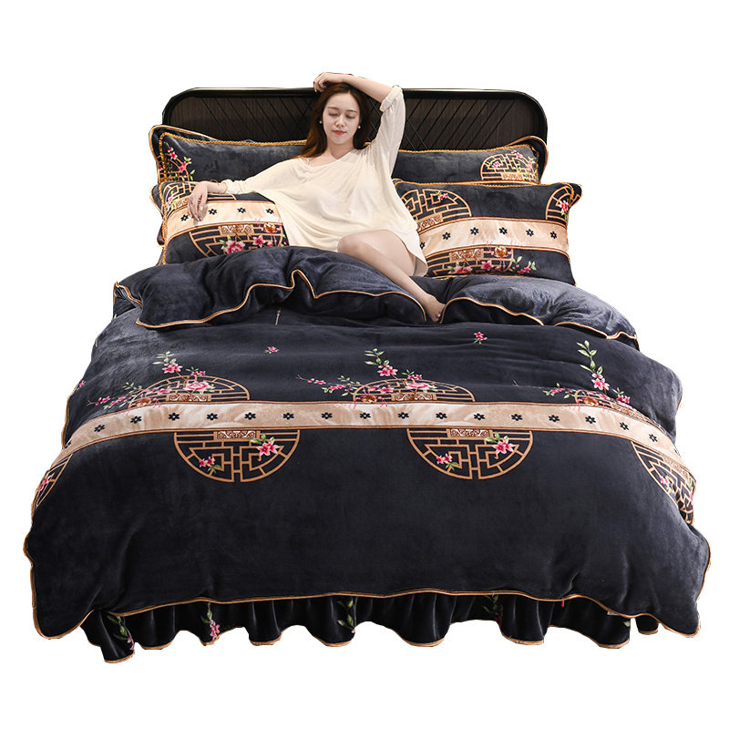 Коралловый двусторонний комплект, удерживающий тепло фланелевый пододеяльник, увеличенная толщина, 4 предмета