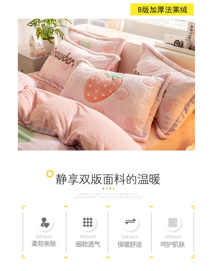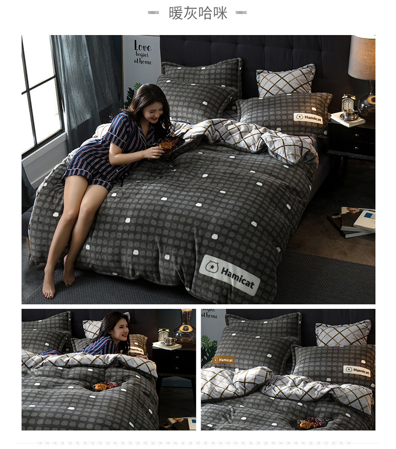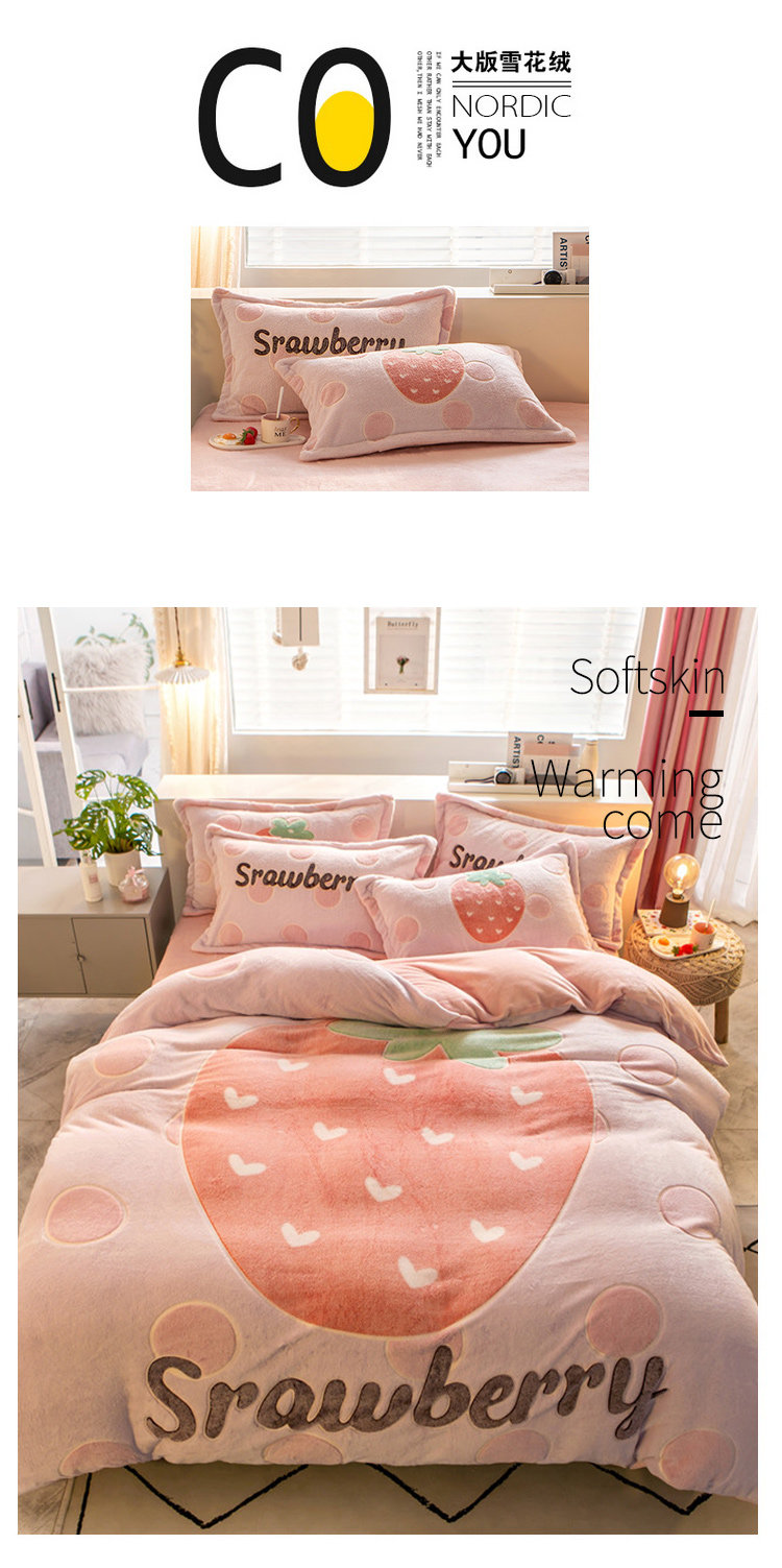南极人 Коралловый двусторонний комплект, простыня, фланелевый пододеяльник, 4 предмета, со снежинками, 3 предмета, постельные принадлежности