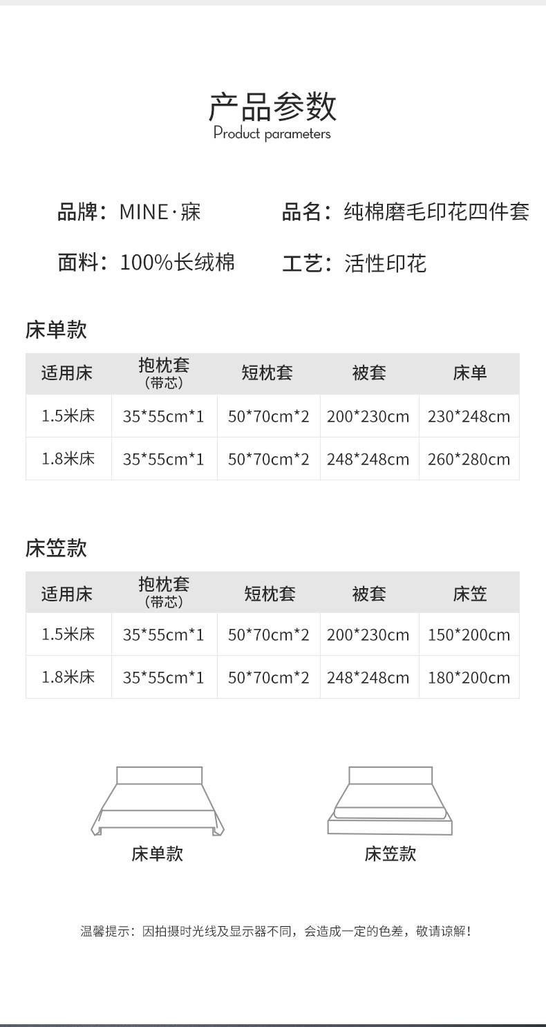 MINE/寐 Хлопковый комплект, утепленная простыня, пододеяльник, 4 предмета, постельные принадлежности