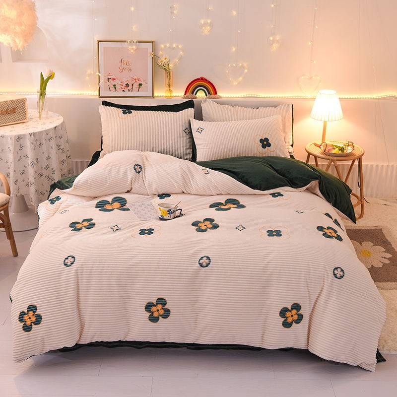 Удерживающие тепло бархатные джинсы с начесом, комплект, пододеяльник, коралловая бархатная фланелевая простыня, 4 предмета, 3 предмета