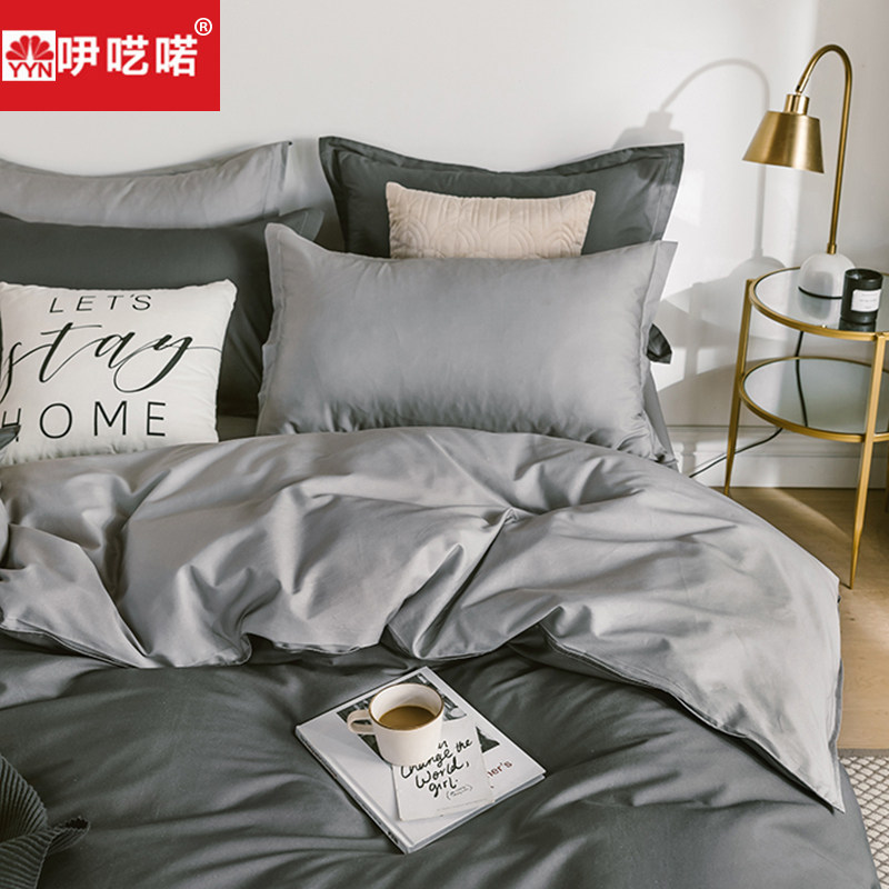 Хлопковый комплект, хлопковое одеяло, пододеяльник, простыня, покрывало, простой и элегантный дизайн, 4 предмета, 1.8м