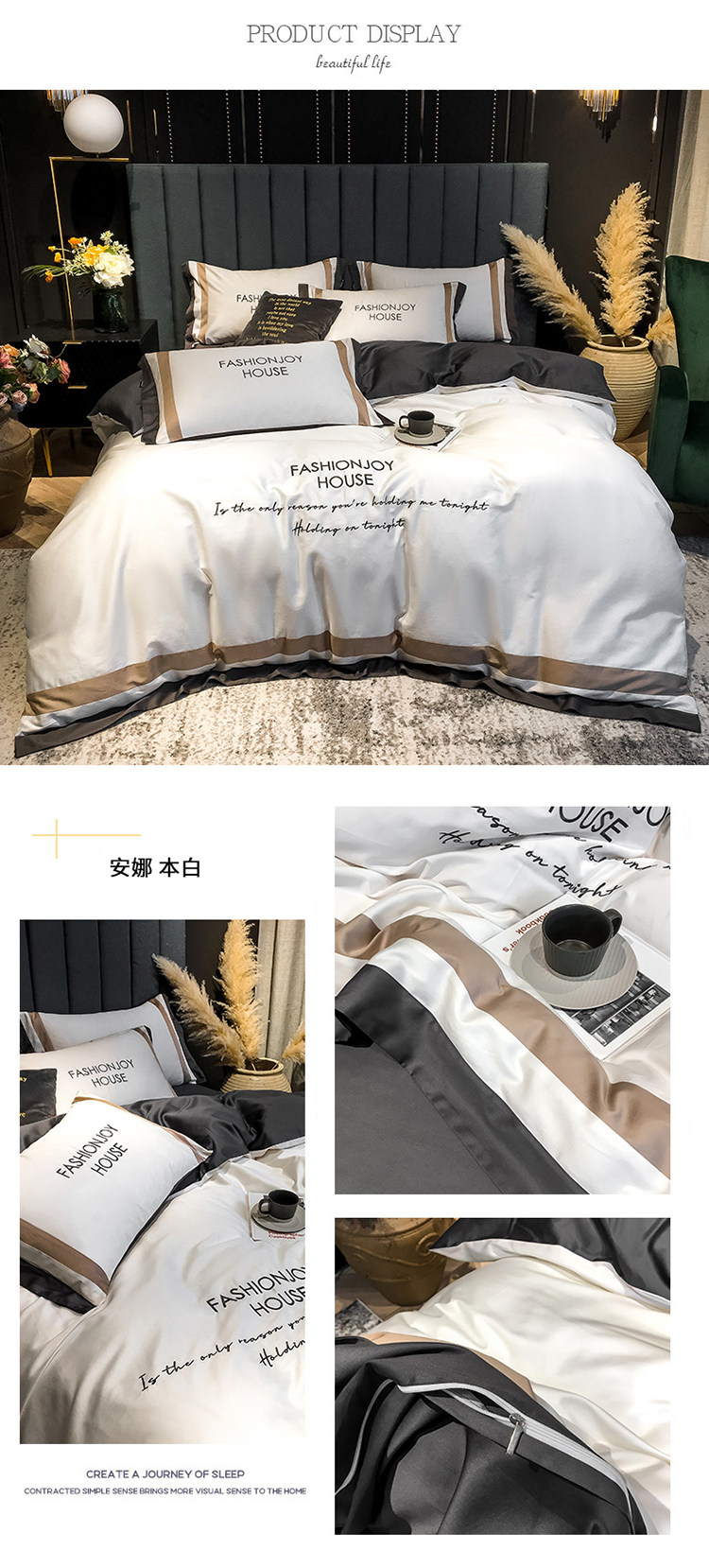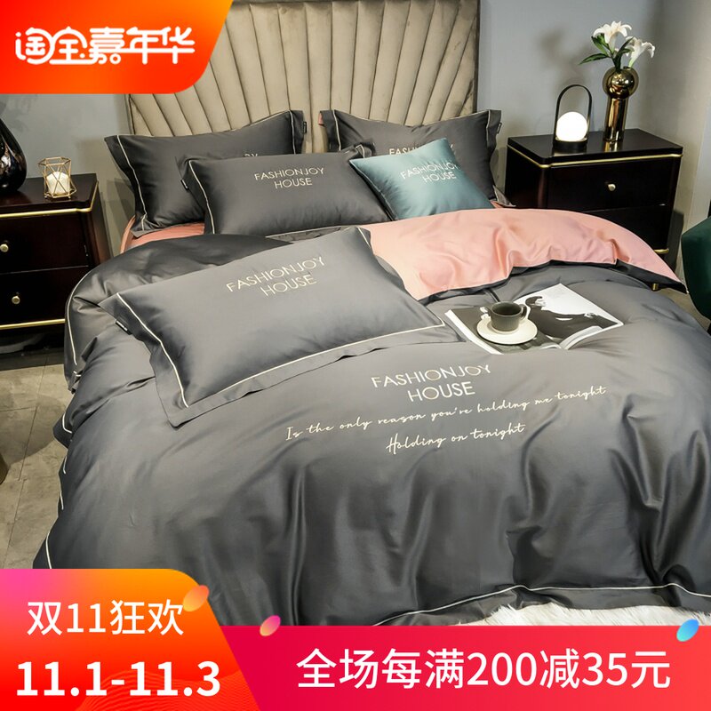 Хлопковый комплект, пододеяльник, простыня, покрывало, 60 шт, 4 предмета, простой и элегантный дизайн, европейский стиль, с вышивкой