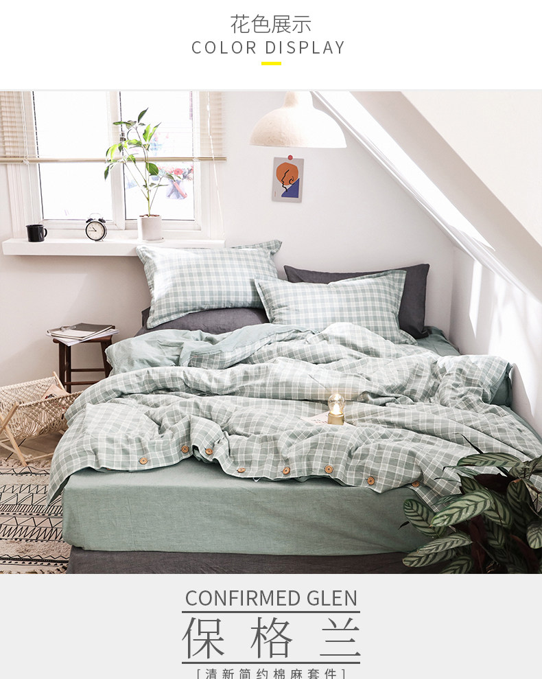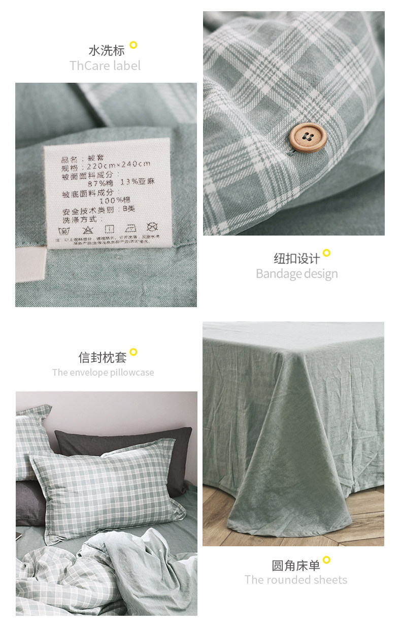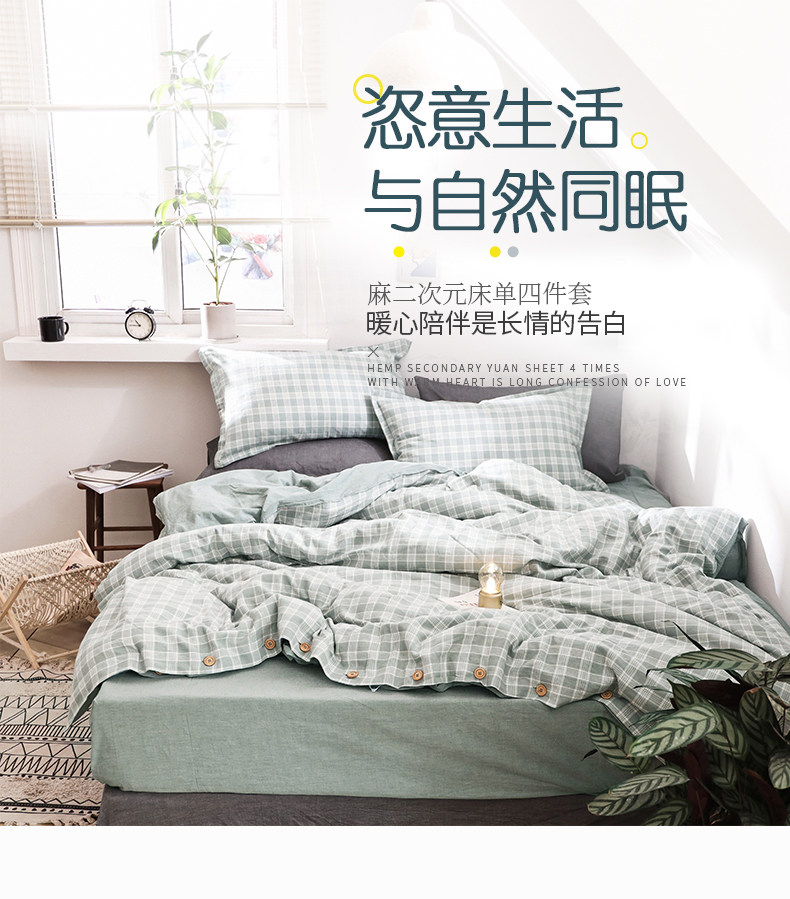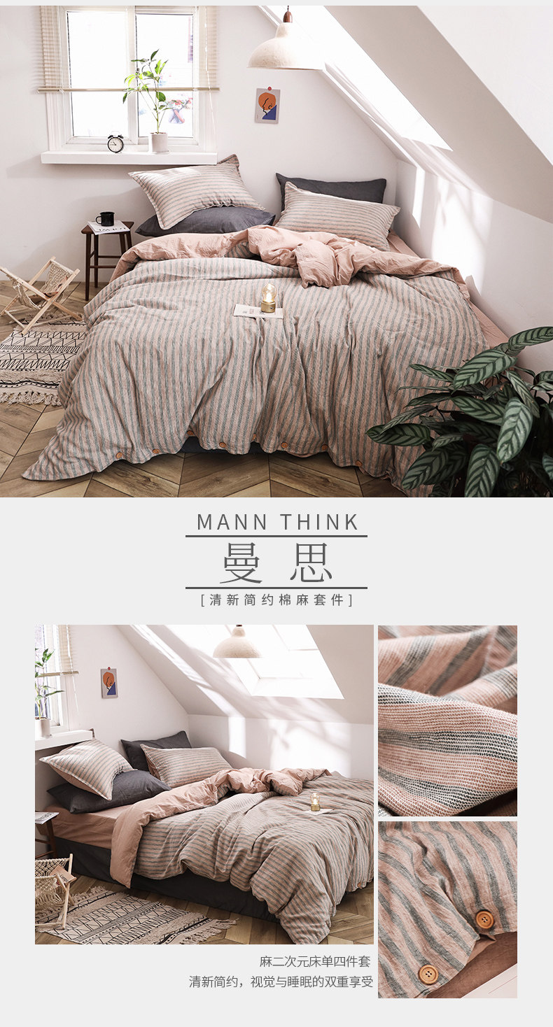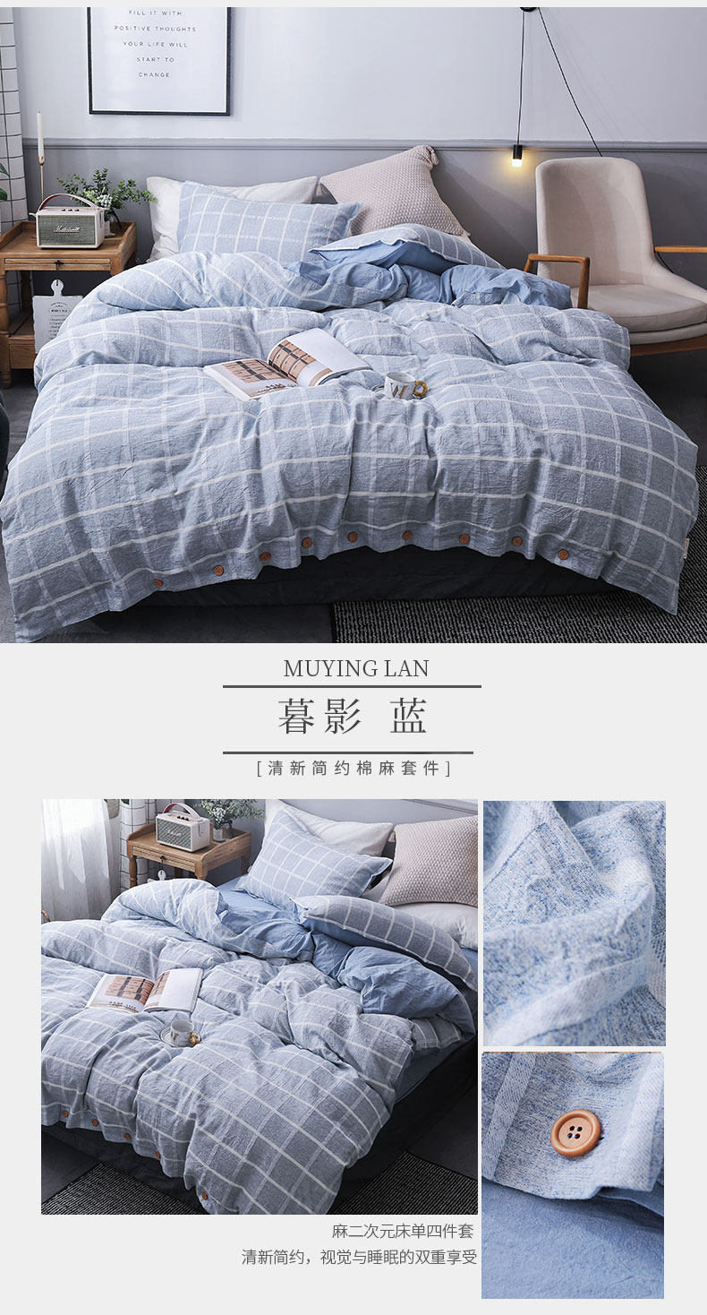 远梦 Комплект, ретро пододеяльник, простыня, 4 предмета, постельные принадлежности, из хлопка и льна, 1.5м, 1.8м, простой и элегантный дизайн