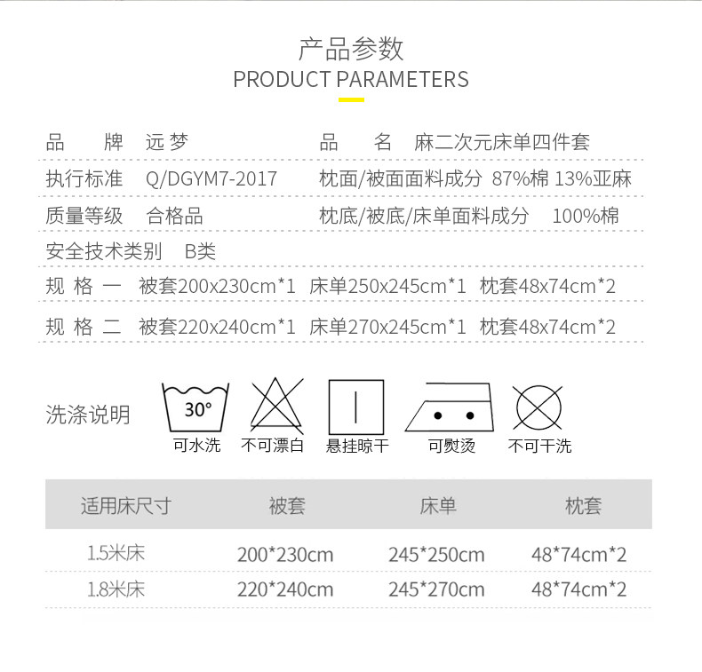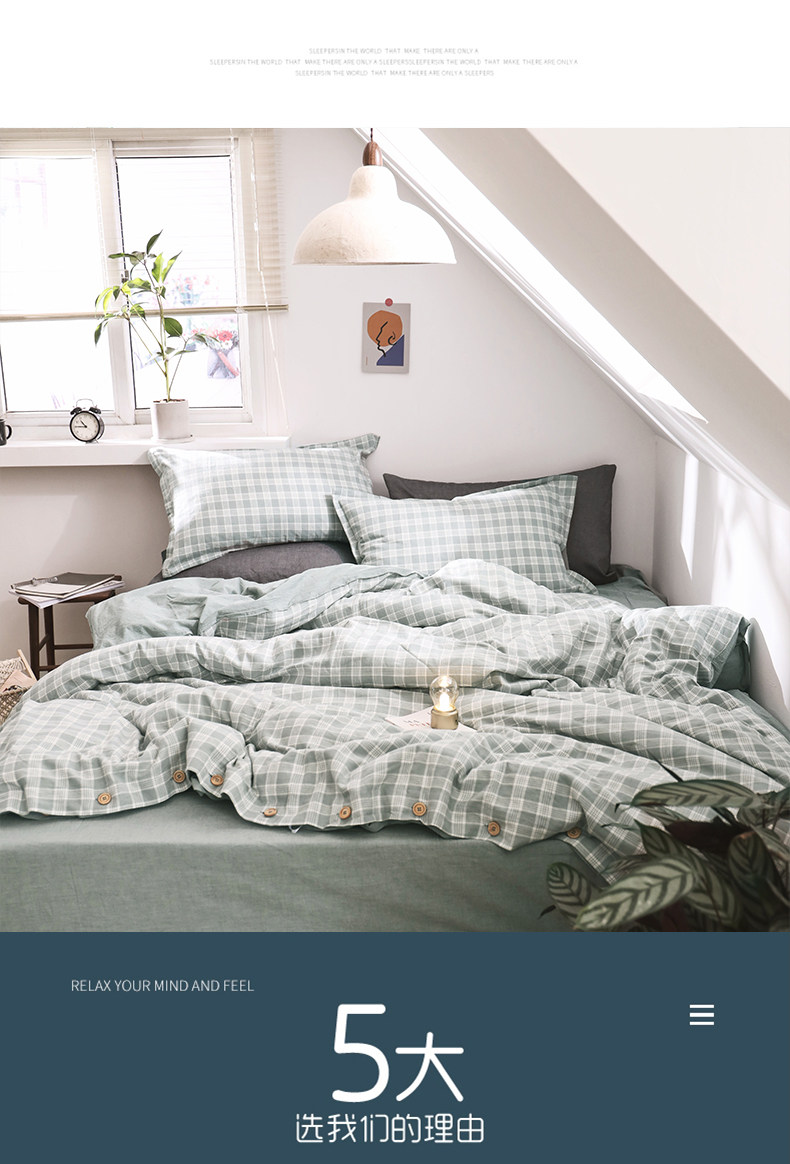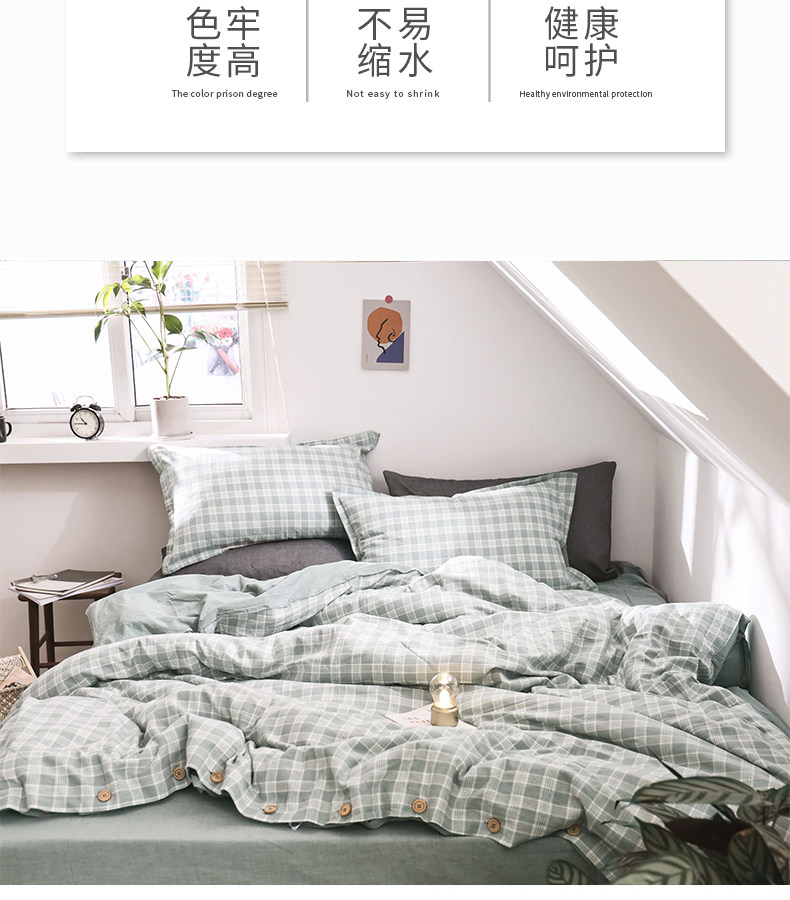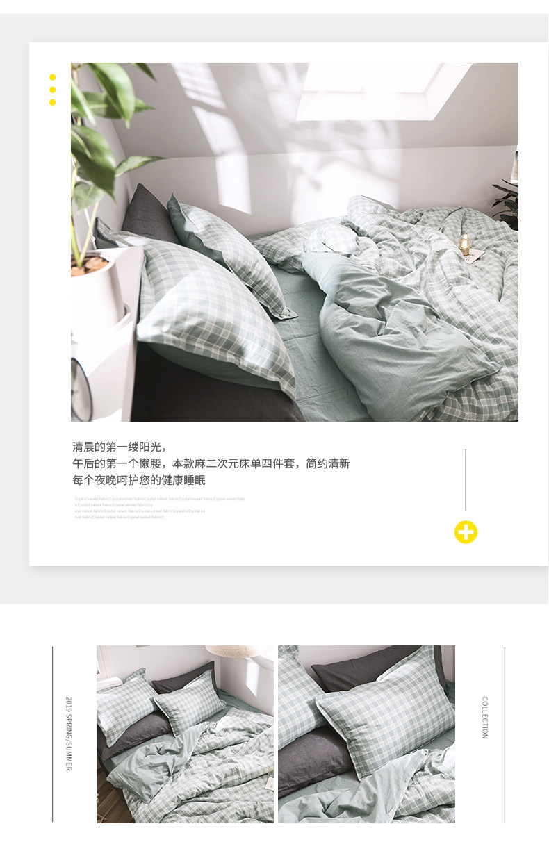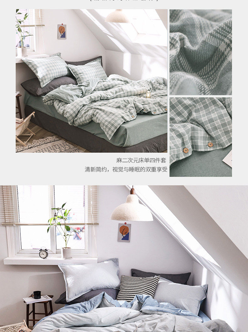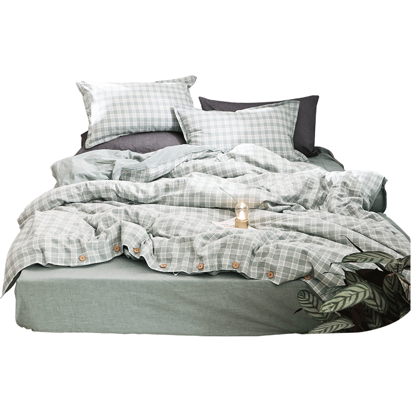 远梦 Комплект, ретро пододеяльник, простыня, 4 предмета, постельные принадлежности, из хлопка и льна, 1.5м, 1.8м, простой и элегантный дизайн