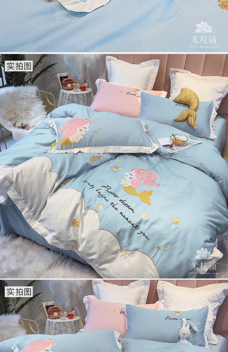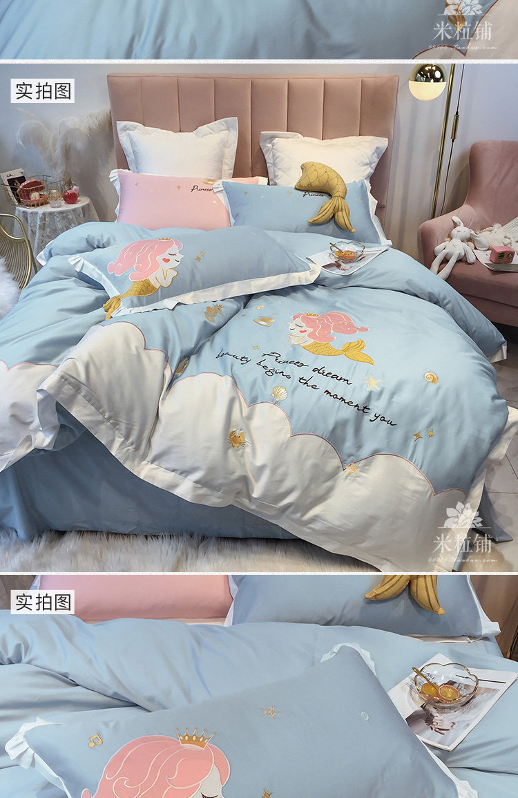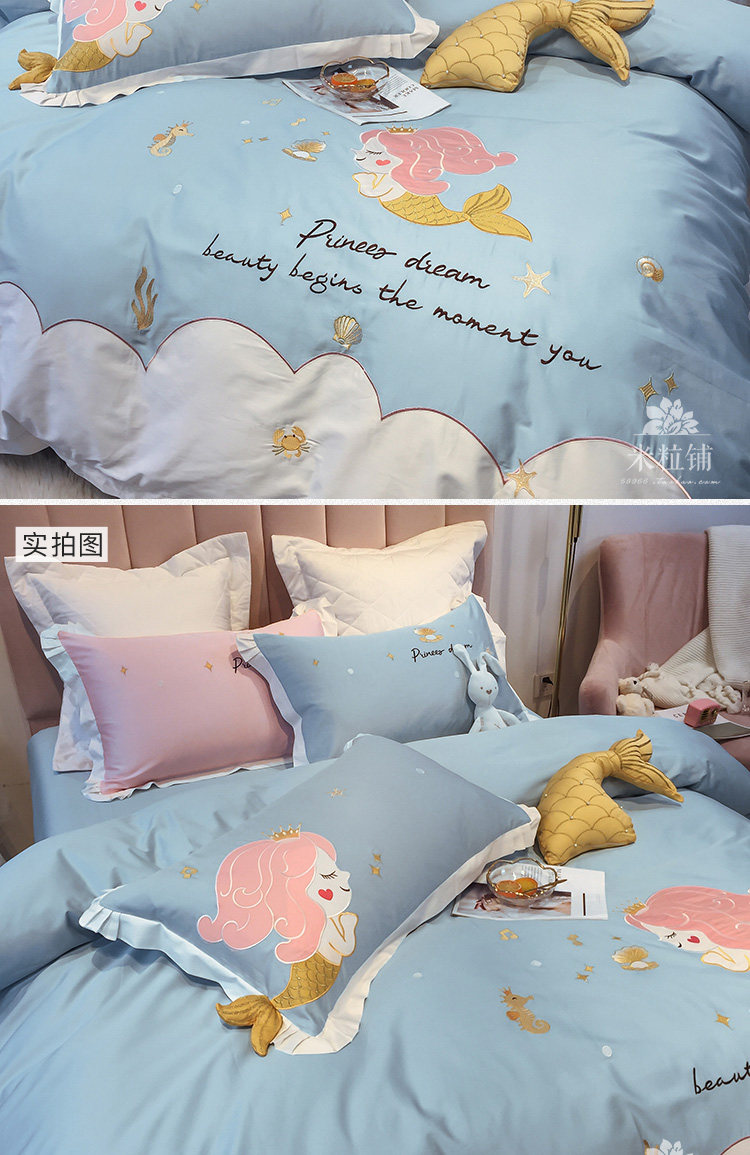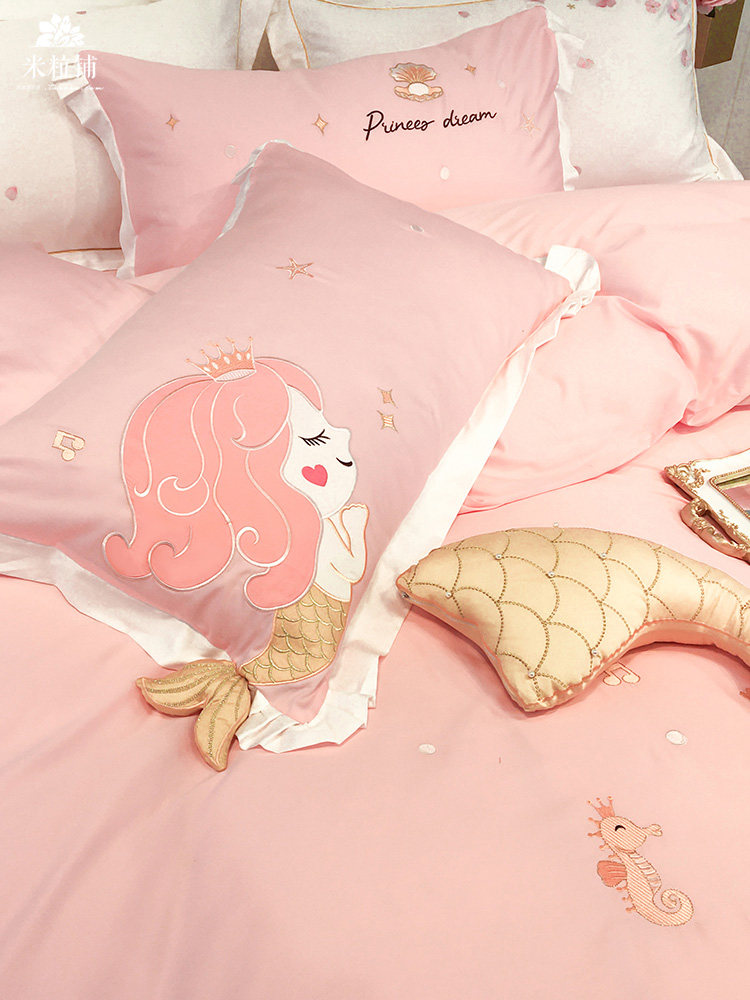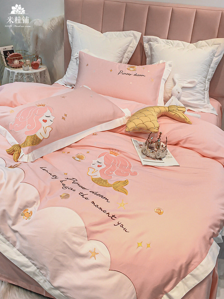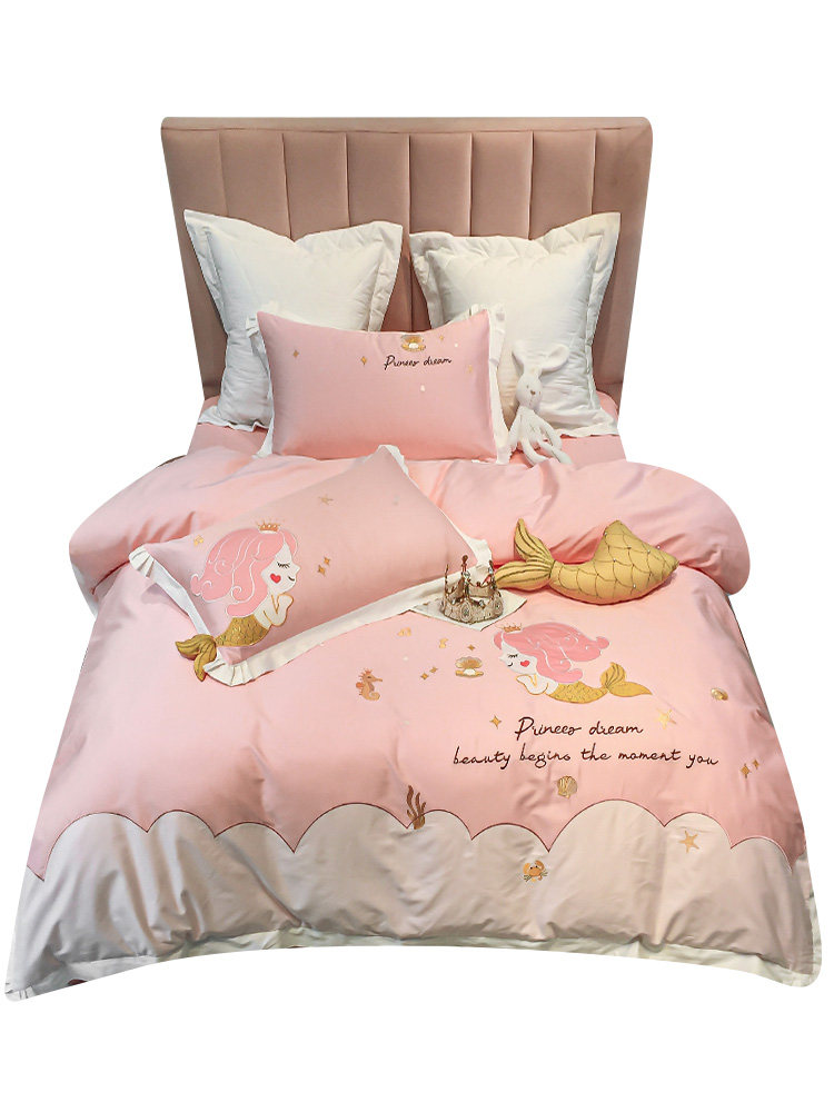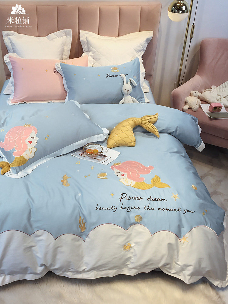 Хлопковый милый комплект, покрывало, 4 предмета, с вышивкой