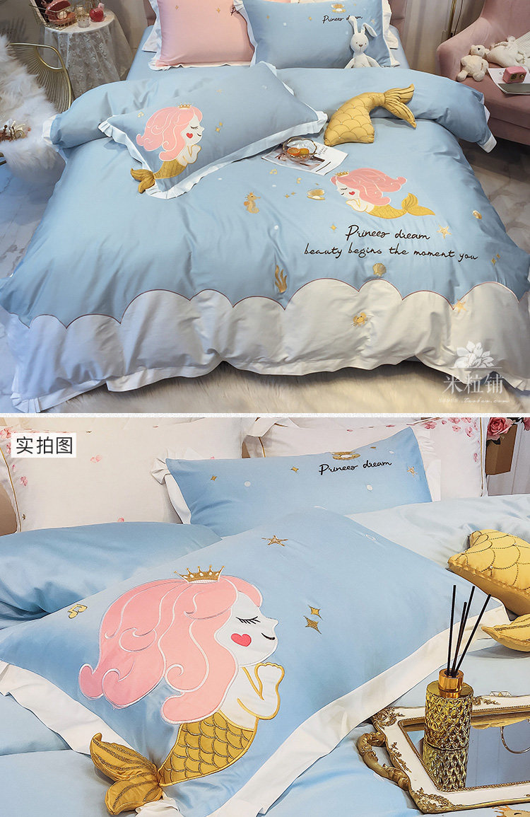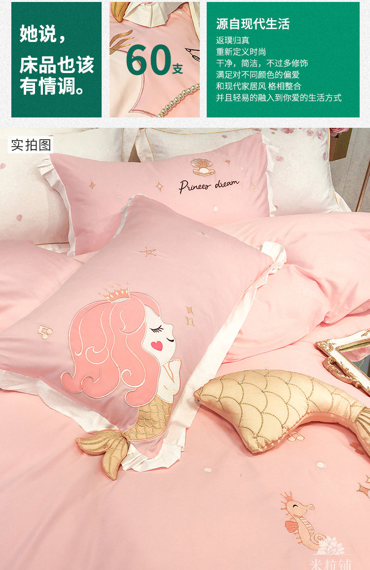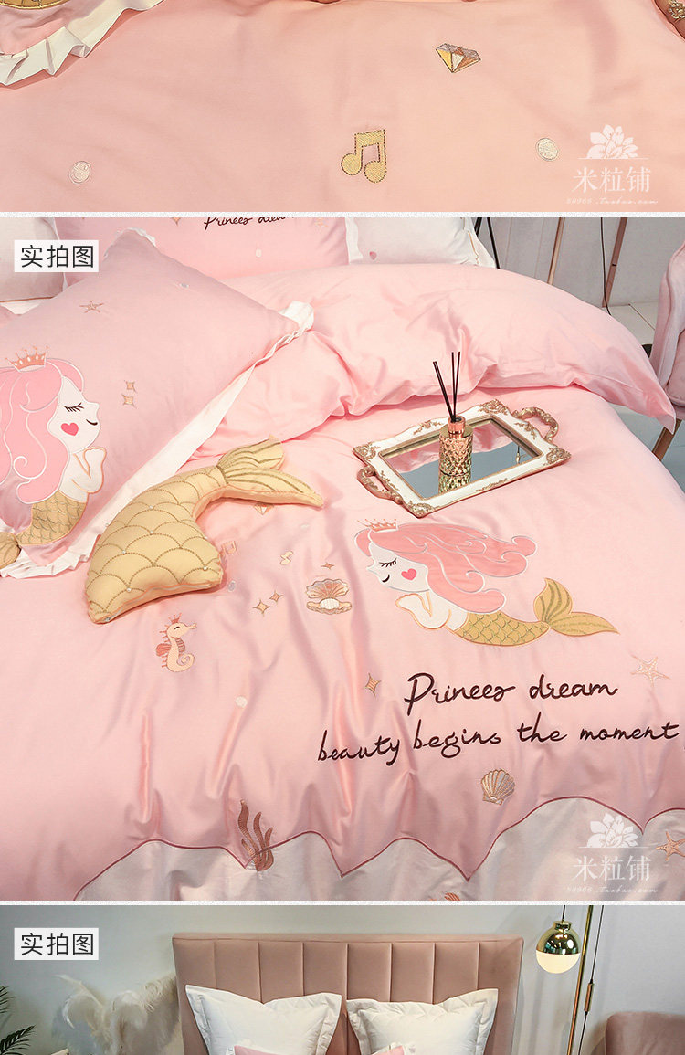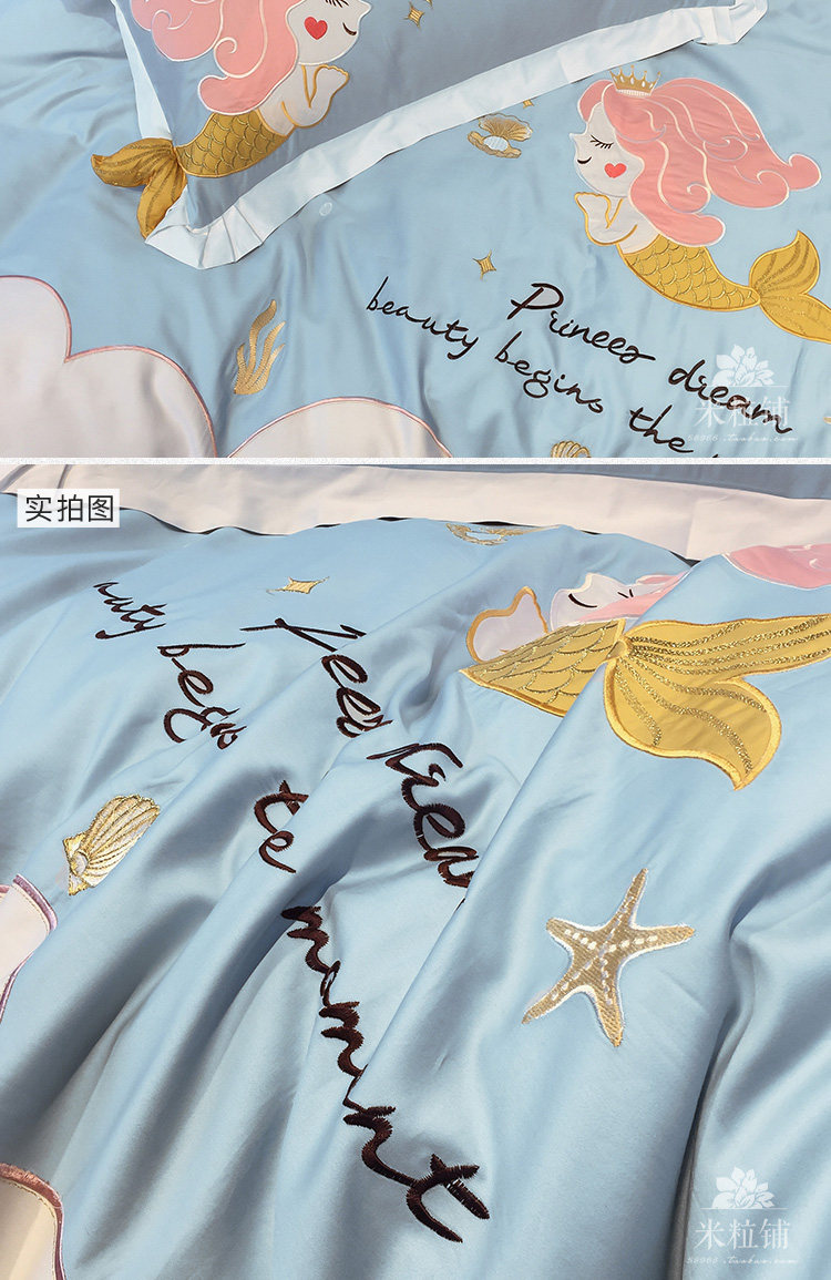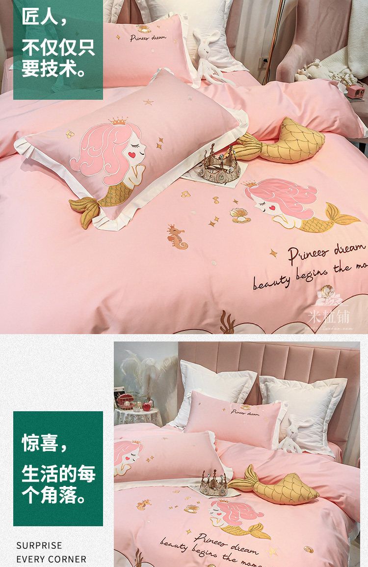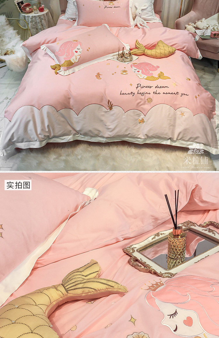 Хлопковый милый комплект, покрывало, 4 предмета, с вышивкой