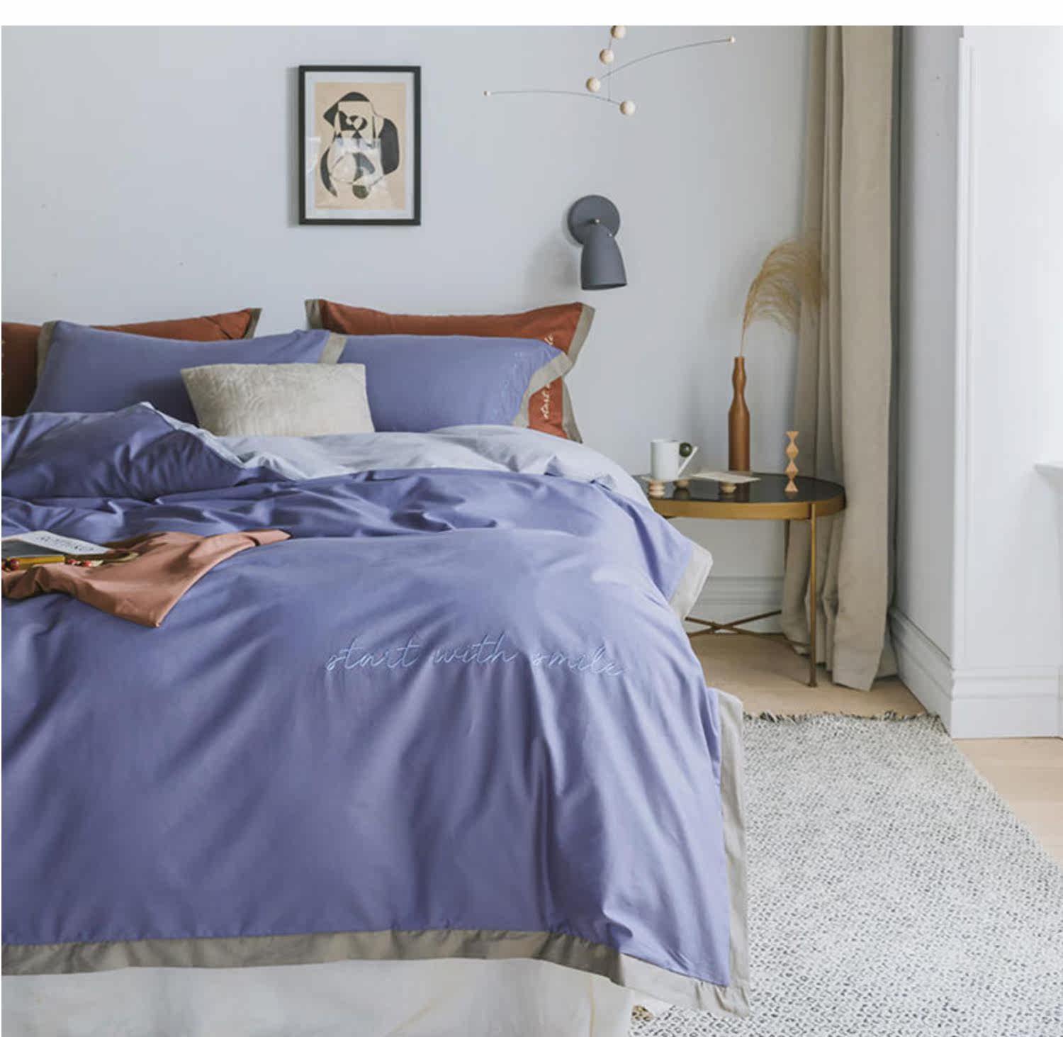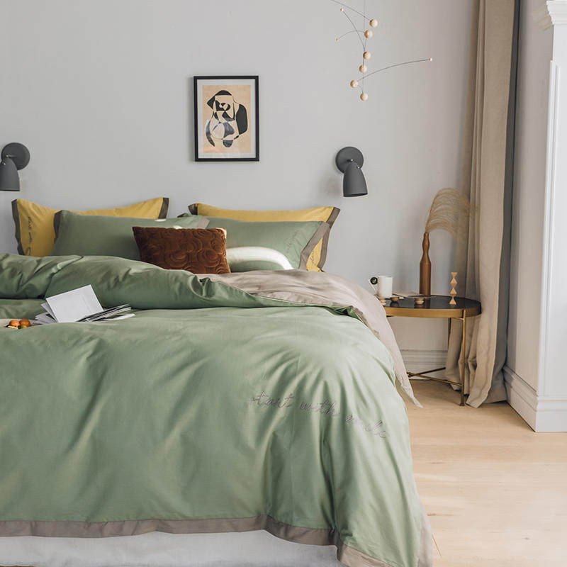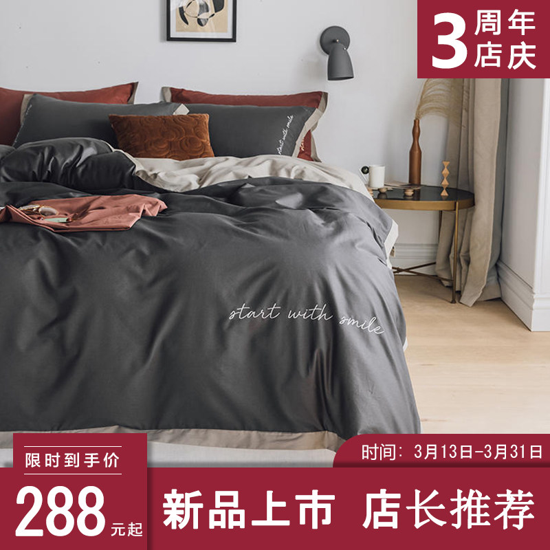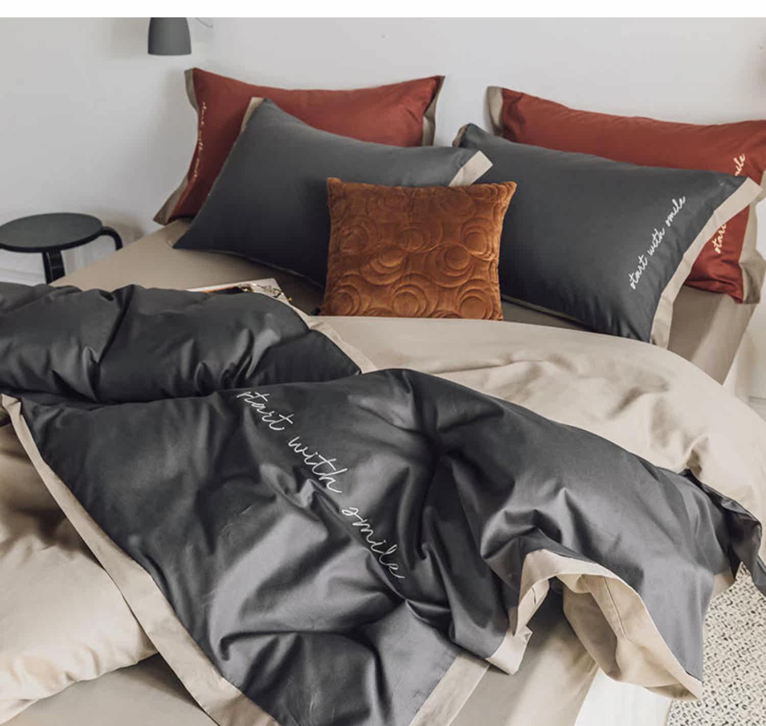 Элитный хлопковый комплект, хлопковая простыня, пододеяльник, с вышивкой, 4 предмета, постельные принадлежности