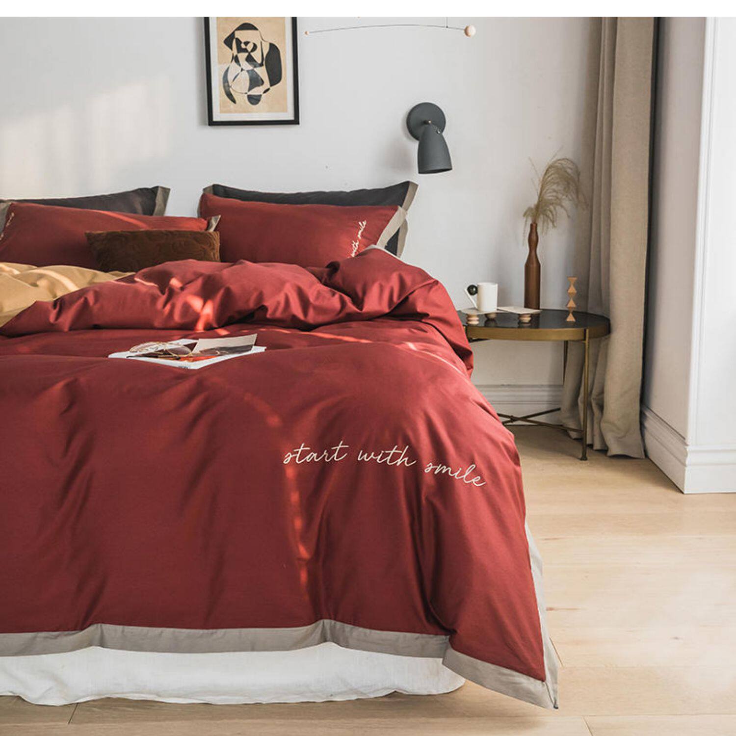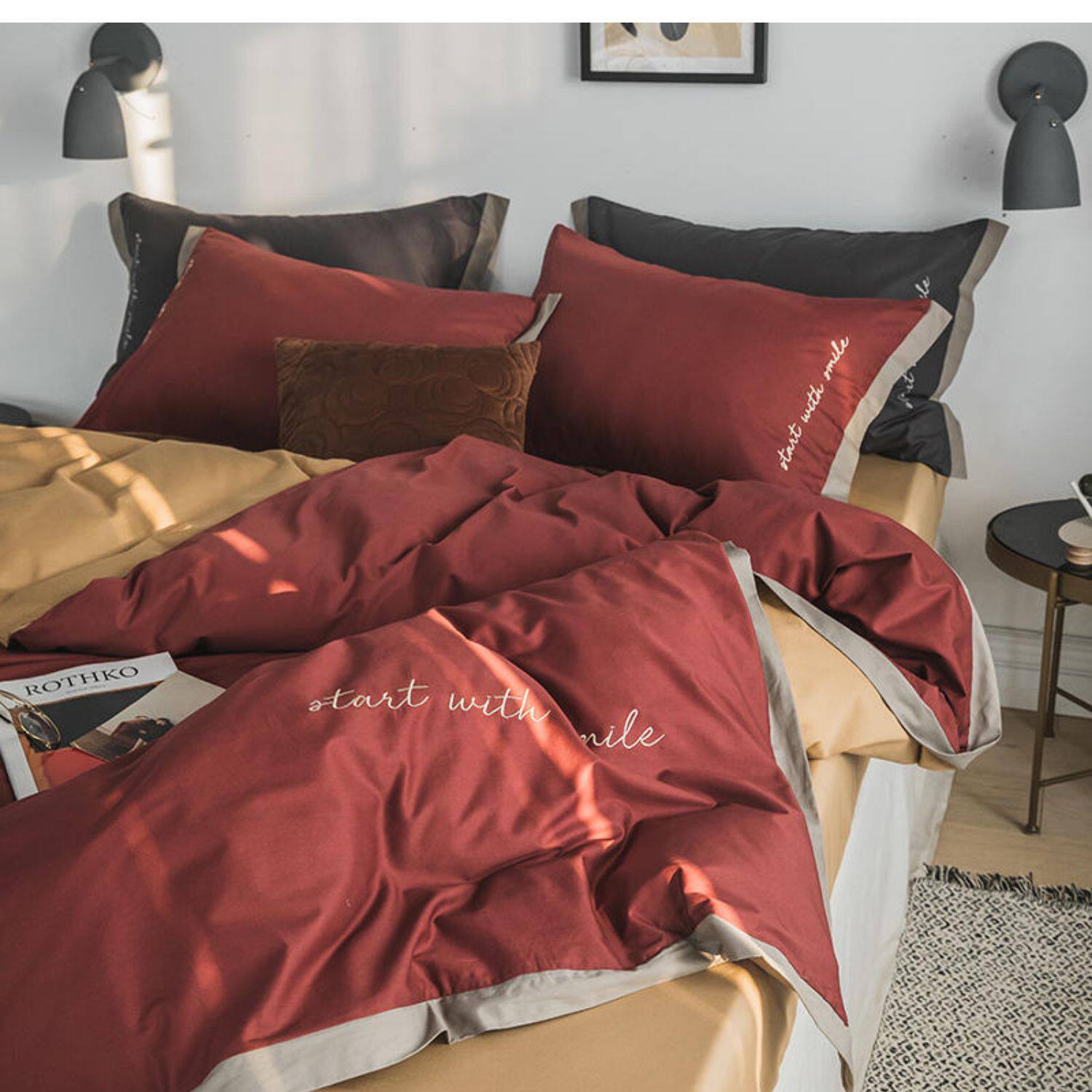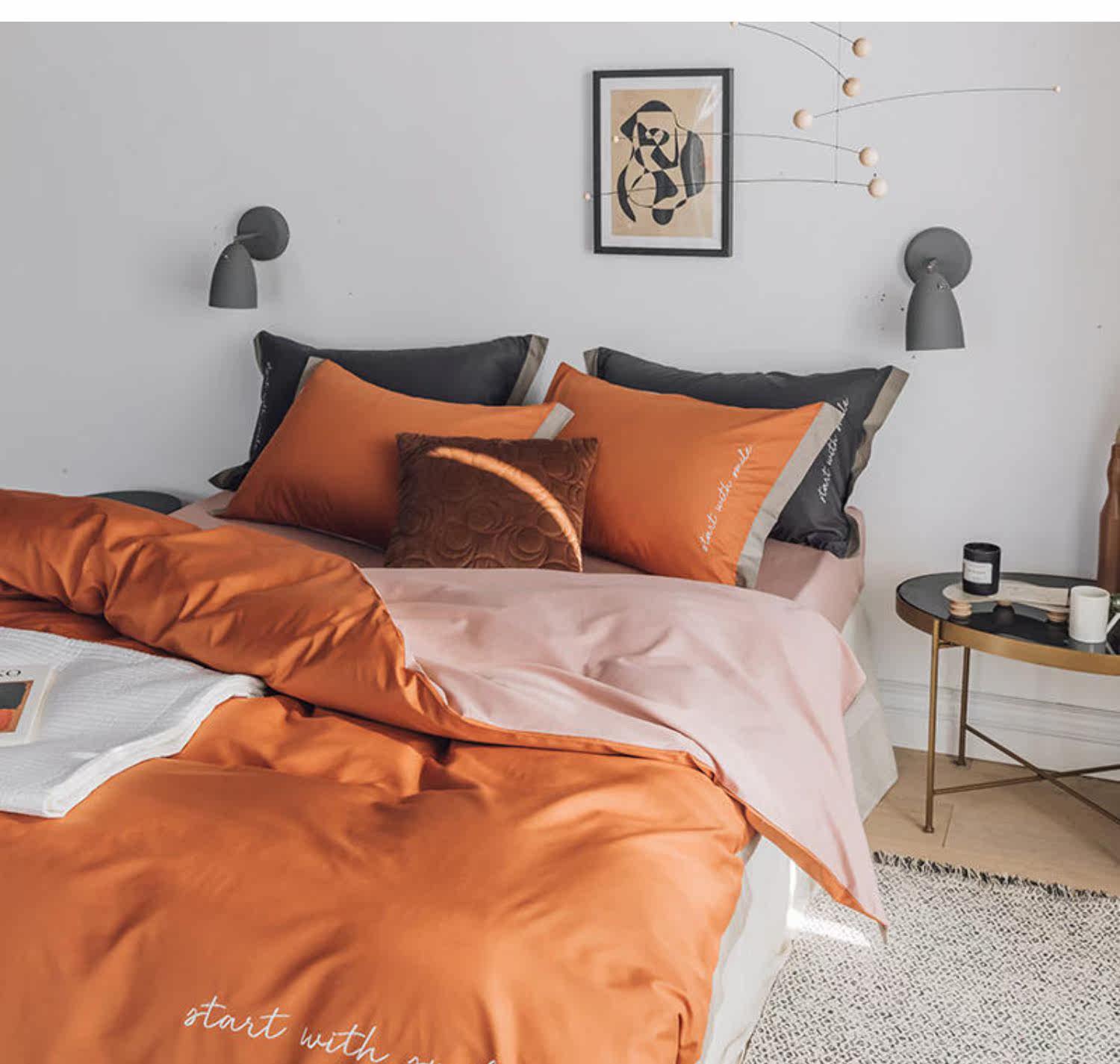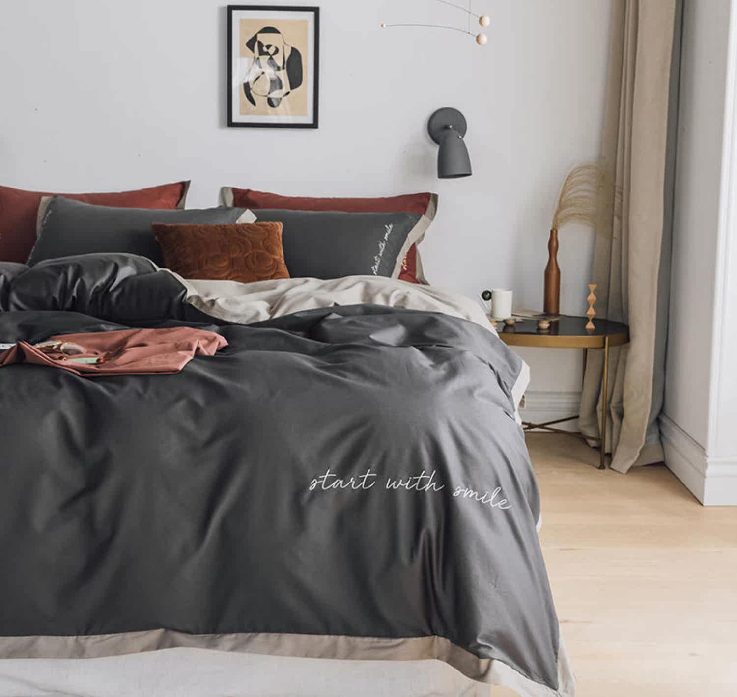 Элитный хлопковый комплект, хлопковая простыня, пододеяльник, с вышивкой, 4 предмета, постельные принадлежности