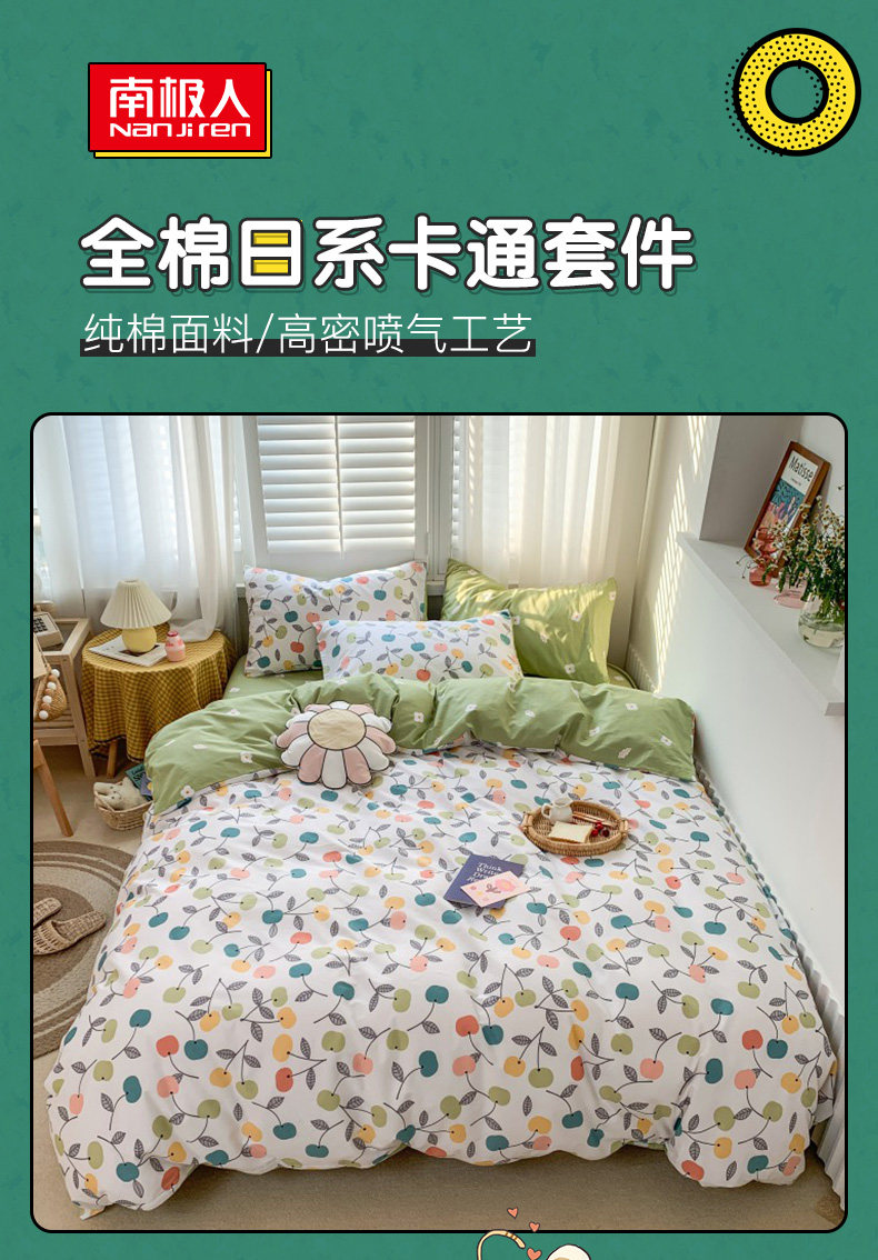南极人 Хлопковый комплект, брендовая свежая простыня, пододеяльник, покрывало, популярно в интернете, 4 предмета