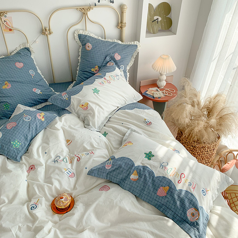 Свежий хлопковый комплект, корейская простыня, покрывало, 4 предмета, с вышивкой