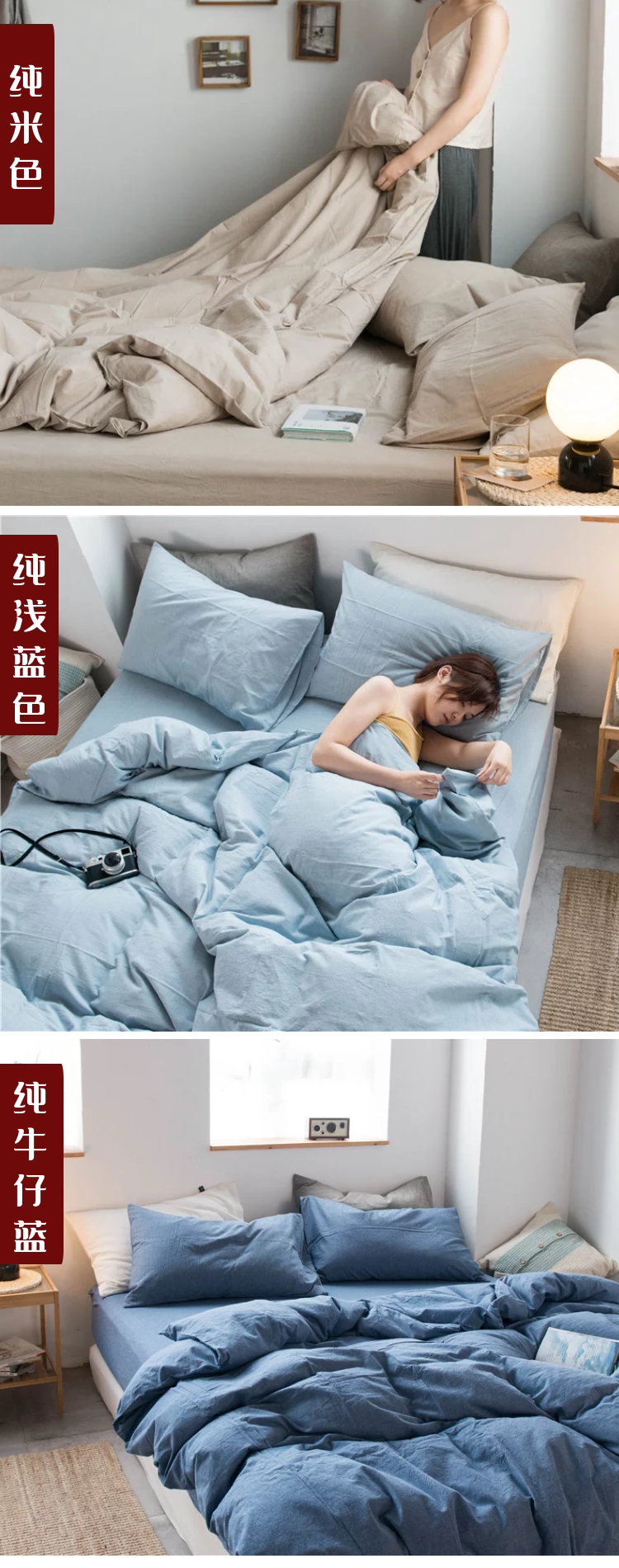 Японский хлопковый комплект, хлопковая простыня, пододеяльник, 4 предмета, 3 предмета, простой и элегантный дизайн