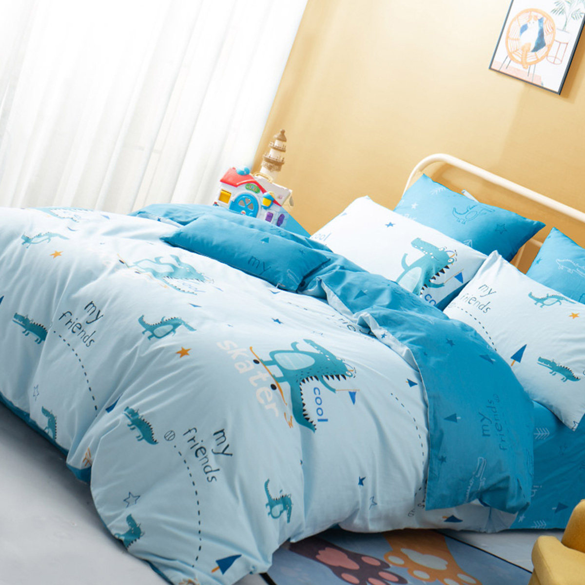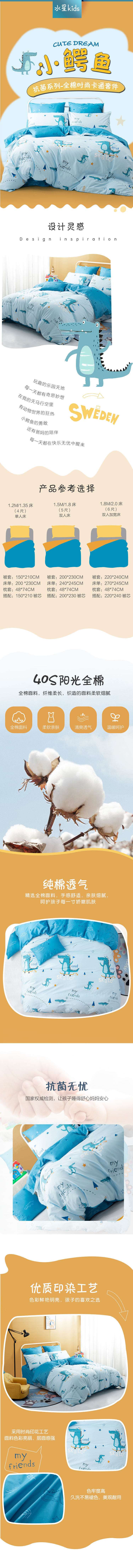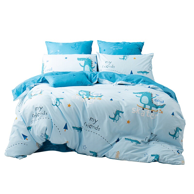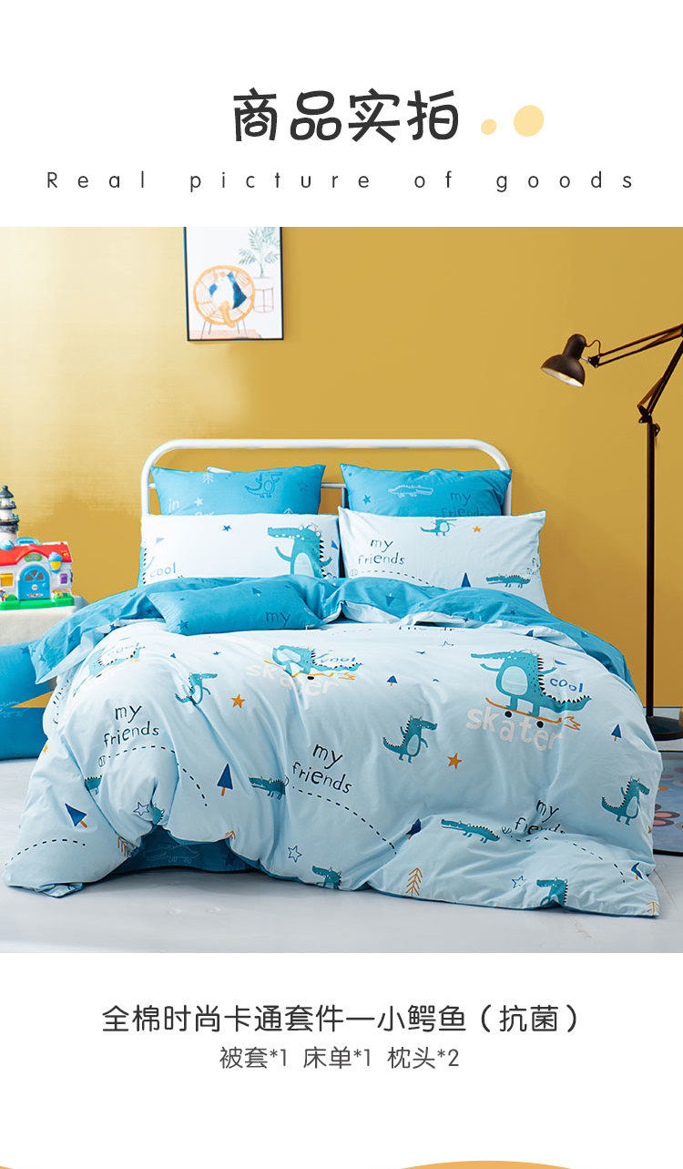 Хлопковая антибактериальная простыня, хлопковый мультяшный комплект, детский пододеяльник для мальчиков и девочек, крокодил, 4 предмета