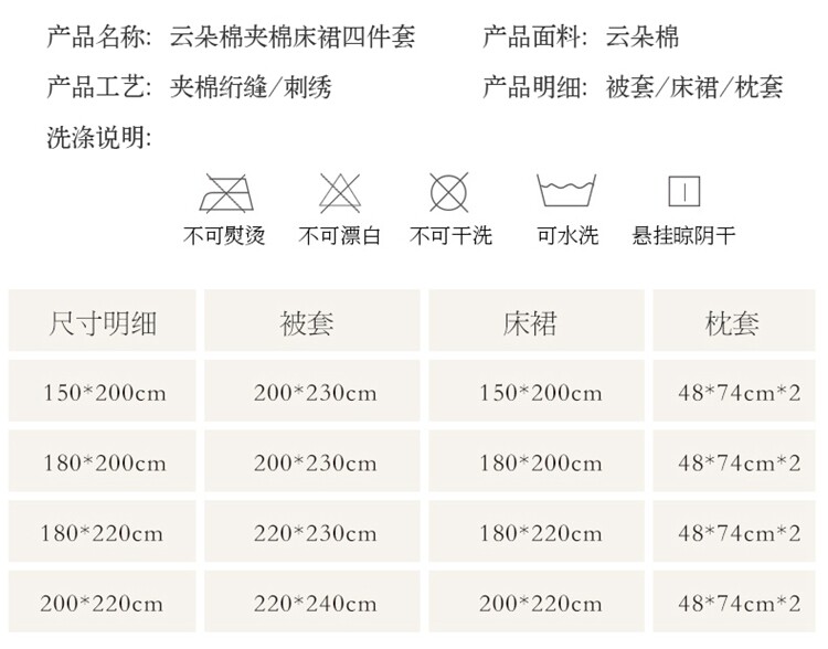 | Ширина кровати: | 1,5*2,0 метра кровать (200*230), 1,8*2,0 метра кровать (200*230), 1,8*2,2 метра кровать (200*230), 2..0*2..2 метра кровать (200*230), Кровать 1,8*2,0м (пододеяльник 220*240), 1,8*2,2 метра кровать (стеганое одеяло 220*240), 2,0*2,2 метра кровать (стеганое одеяло 220*240) |