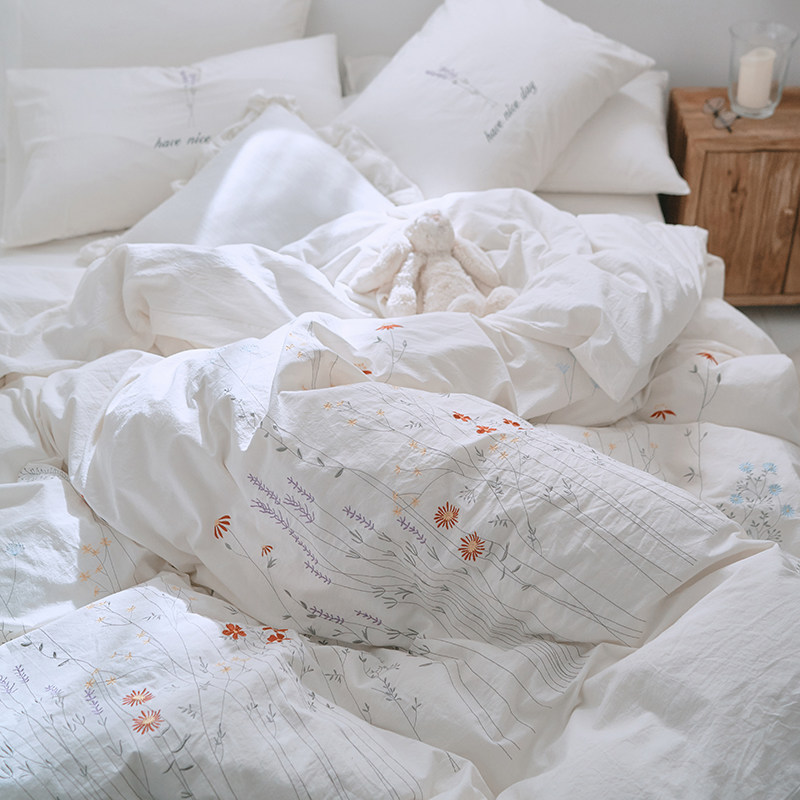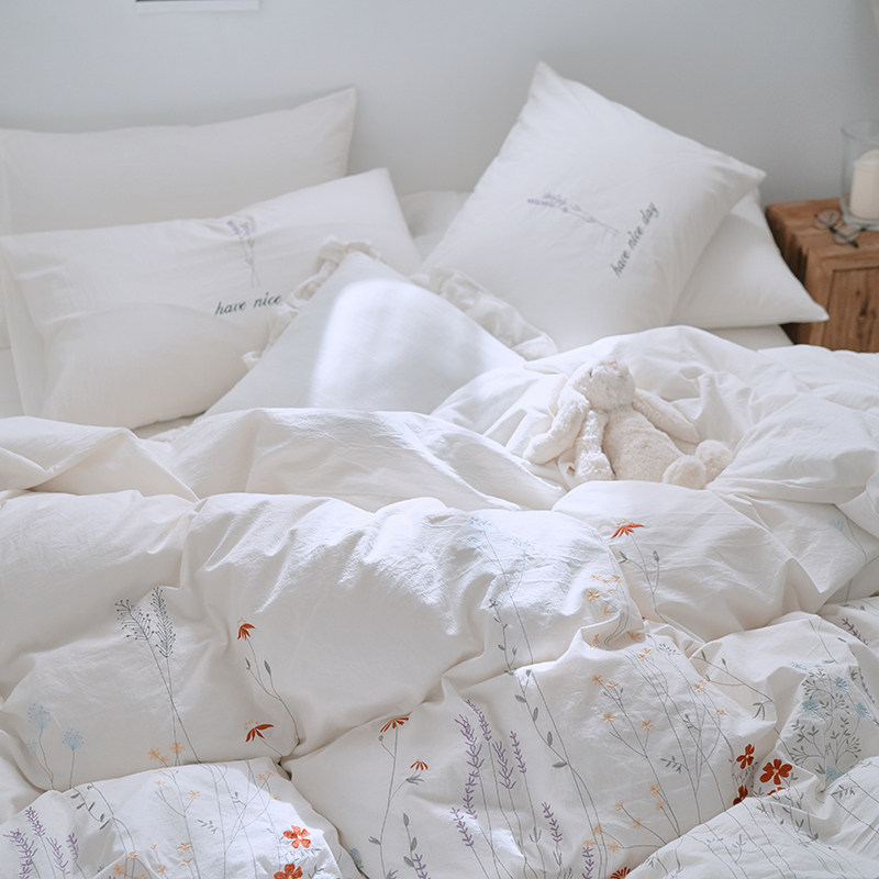 Хлопковый комплект, хлопковая простыня, свежий кремовый пододеяльник для принцессы, 4 предмета, французский стиль, постельные принадлежности