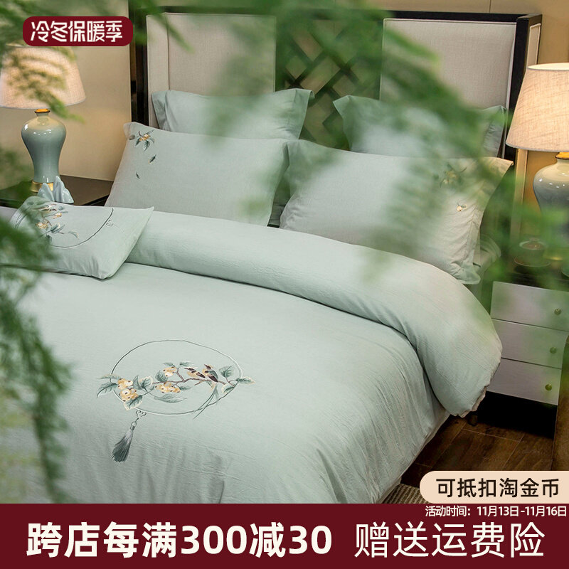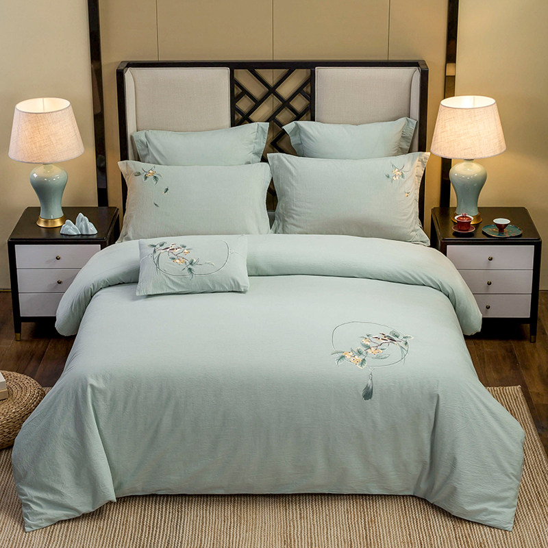 Хлопковое покрывало, комплект, хлопковый пододеяльник, кровать, простыня, с вышивкой, 4 предмета, 1.8м, китайский стиль
