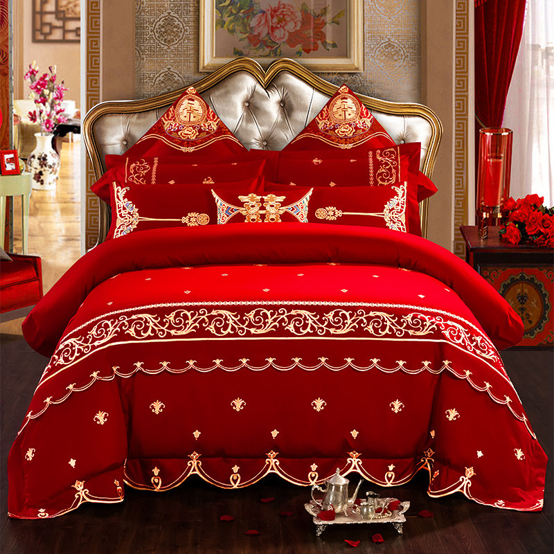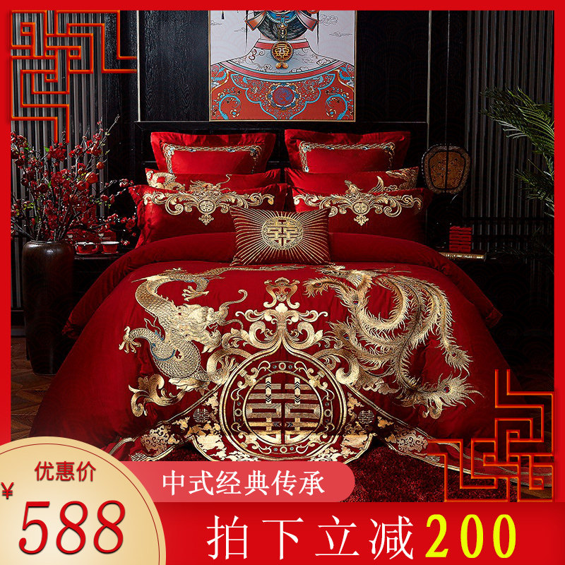 Красный хлопковый комплект, хлопковое покрывало, пододеяльник, 4 предмета, дракон и феникс, 10 шт