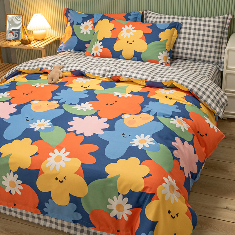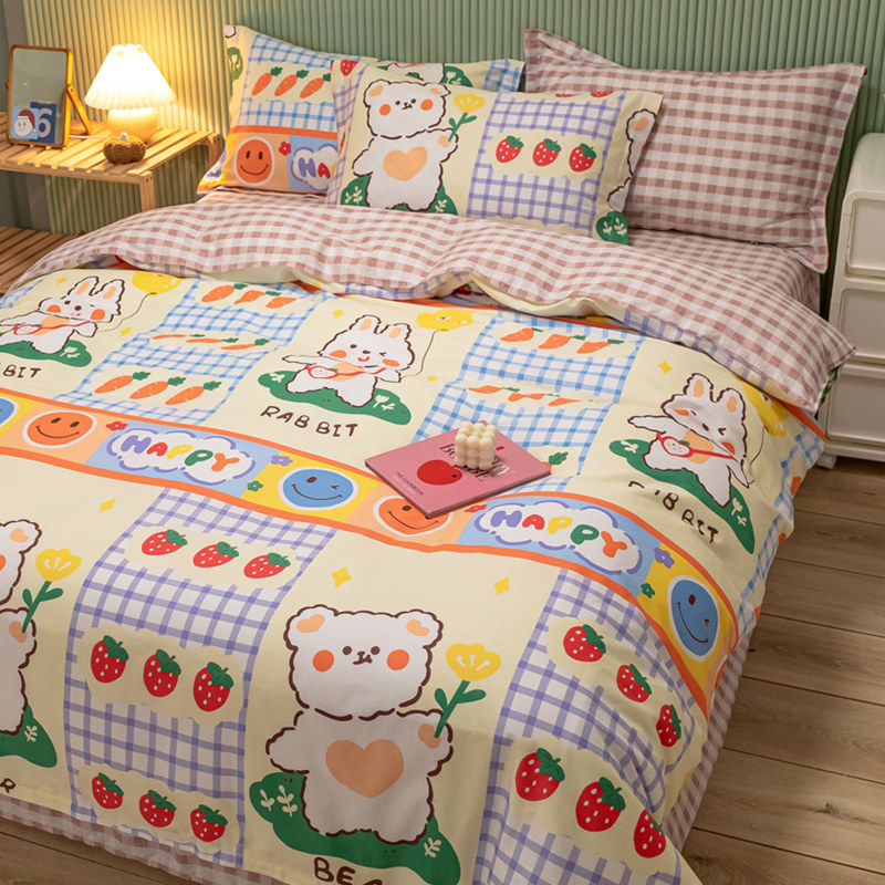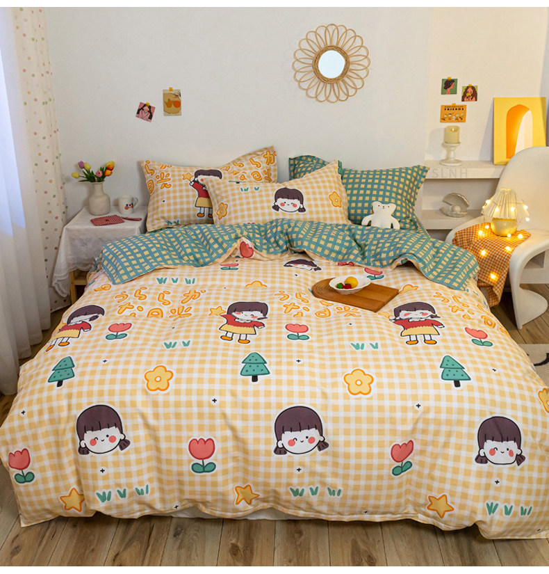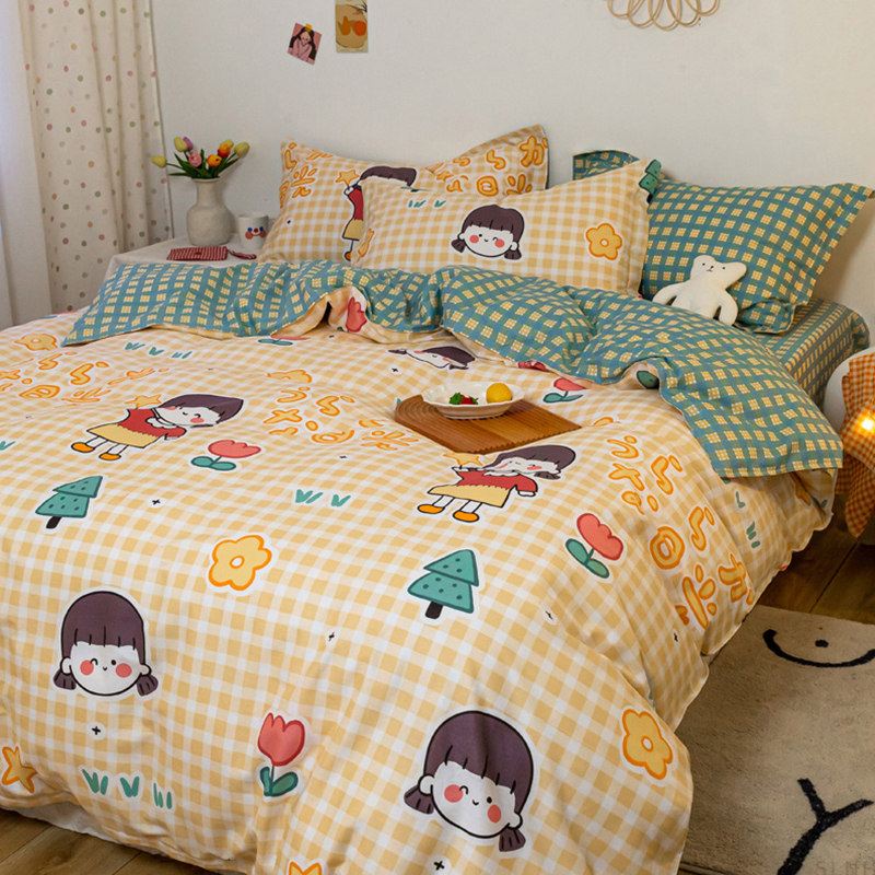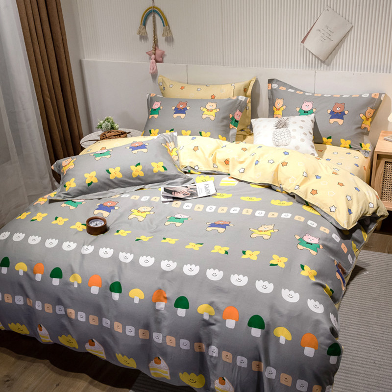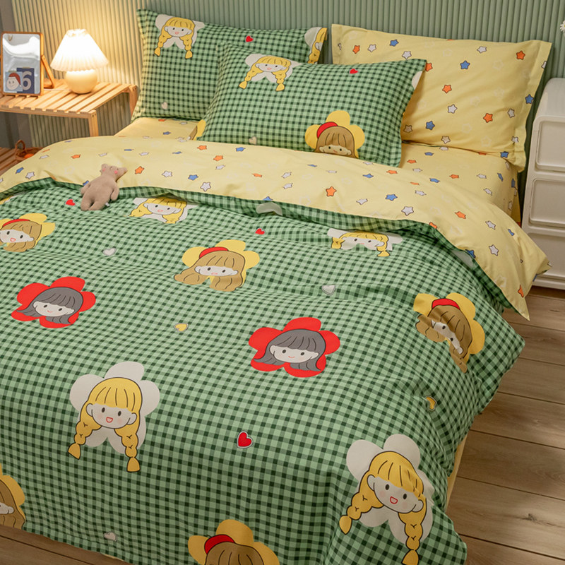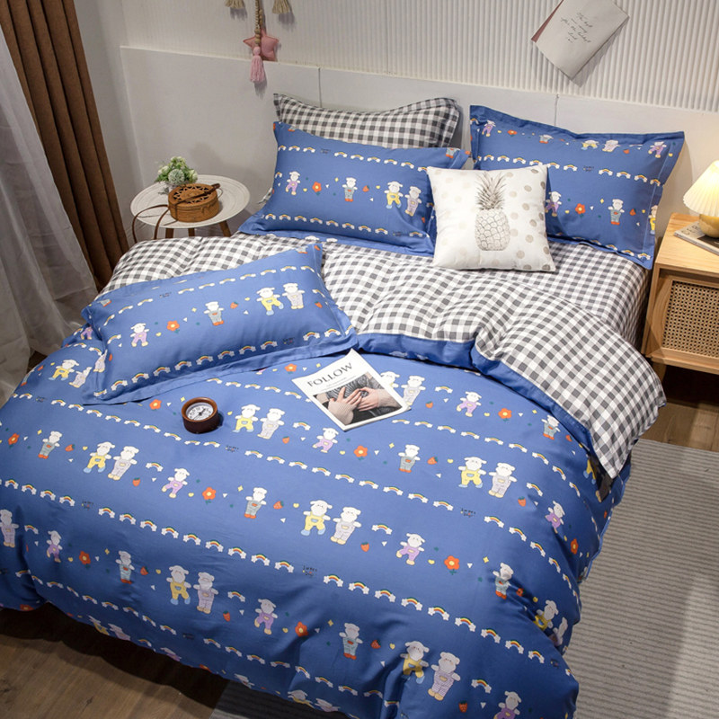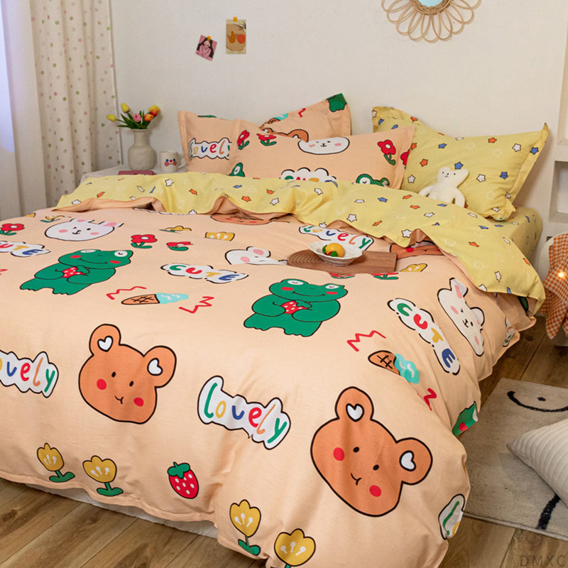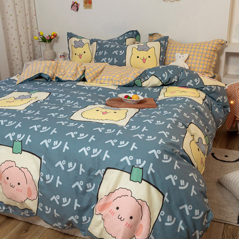 Хлопковый комплект, хлопковое одеяло, пододеяльник, мультяшная простыня для школьников и студентов, покрывало, 4 предмета, 3 предмета, 4 шт