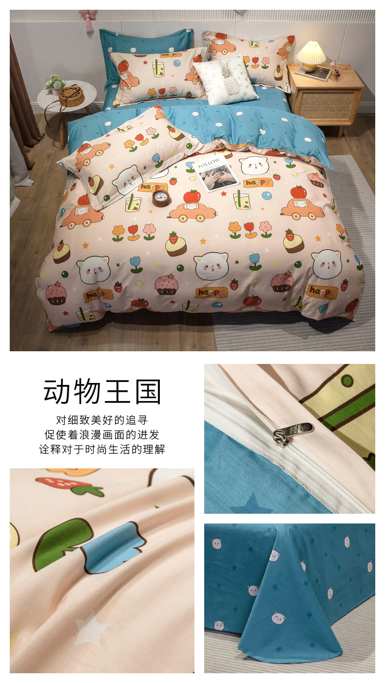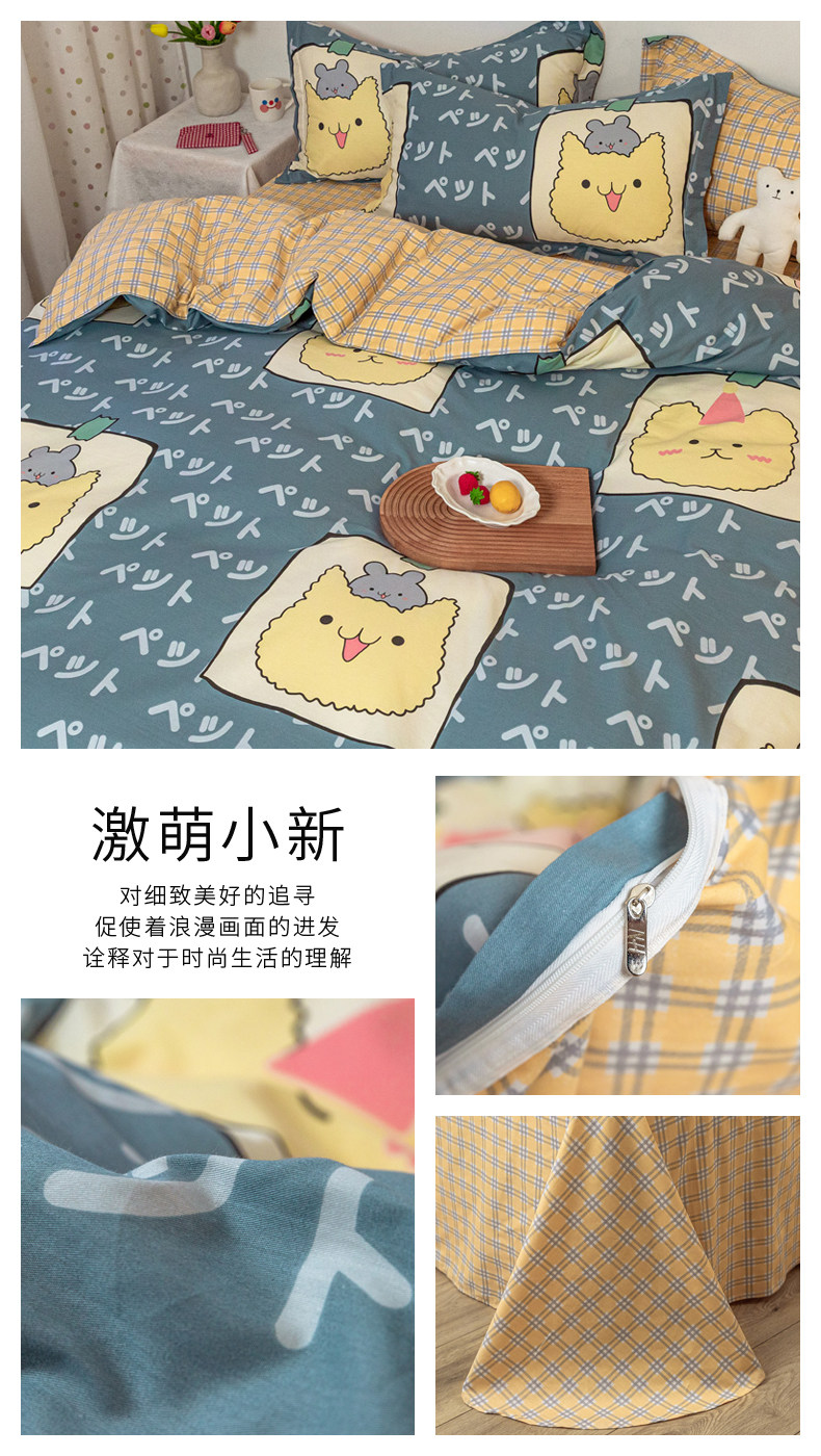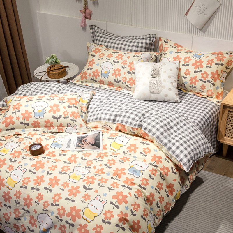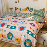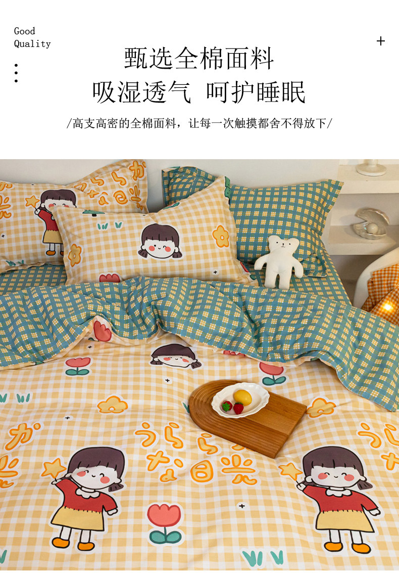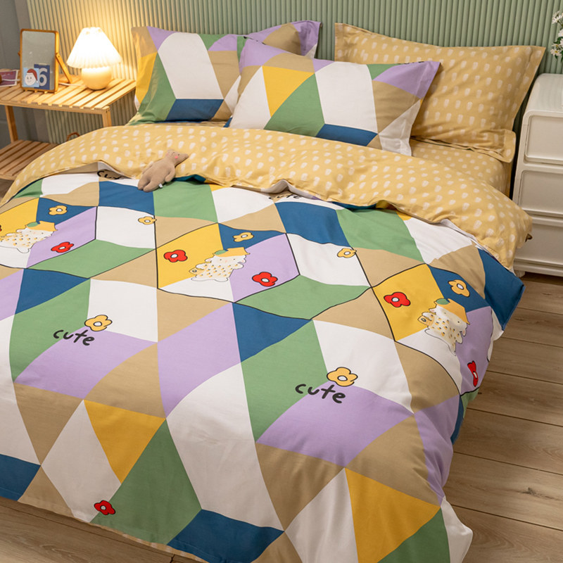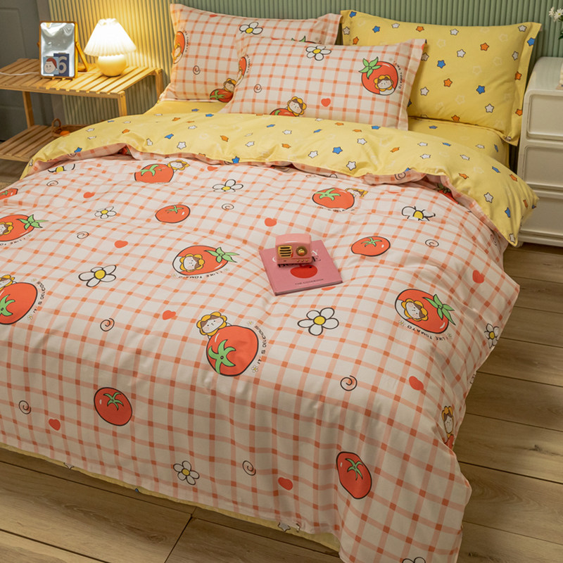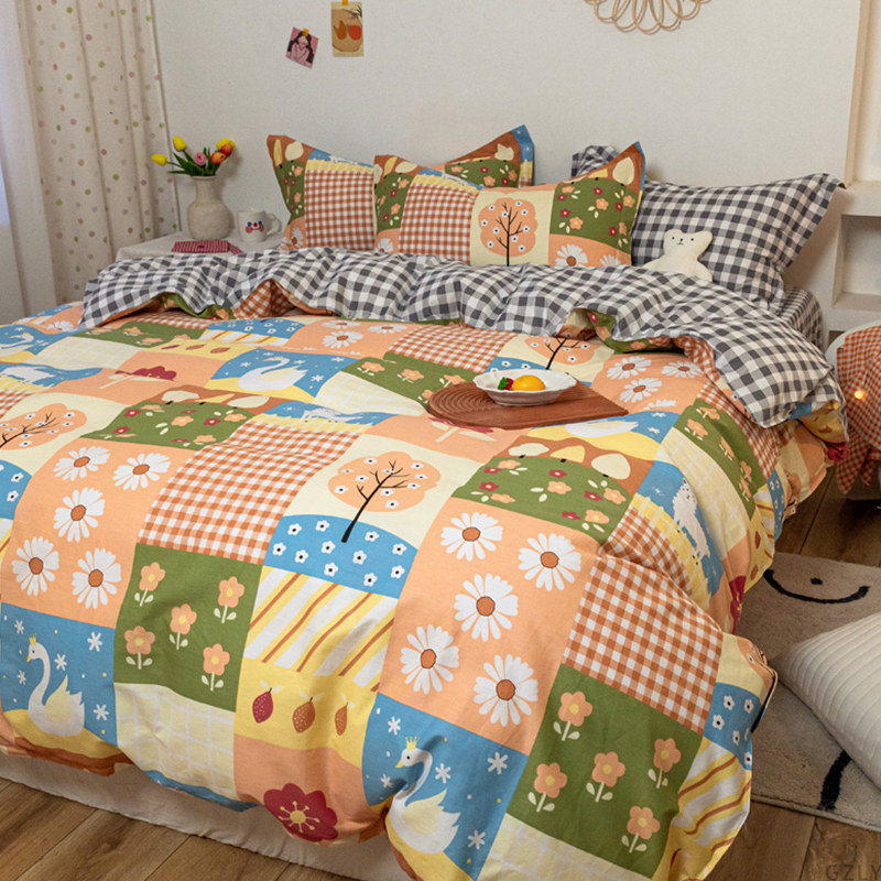 Хлопковый комплект, хлопковое одеяло, пододеяльник, мультяшная простыня для школьников и студентов, покрывало, 4 предмета, 3 предмета, 4 шт