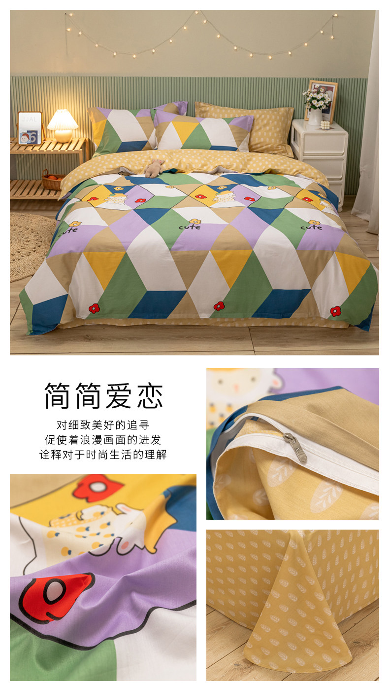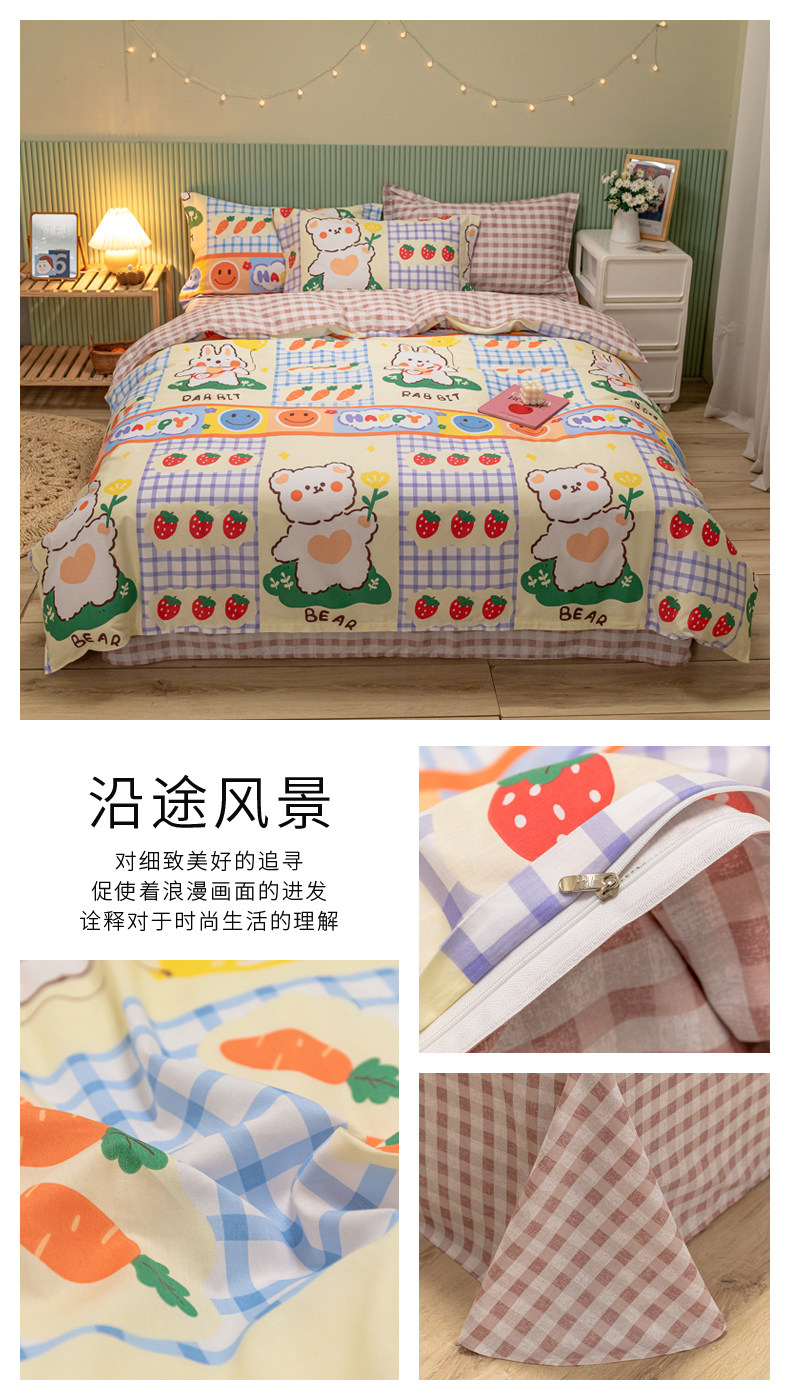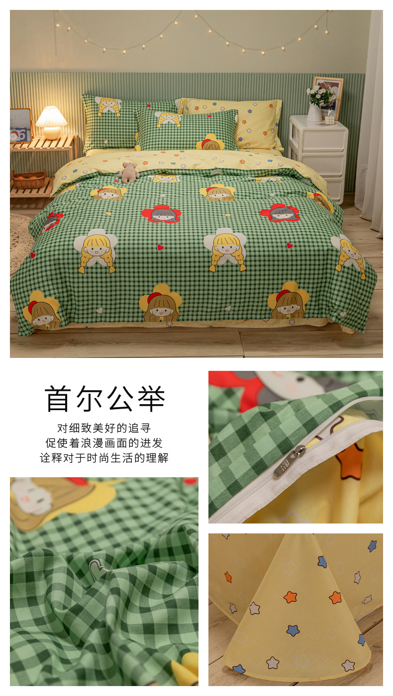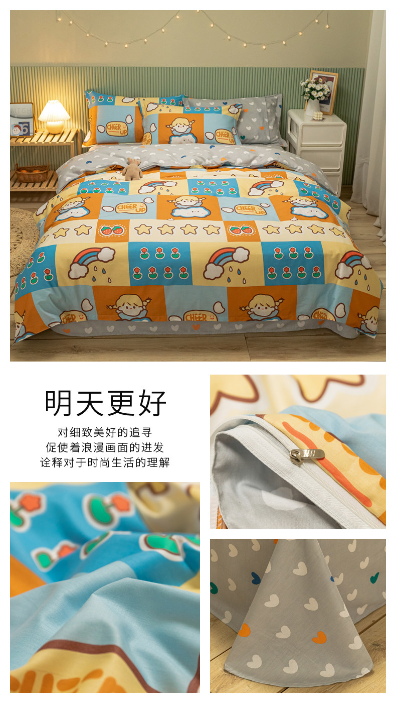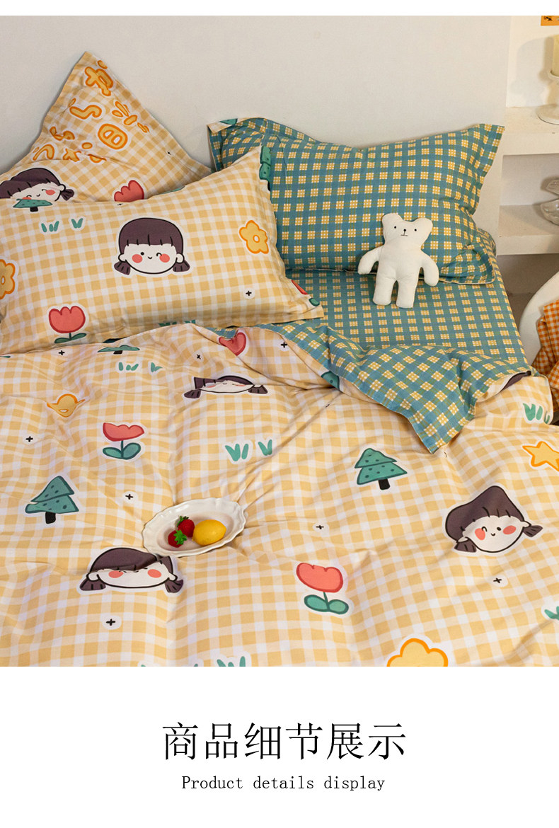 Хлопковый комплект, хлопковое одеяло, пододеяльник, мультяшная простыня для школьников и студентов, покрывало, 4 предмета, 3 предмета, 4 шт