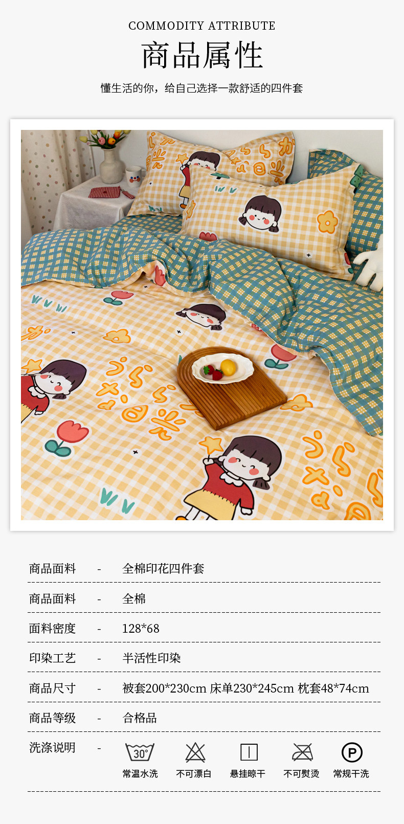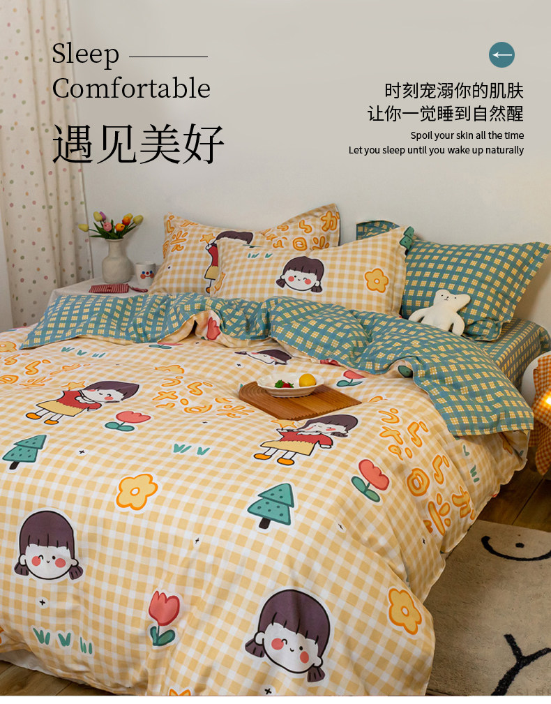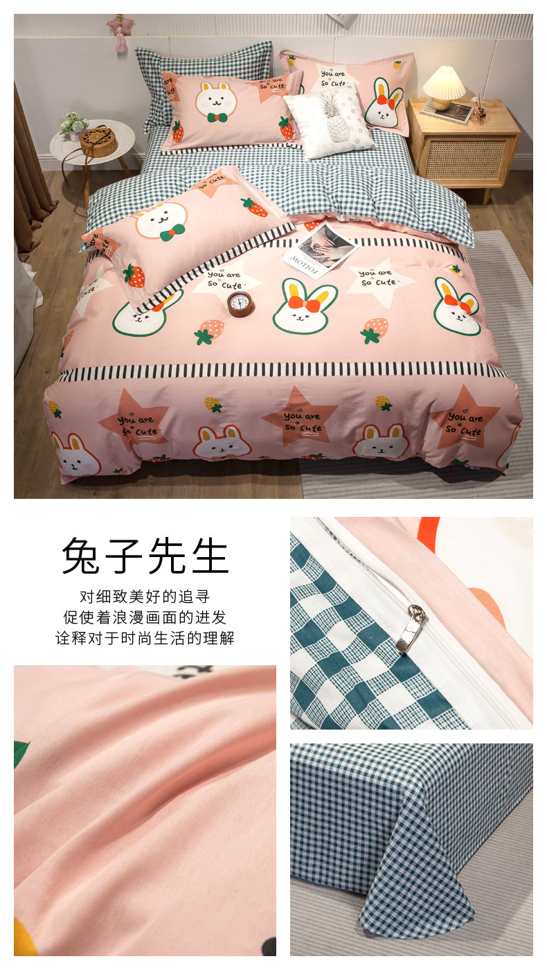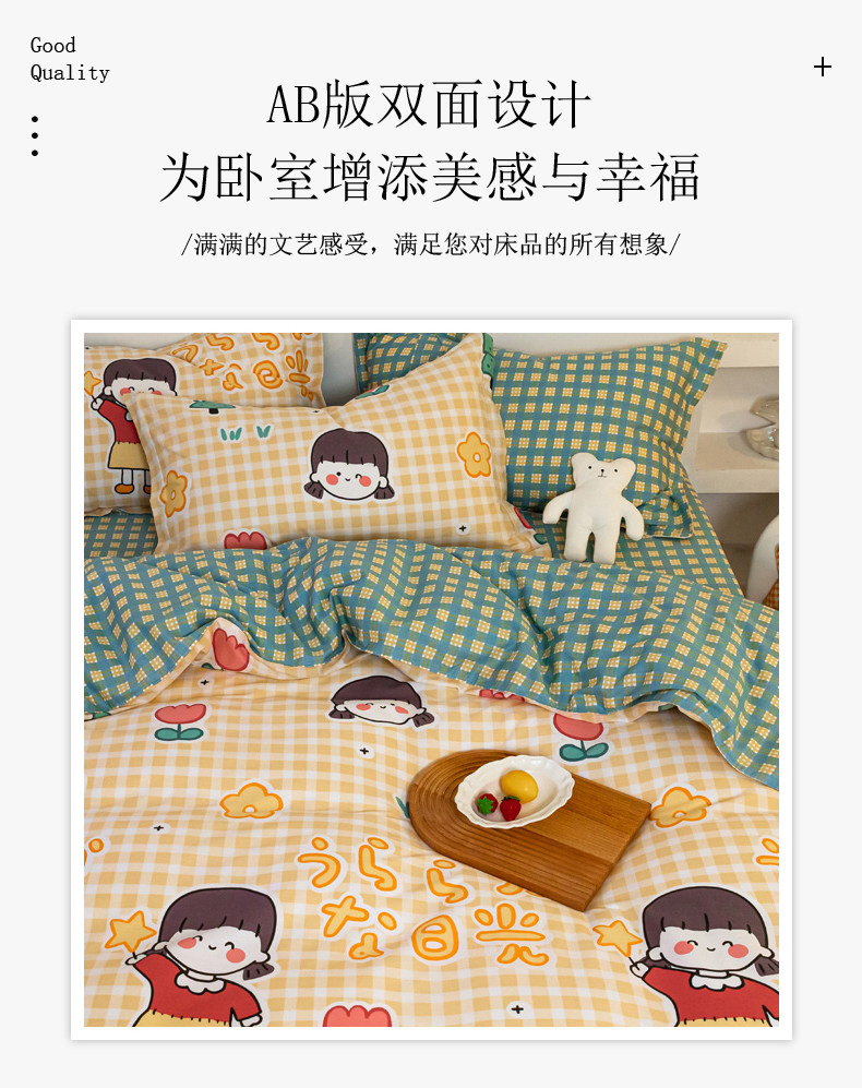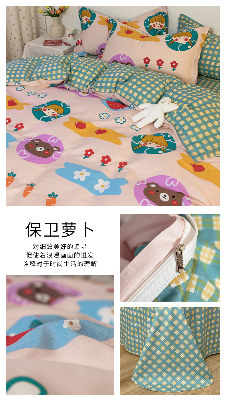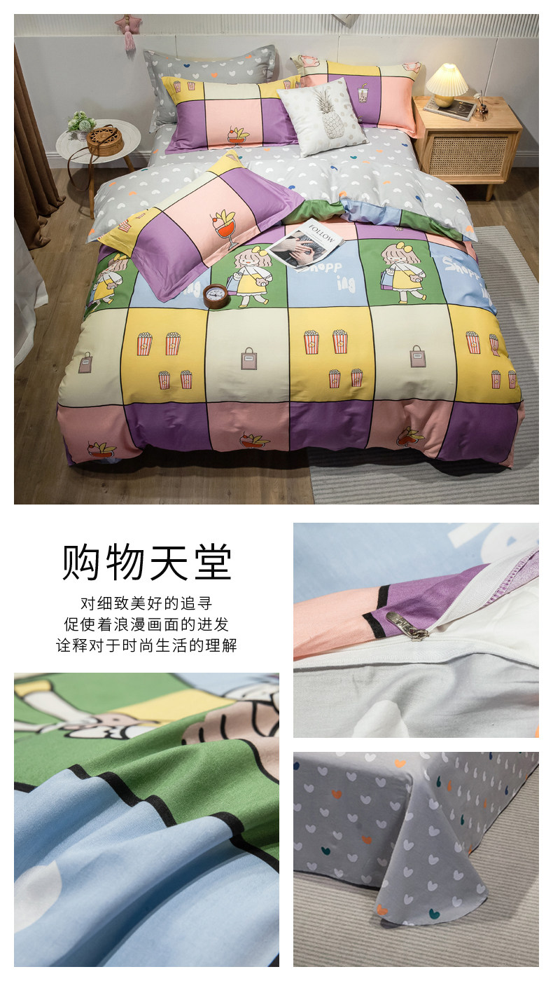 Хлопковый комплект, хлопковое одеяло, пододеяльник, мультяшная простыня для школьников и студентов, покрывало, 4 предмета, 3 предмета, 4 шт