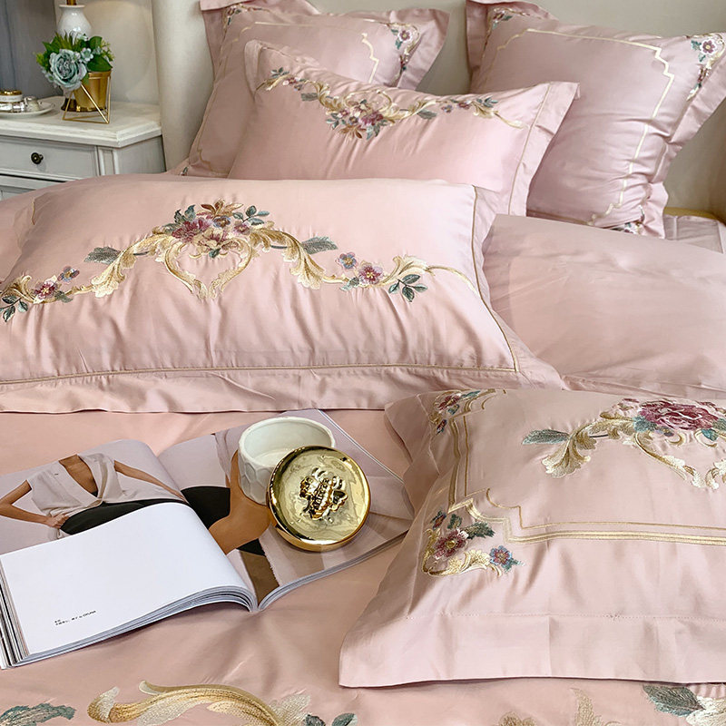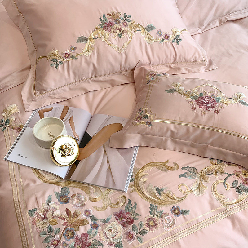Хлопковый роскошный комплект, высококлассная простыня, пододеяльник, покрывало, 60 шт, 4 предмета, европейский стиль, с вышивкой