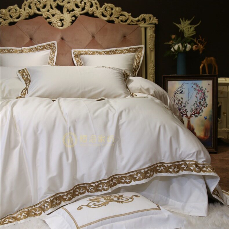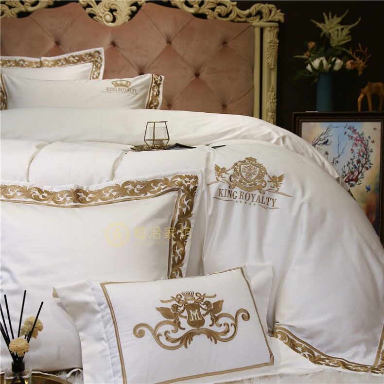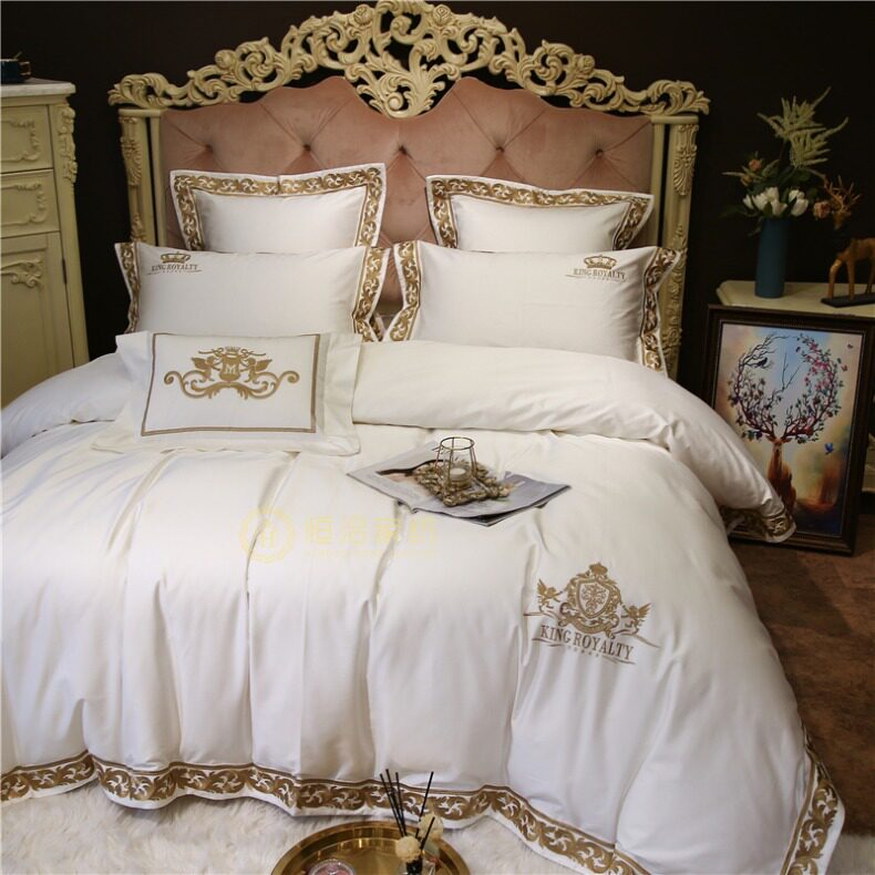 Белый комплект, хлопковое покрывало, 100 шт, 4 предмета, европейский стиль, с вышивкой, легкий роскошный стиль