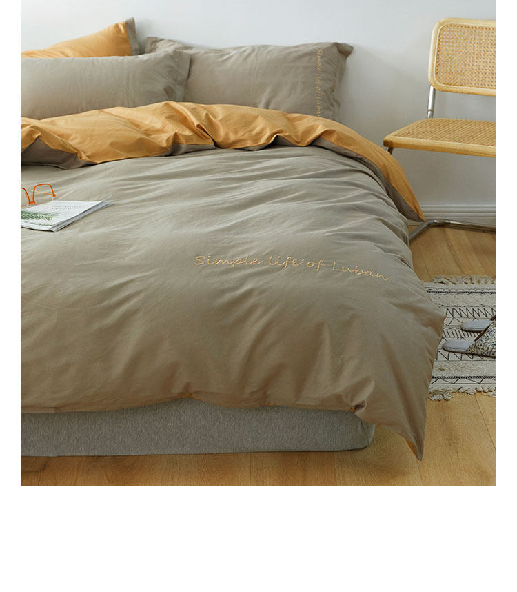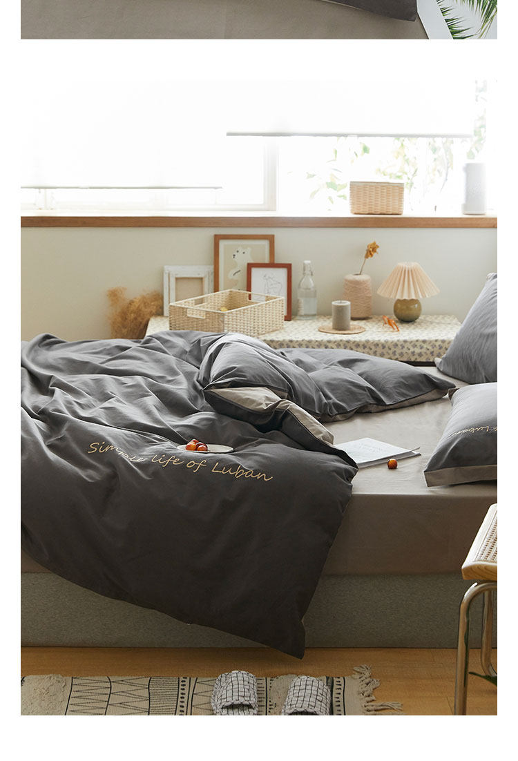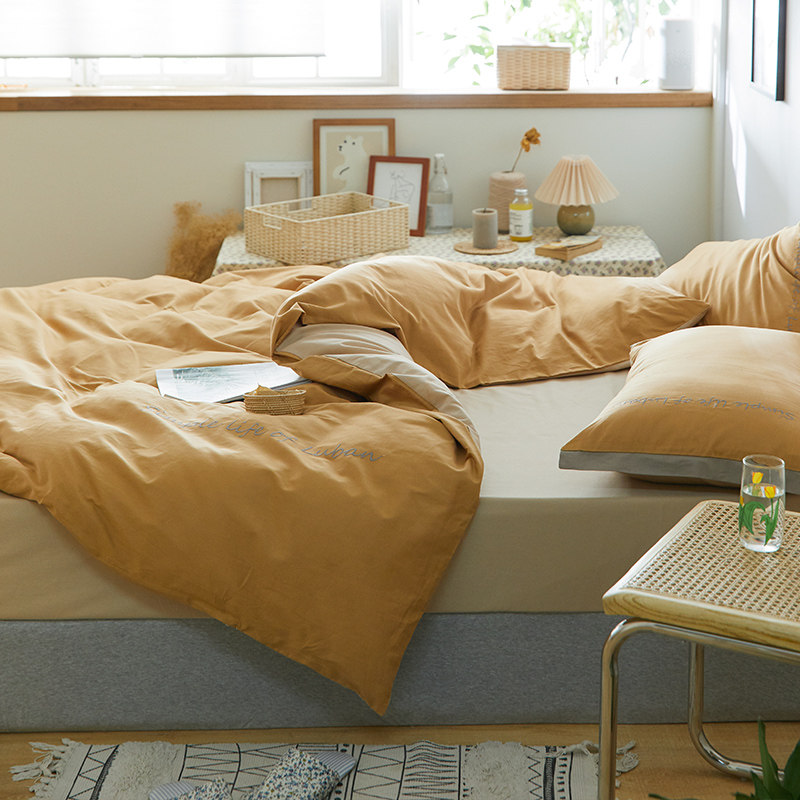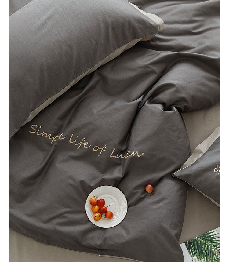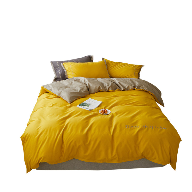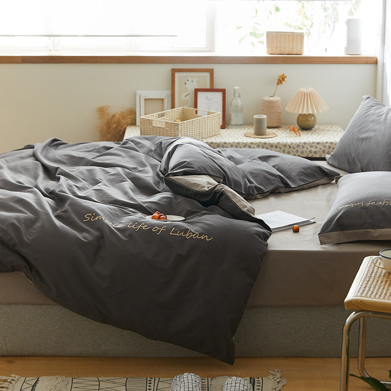Хлопковый комплект, хлопковое одеяло, пододеяльник, простыня, с вышивкой, 4 предмета, простой и элегантный дизайн