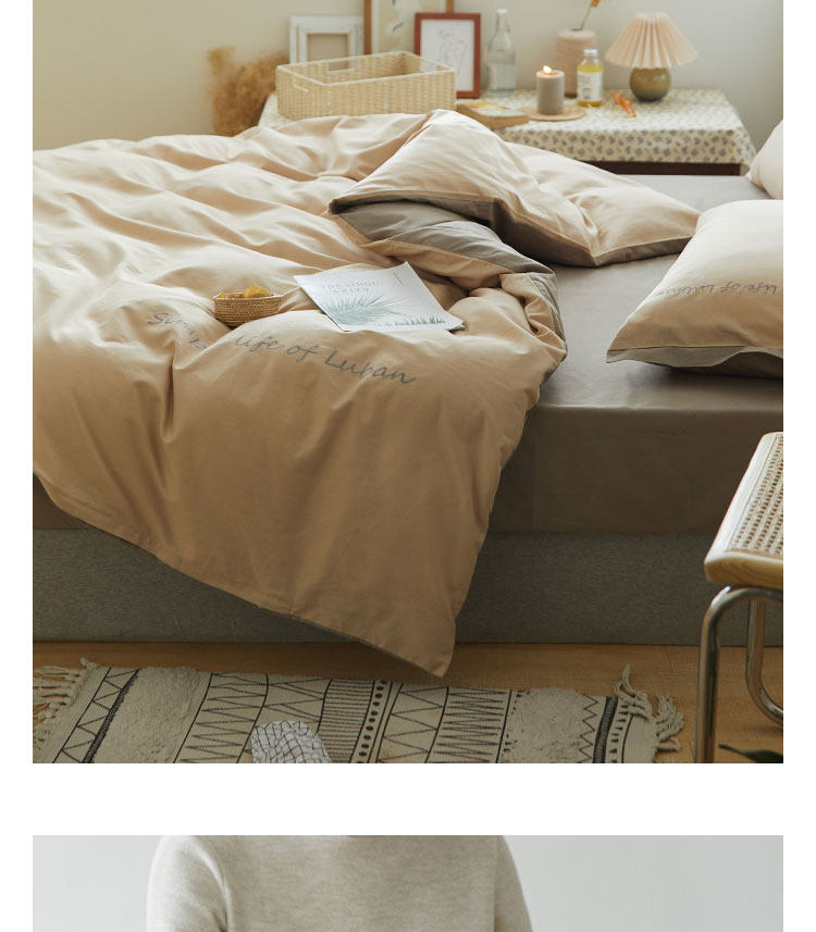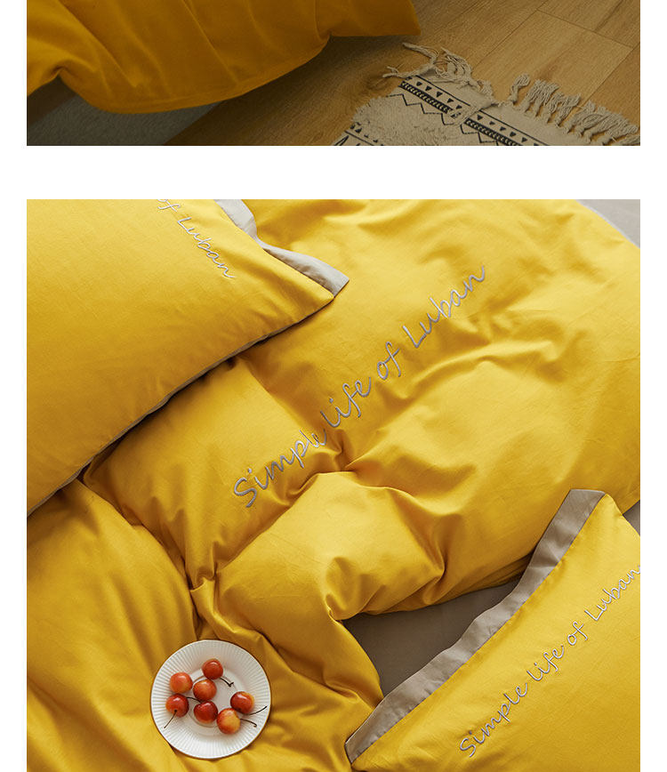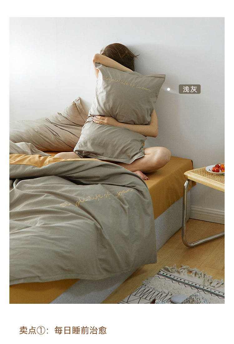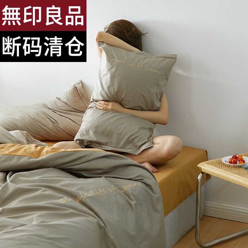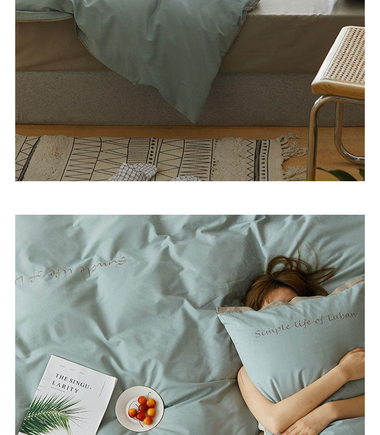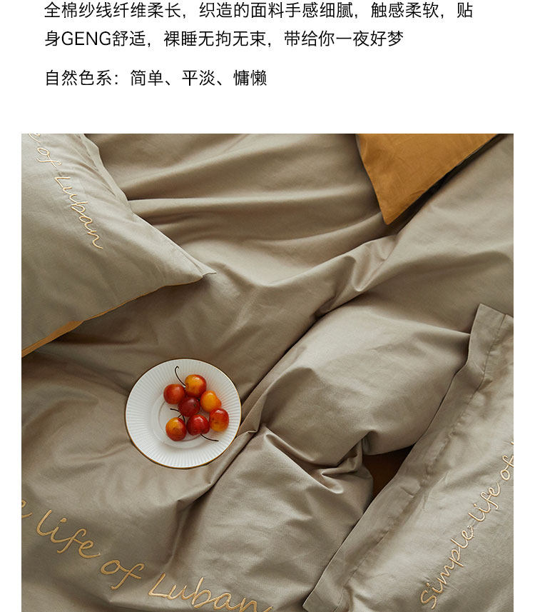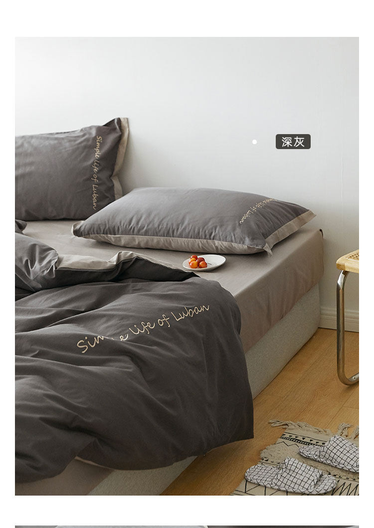 Хлопковый комплект, хлопковое одеяло, пододеяльник, простыня, с вышивкой, 4 предмета, простой и элегантный дизайн