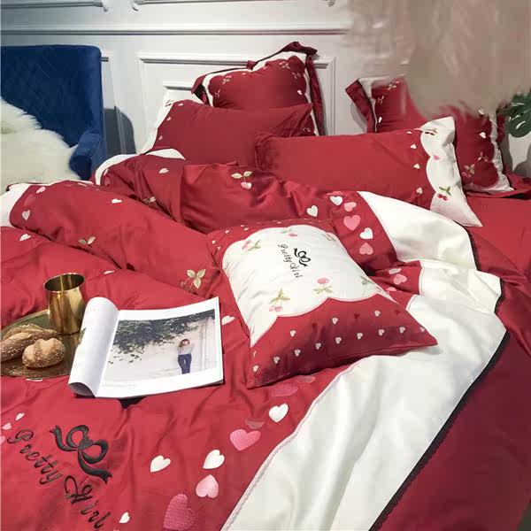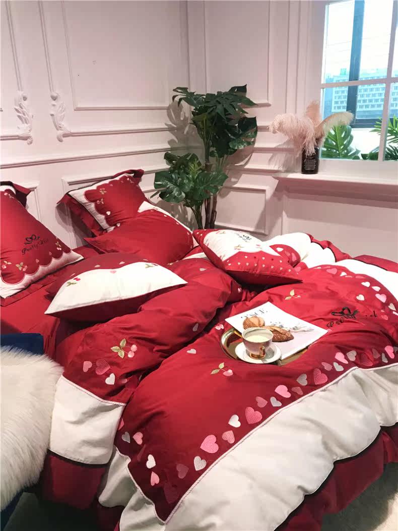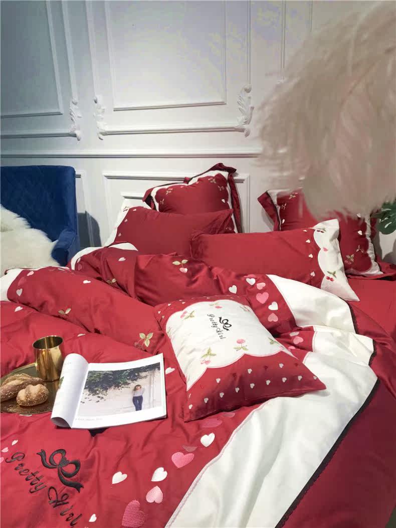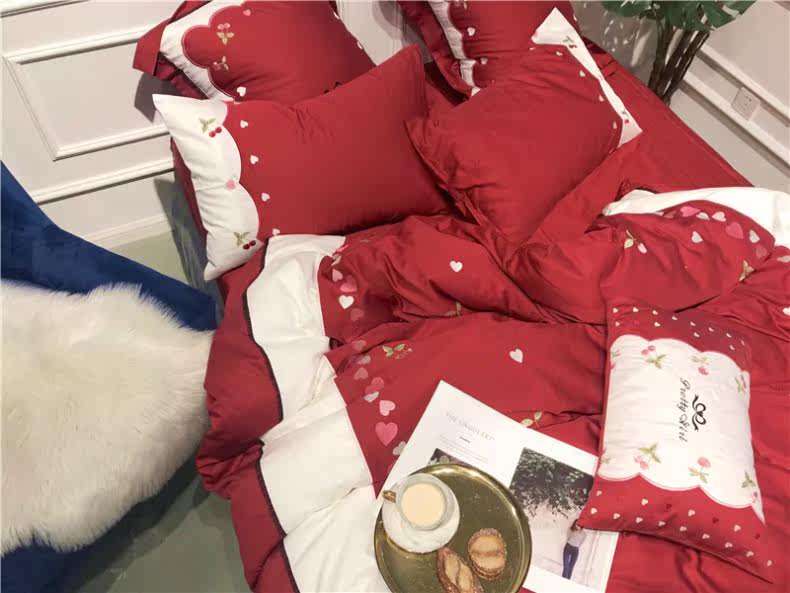 Свежий хлопковый комплект, покрывало, 60 шт, 4 предмета, с вышивкой