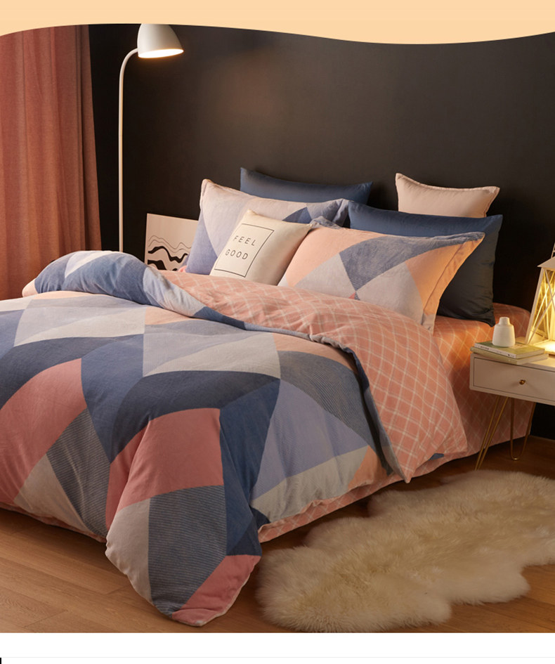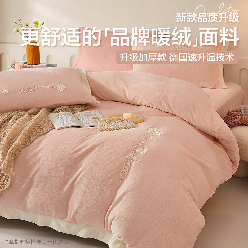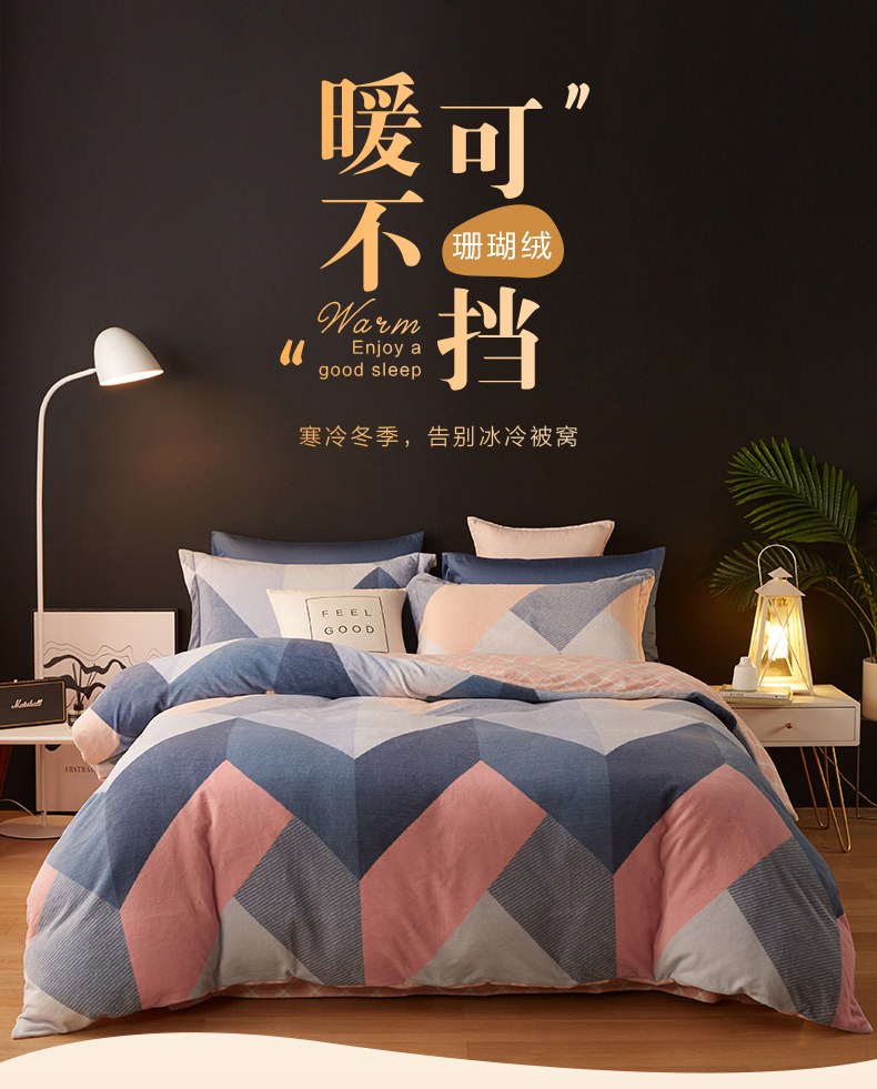 Коралловый демисезонный комплект, утепленный пододеяльник, фланелевая простыня, покрывало, 4 предмета, постельные принадлежности